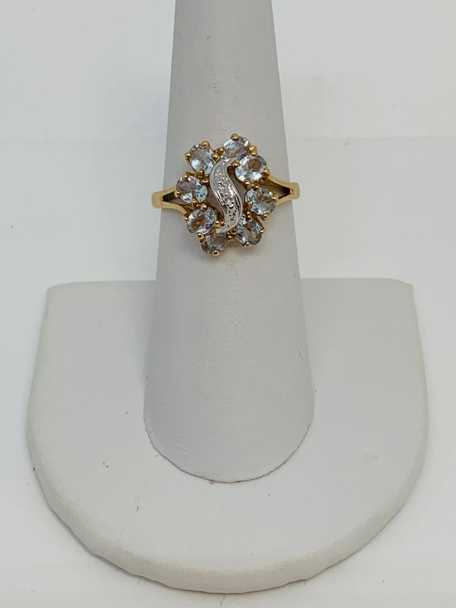 LOT 102: Aquamarine Size 7 Cluster Ring - 14K Gold  - 3.49 gtw