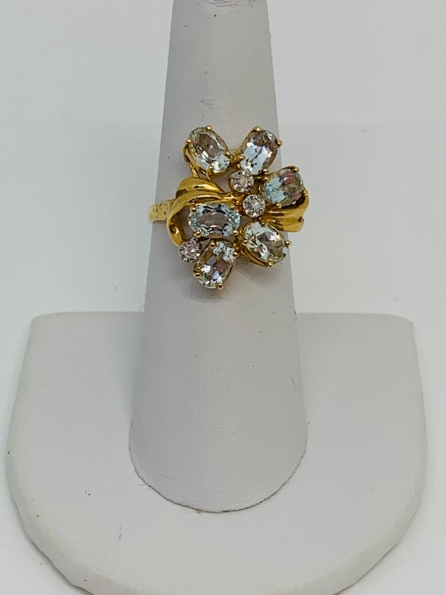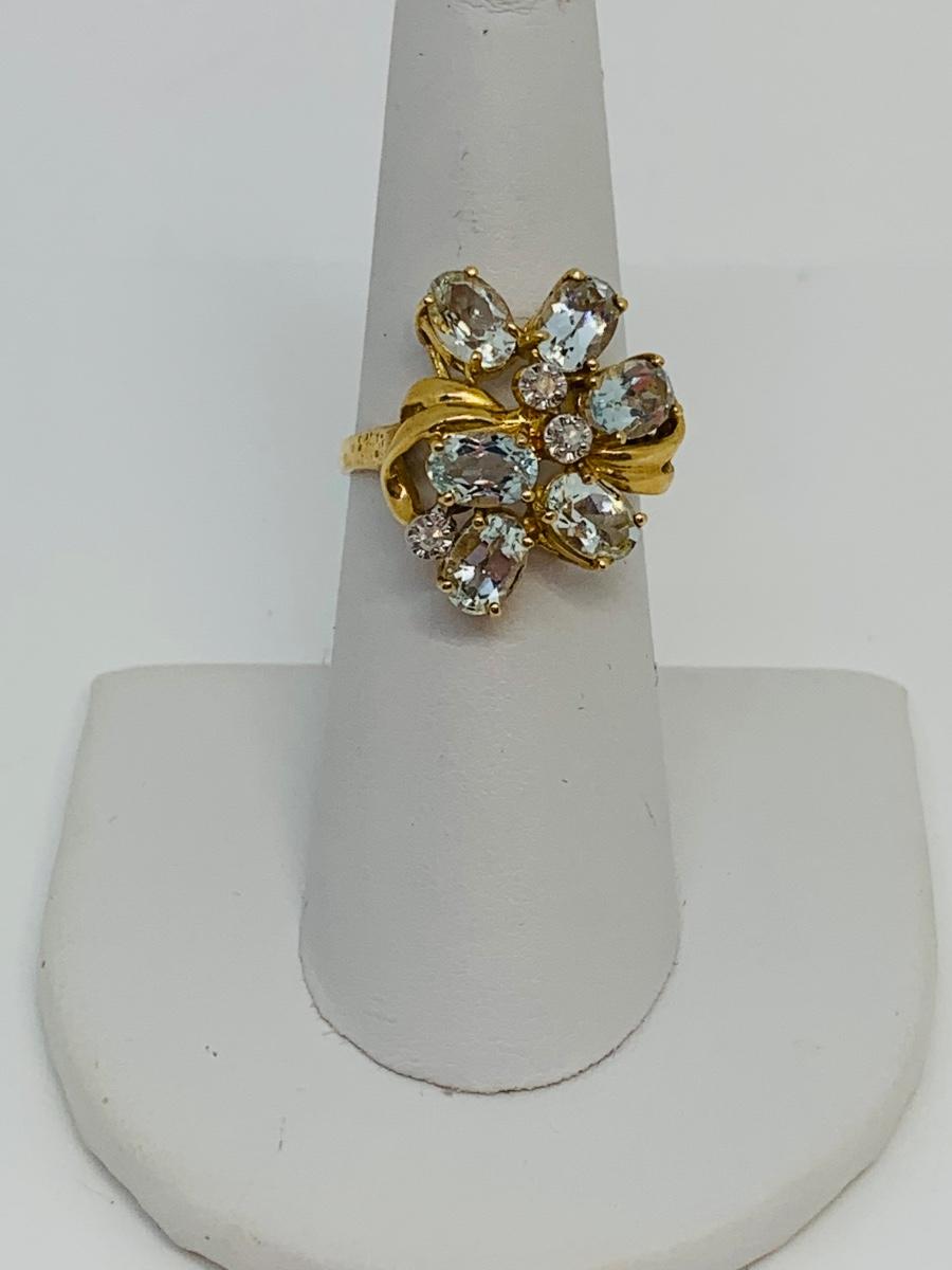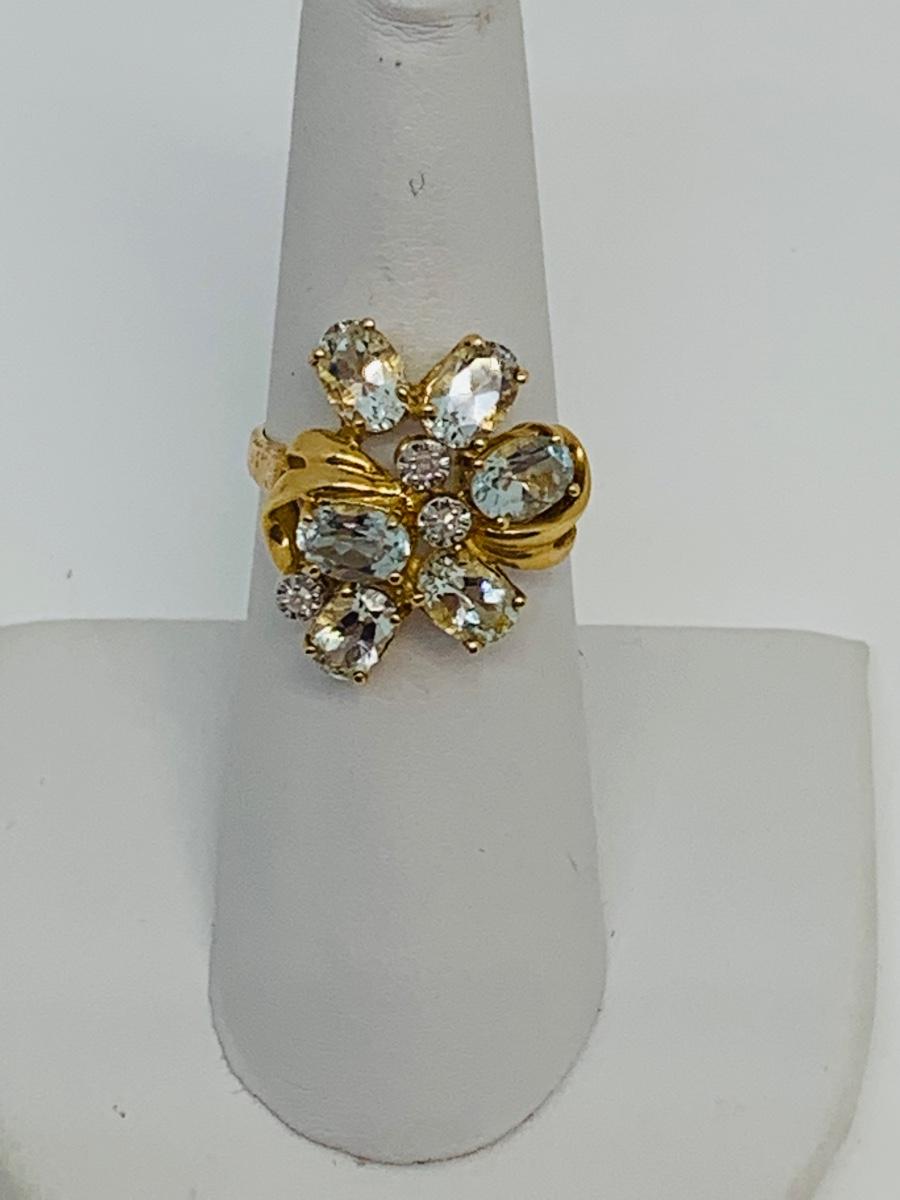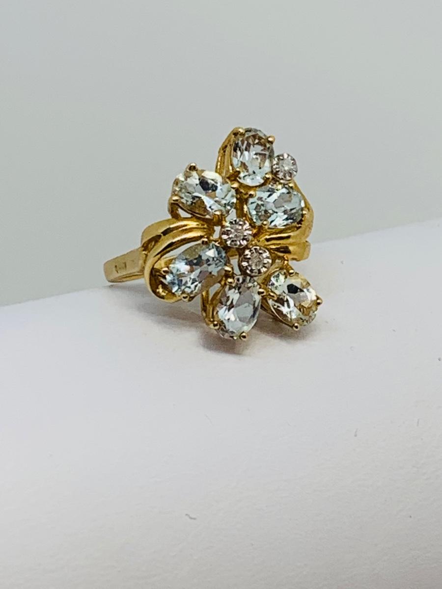 LOT 106: Aquamarine & Diamond Cluster Ring - 14K Gold - Size 7 - 4.33 gtw