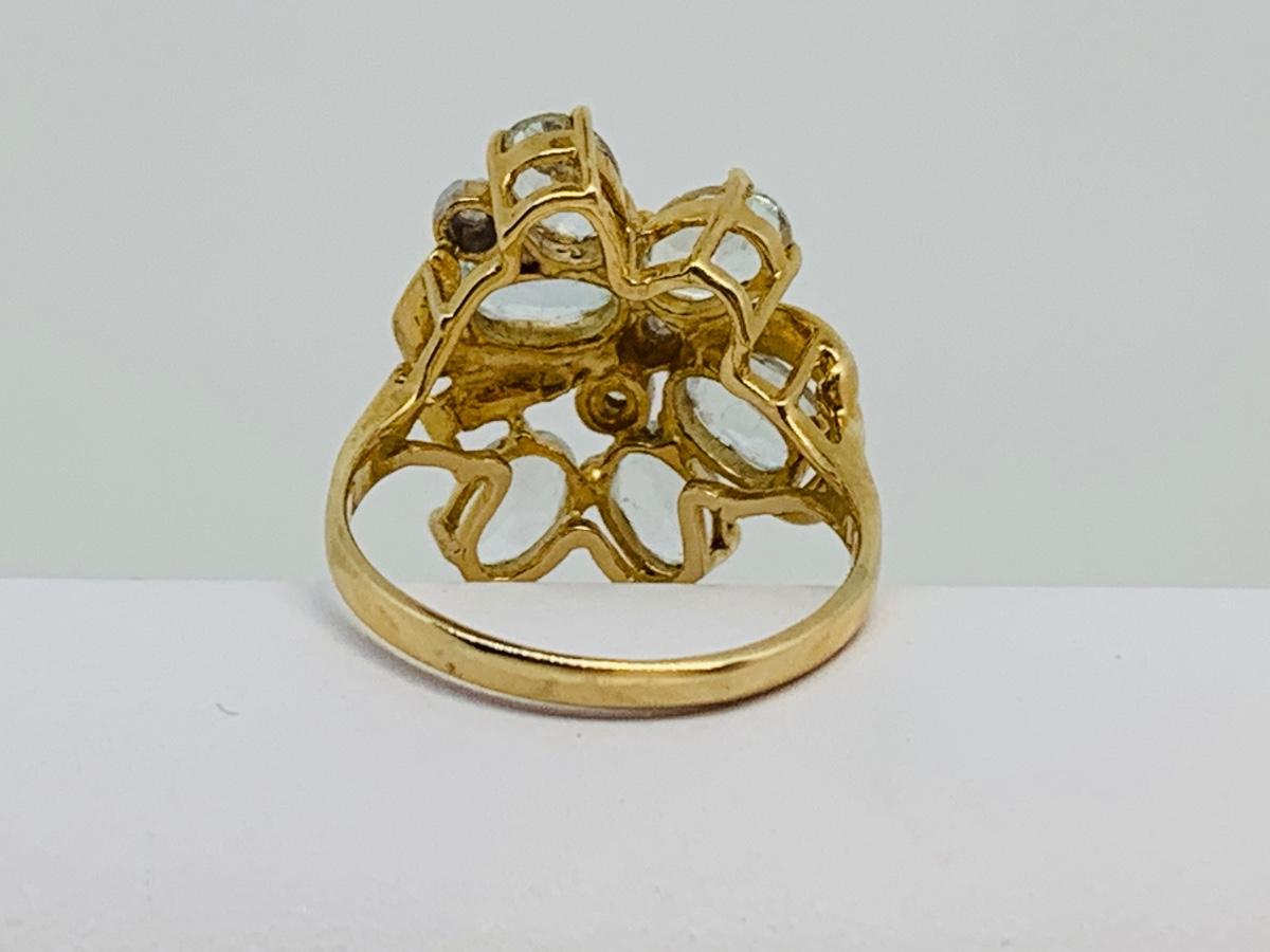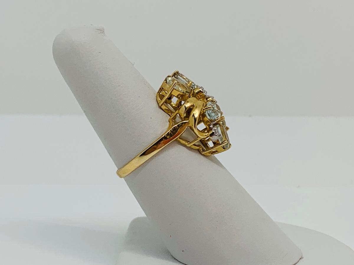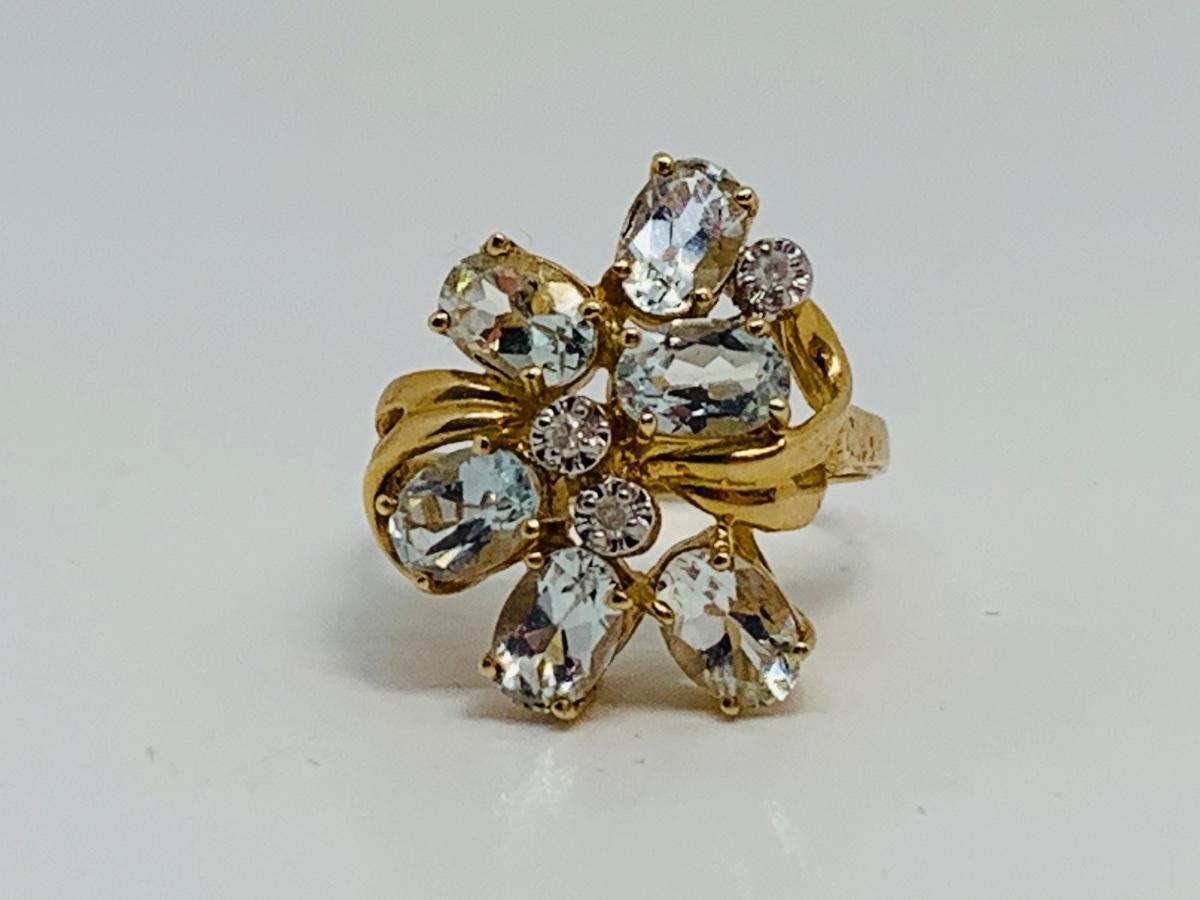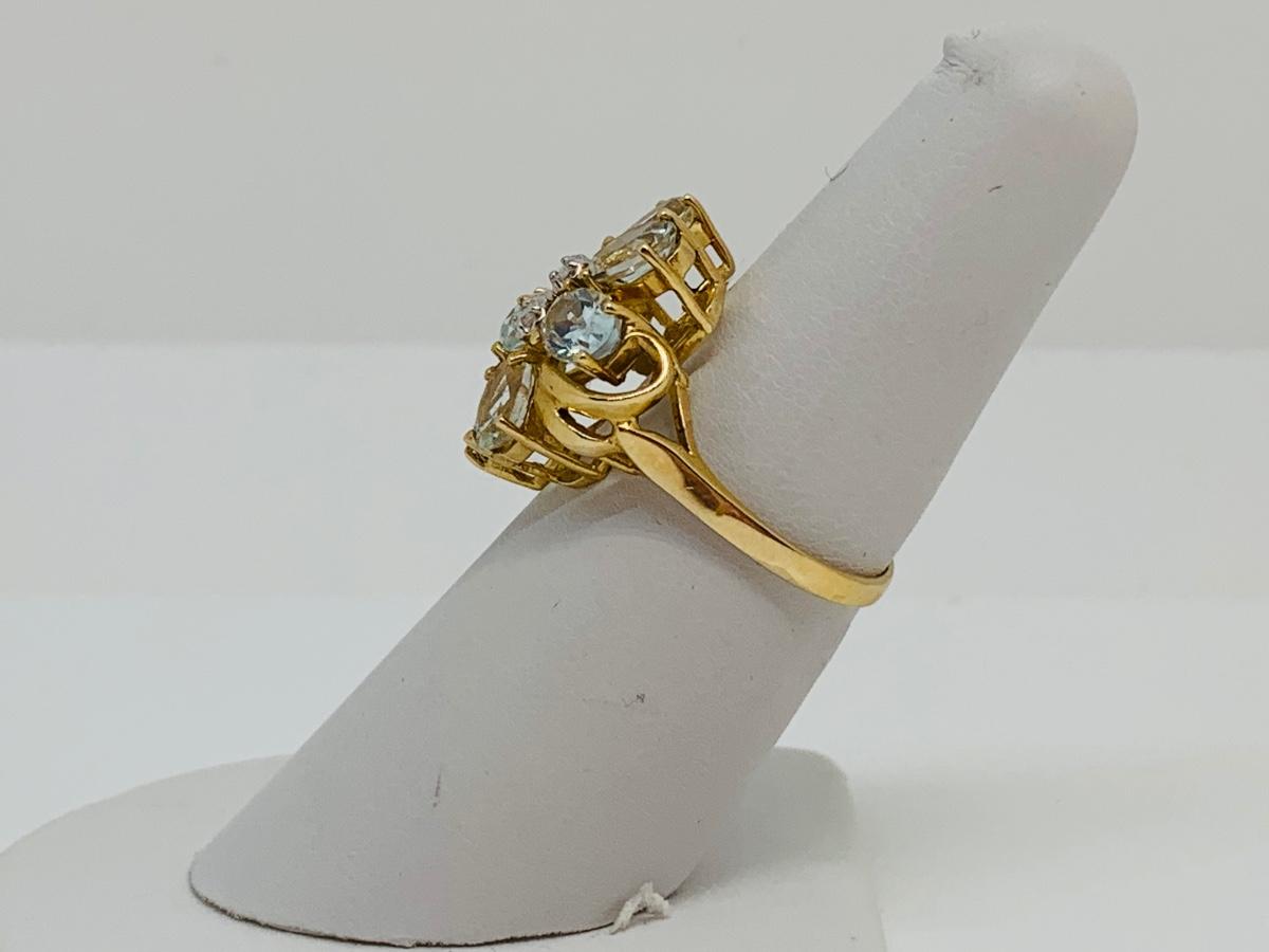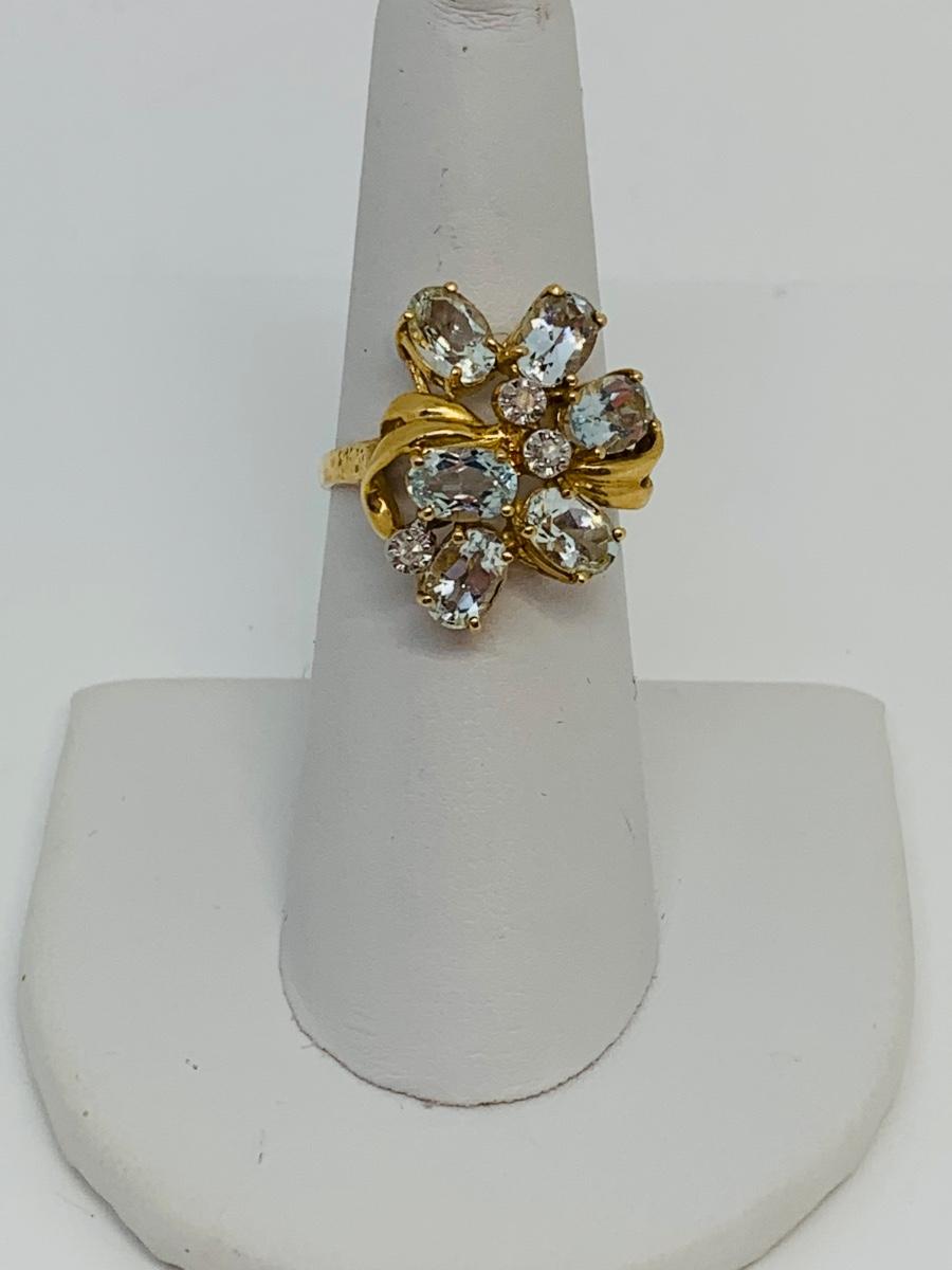 LOT 106: Aquamarine & Diamond Cluster Ring - 14K Gold - Size 7 - 4.33 gtw