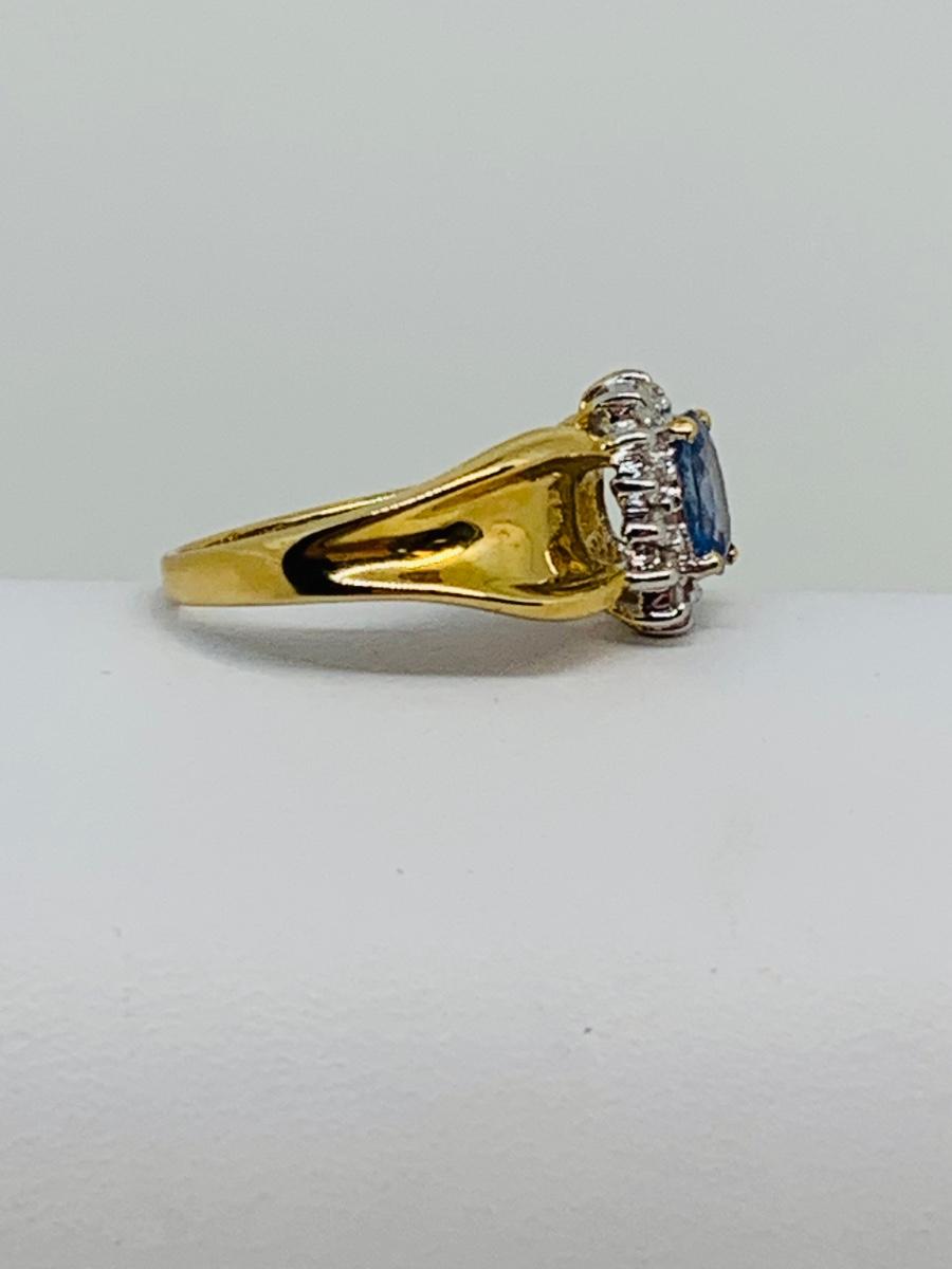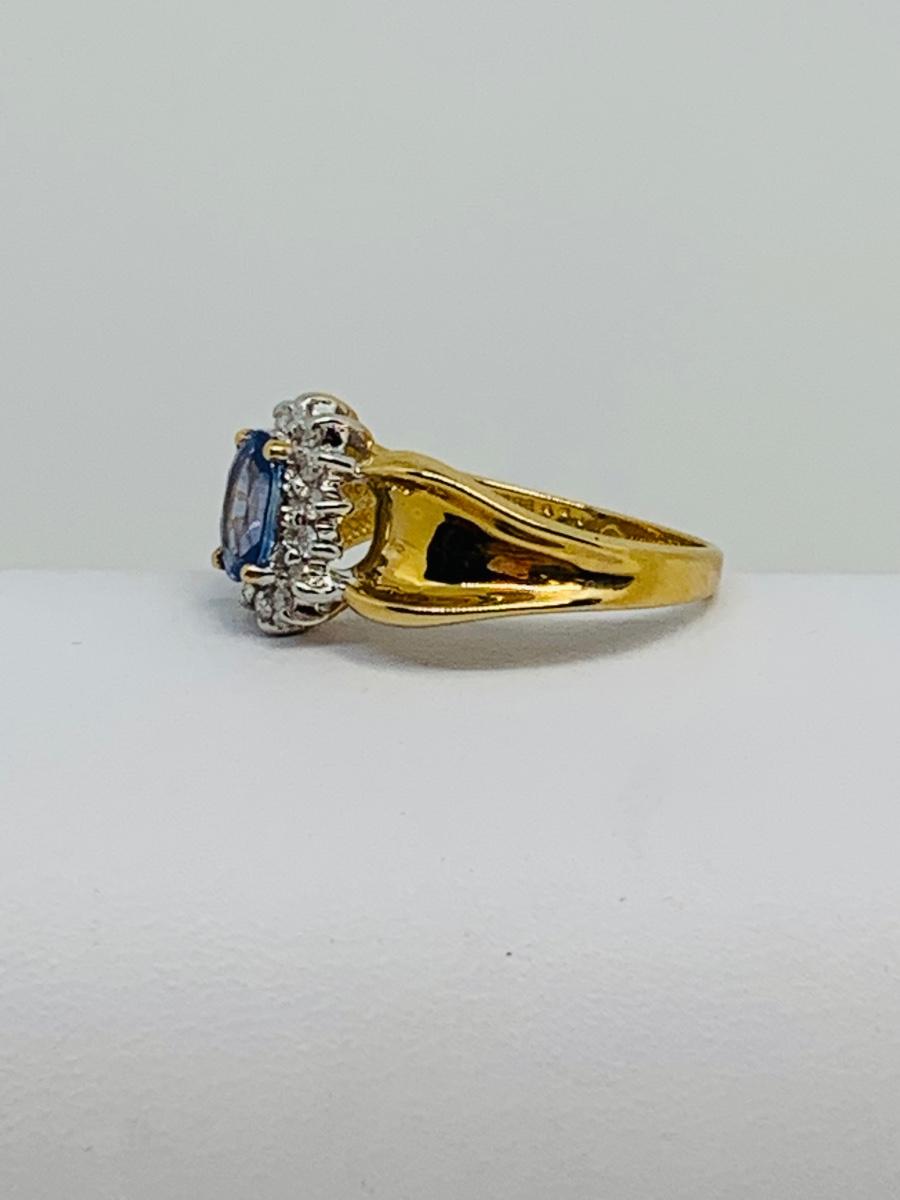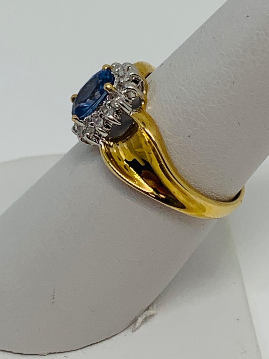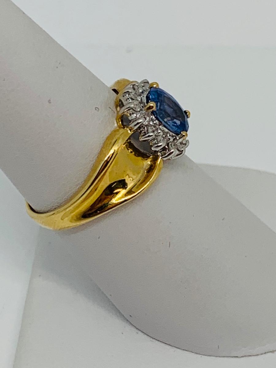 LOT 108: 14K Gold Tanzanite w/ Diamond Halo Size 7.5 Ring - 3.5 gtw