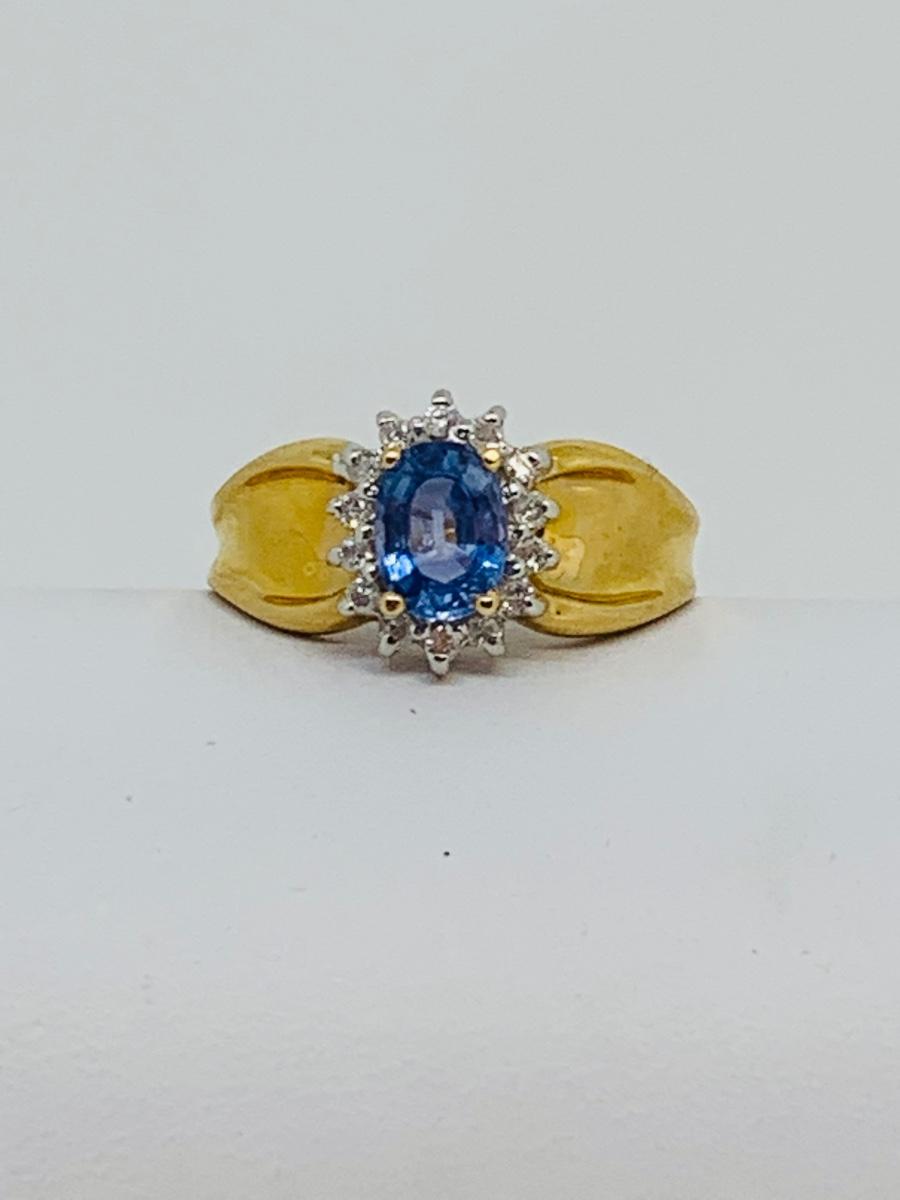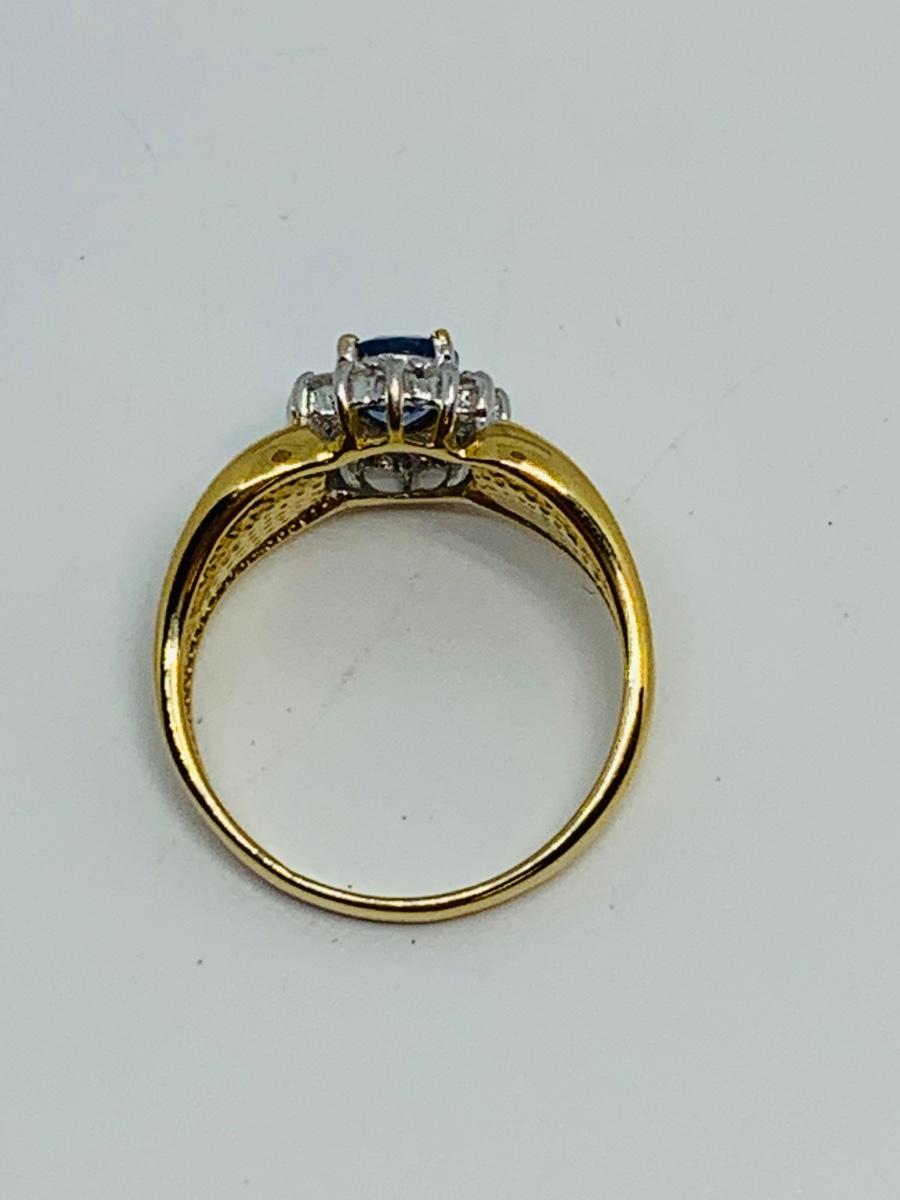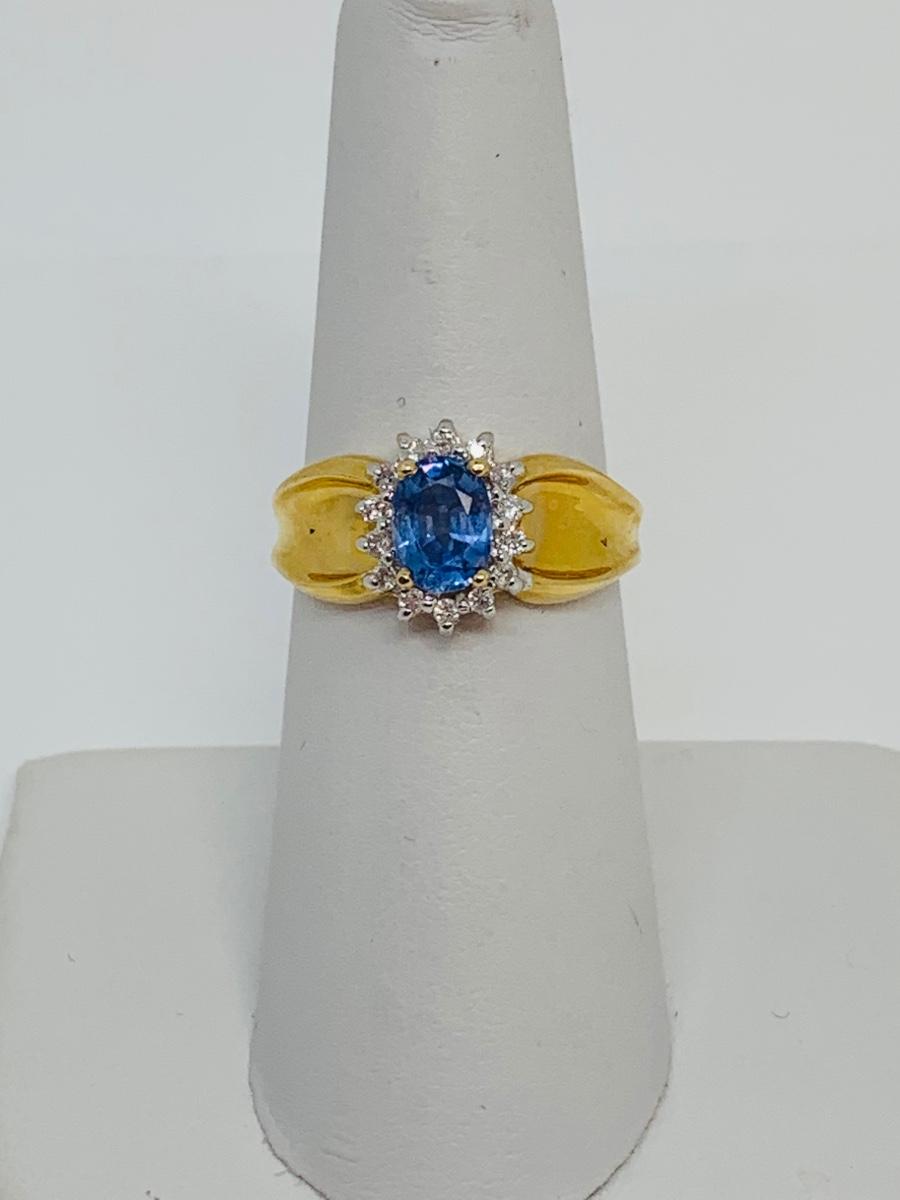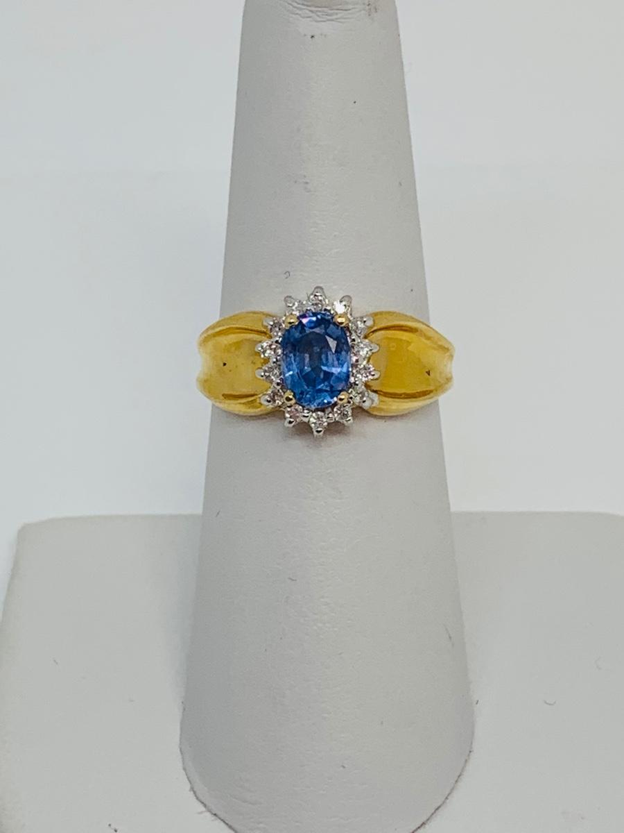 LOT 108: 14K Gold Tanzanite w/ Diamond Halo Size 7.5 Ring - 3.5 gtw