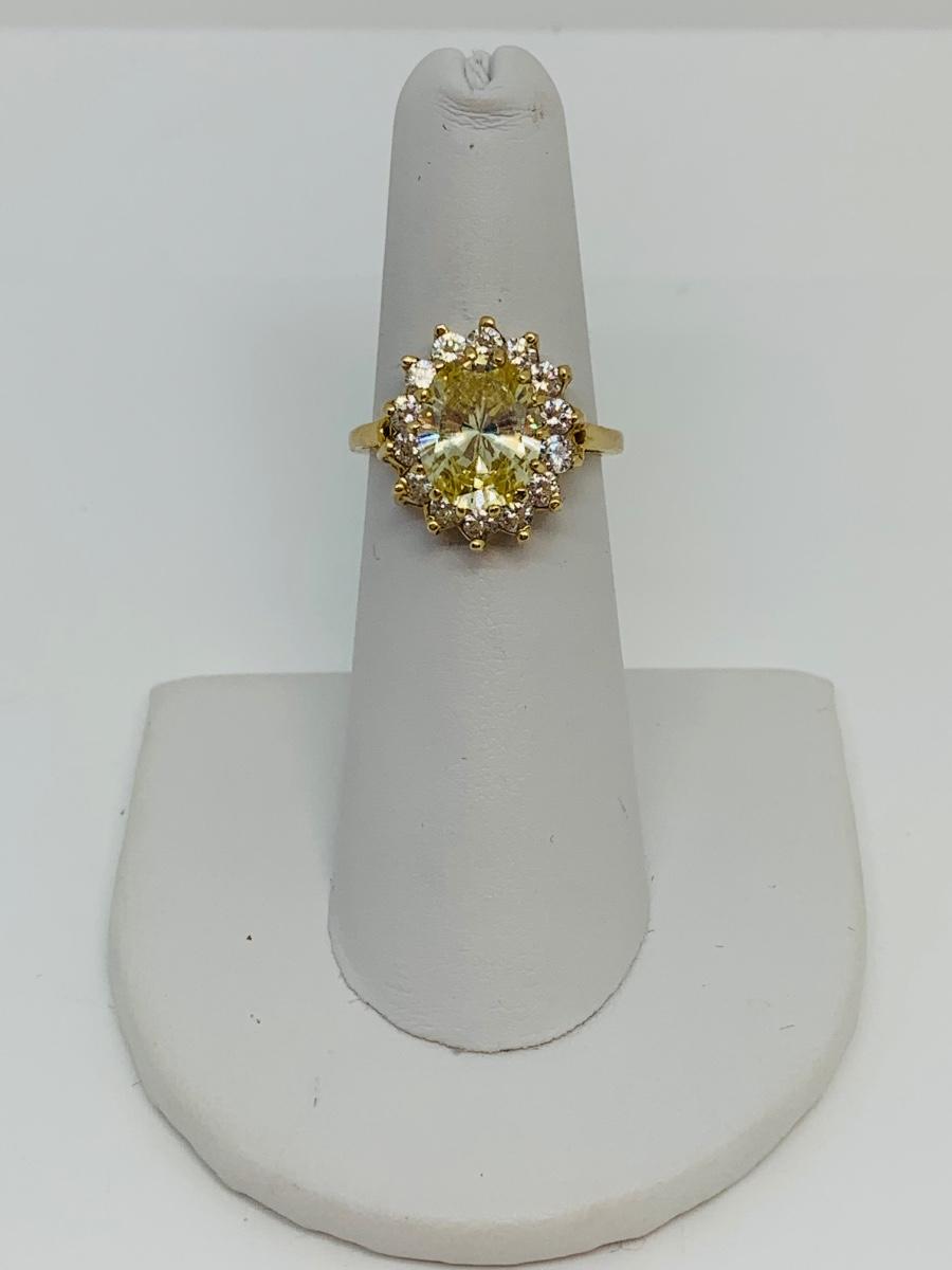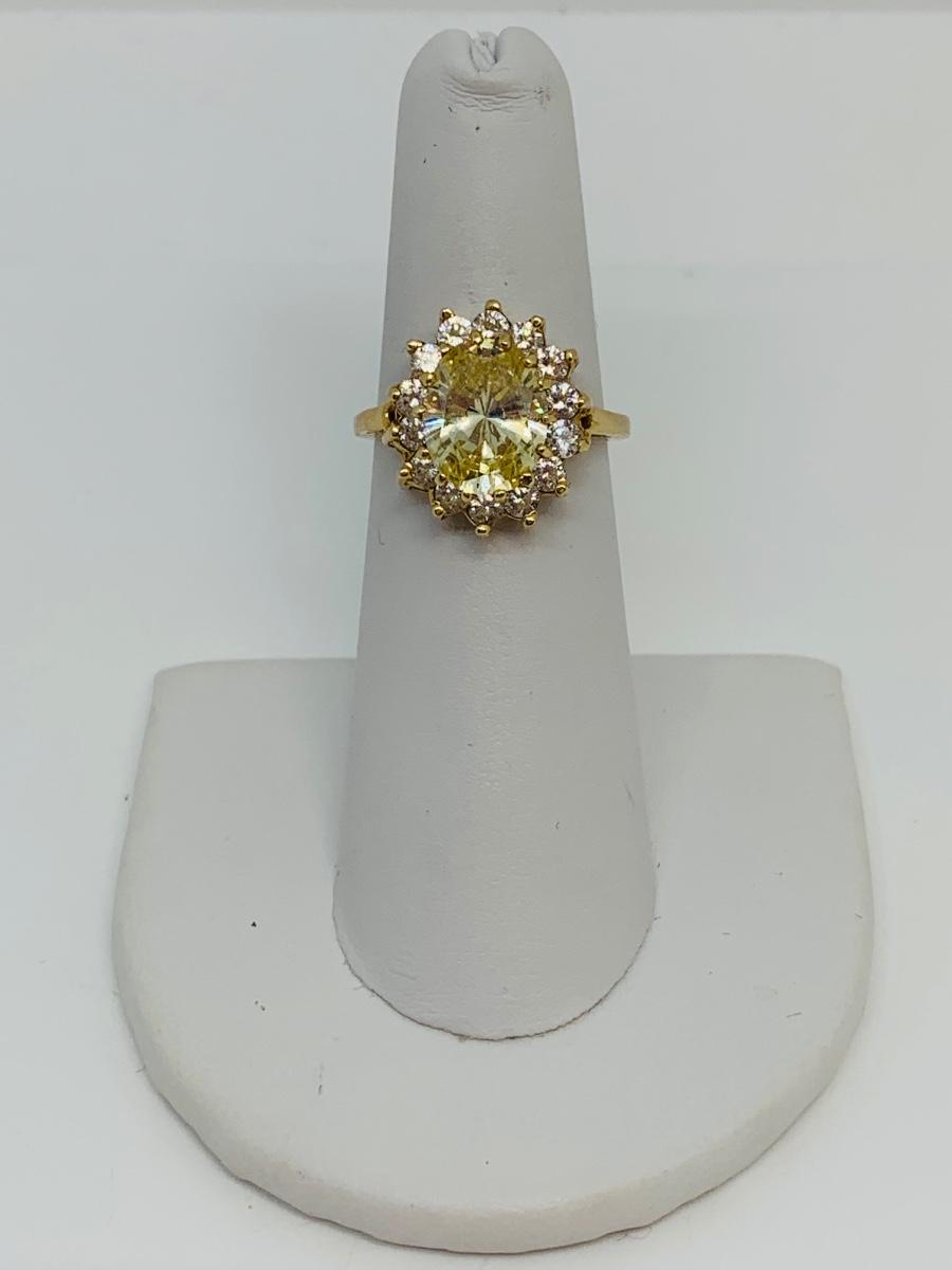 LOT 109: 14K Gold  Lemon Citrine with CZ halo  Size 6 Ring - 5 gtw