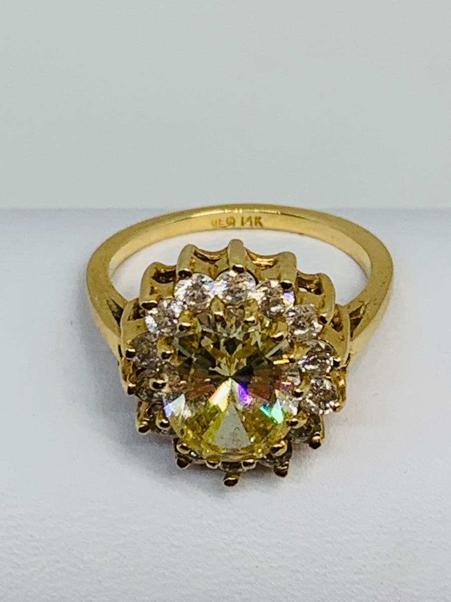LOT 109: 14K Gold Lemon Citrine with CZ halo Size 6 Ring - 5 gtw