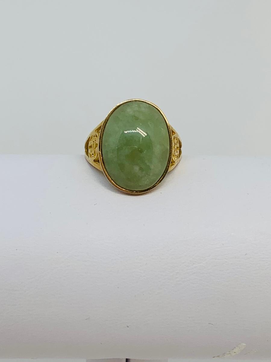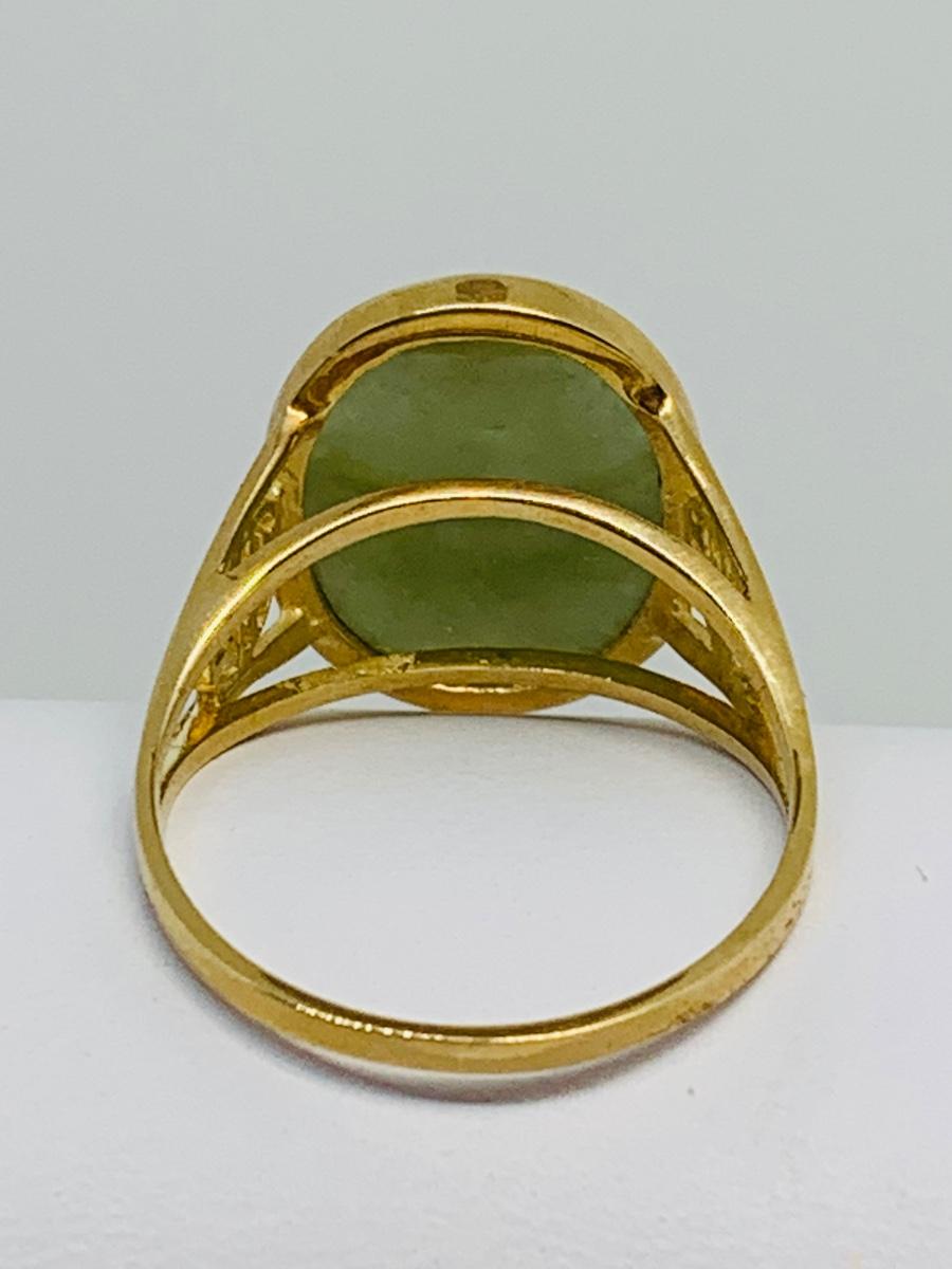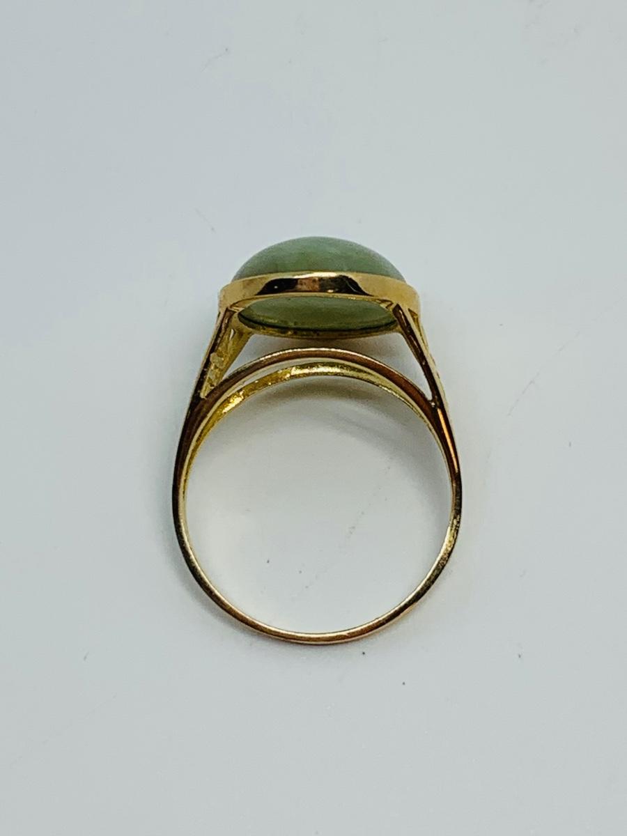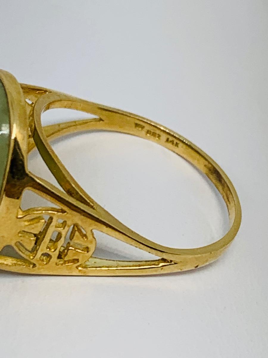 LOT 111: Large Jade 14K Gold Ring - Size 8 - 4.63 gtw