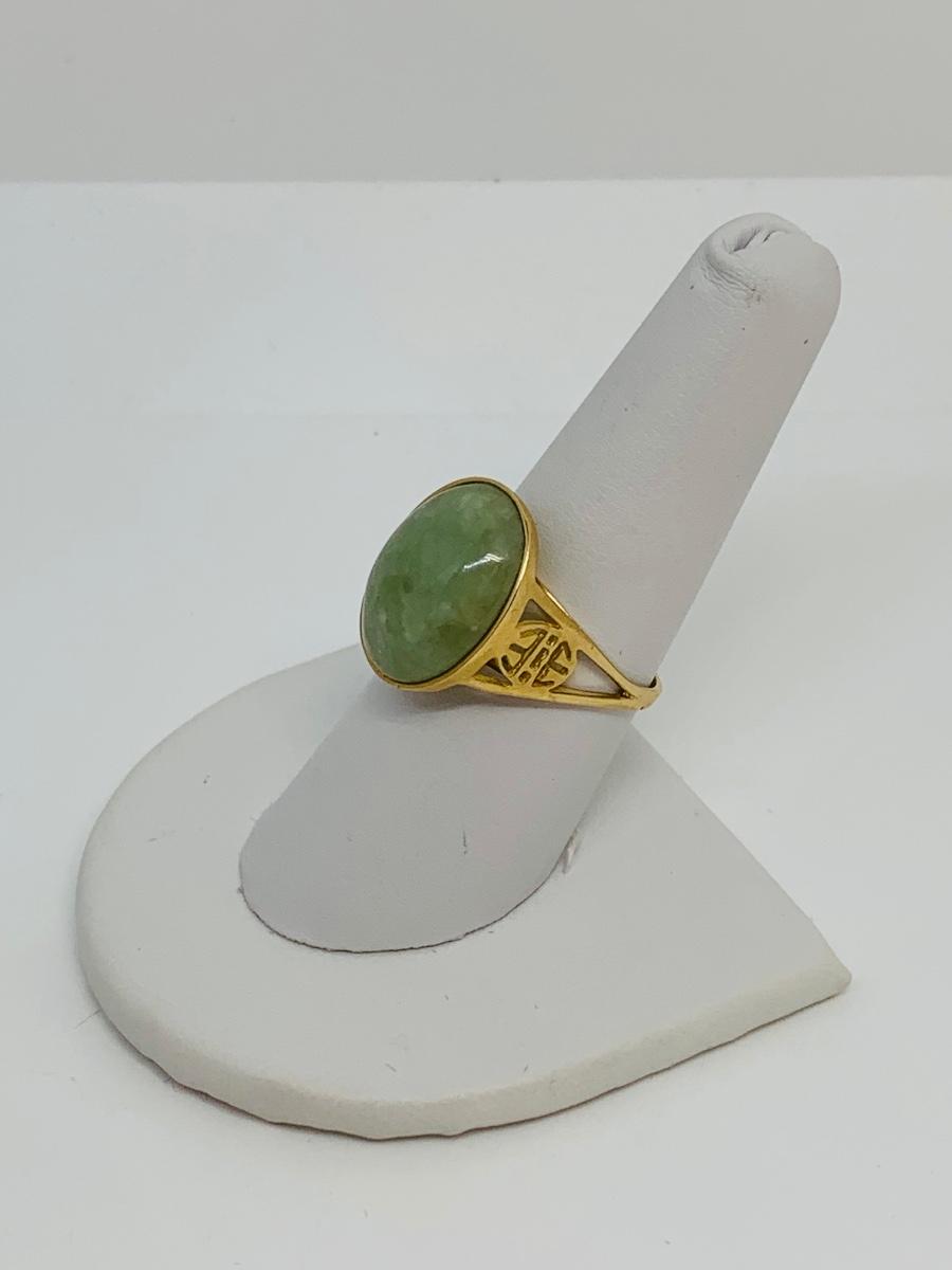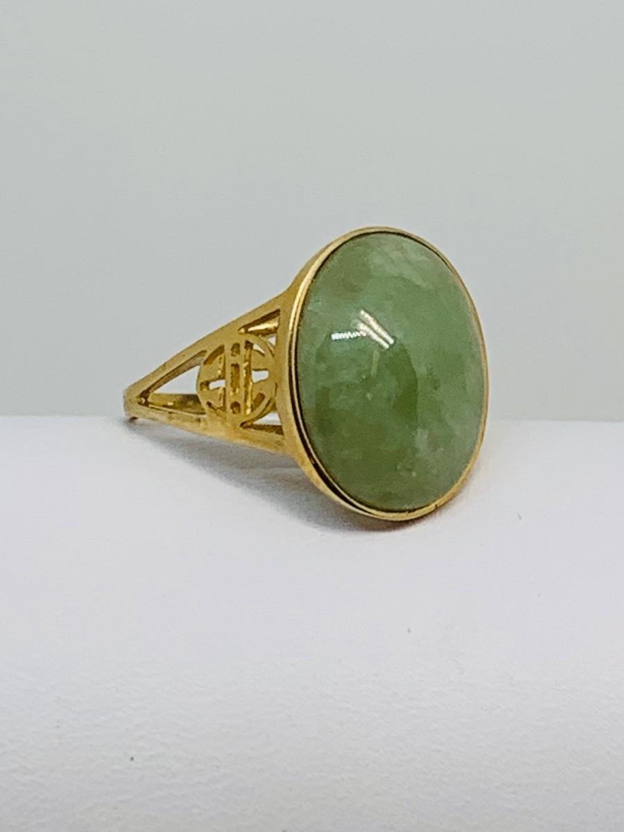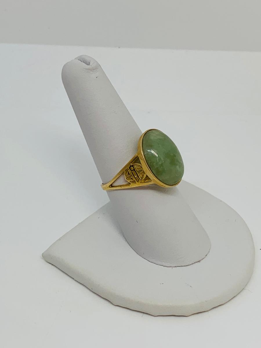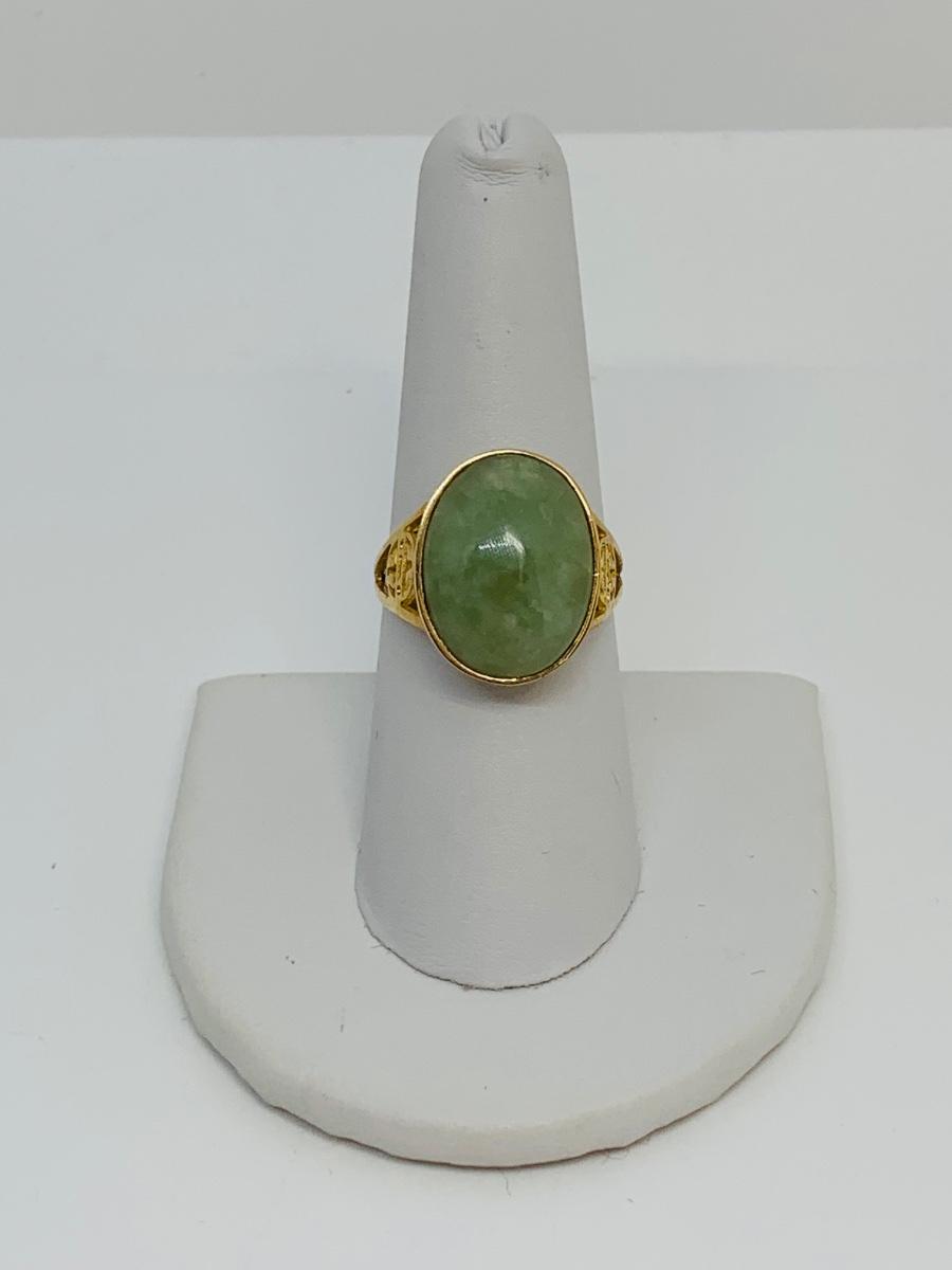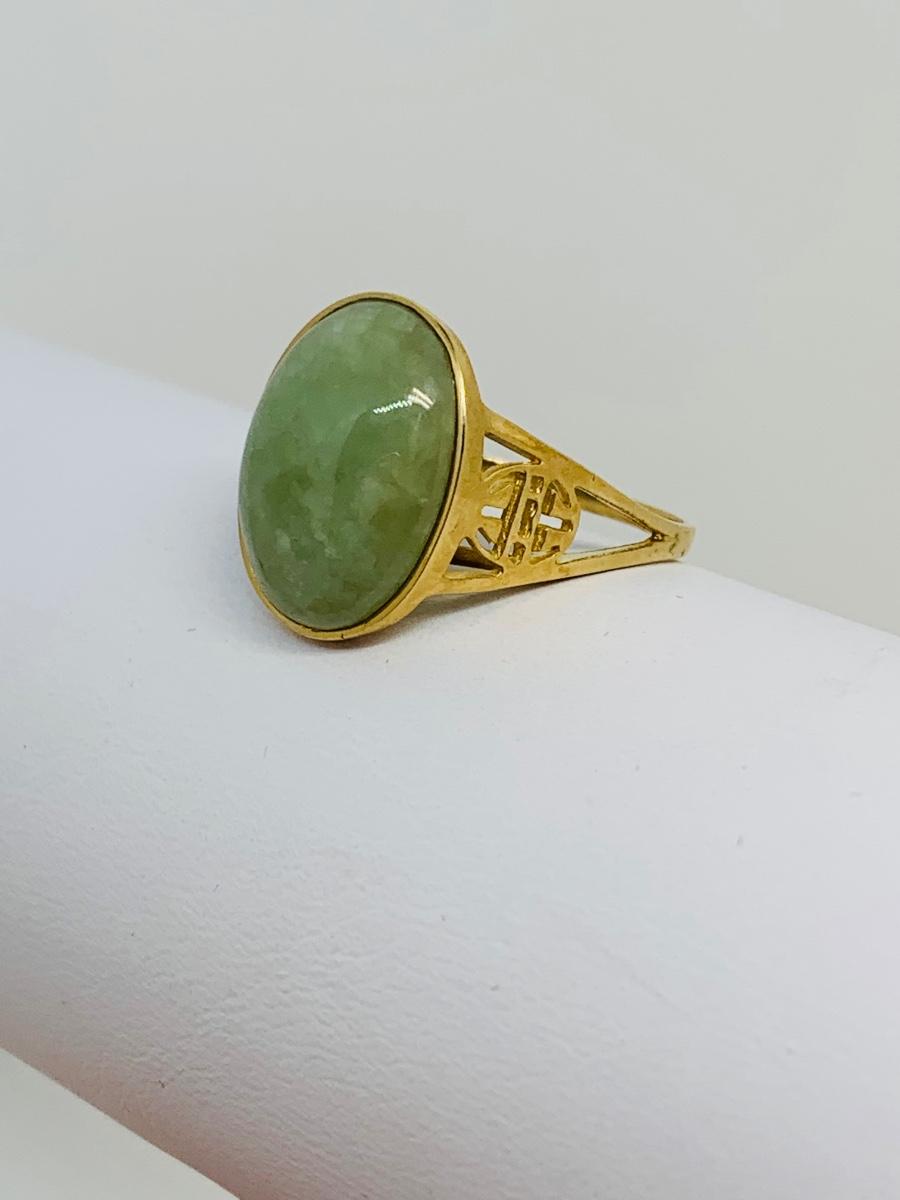 LOT 111: Large Jade 14K Gold Ring - Size 8 - 4.63 gtw