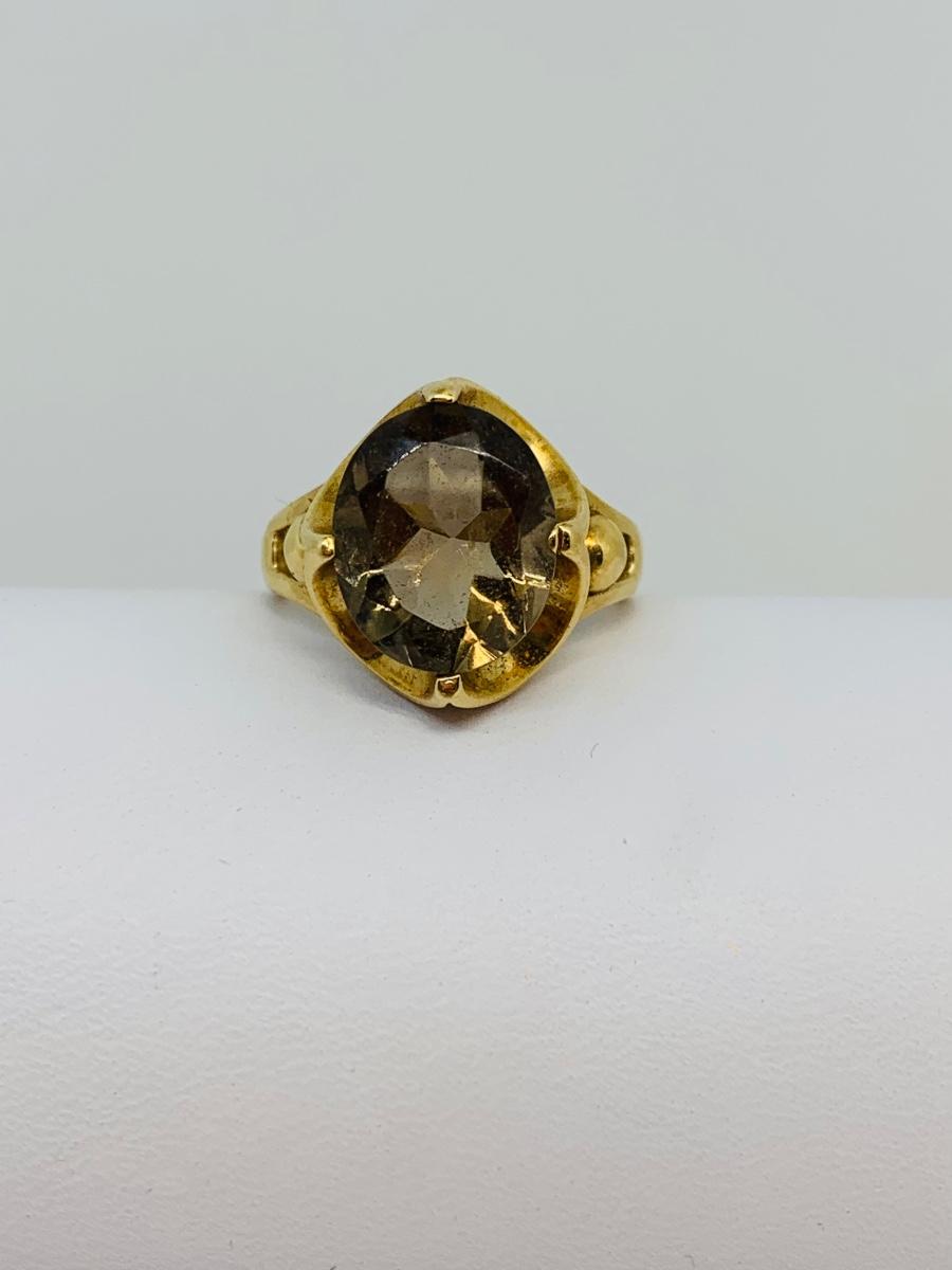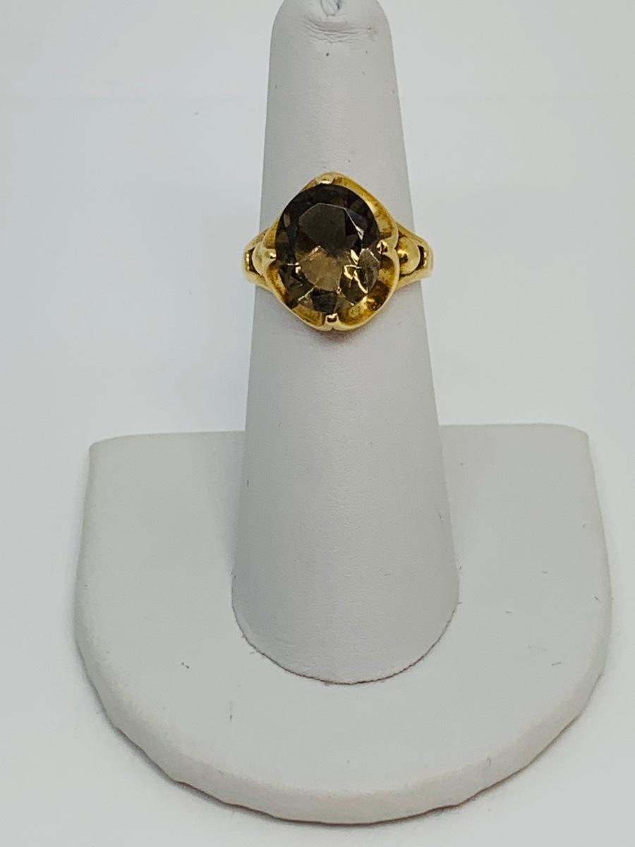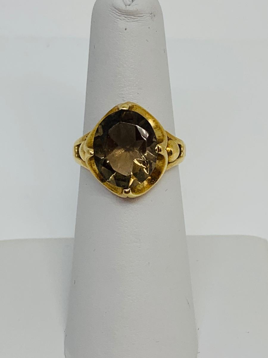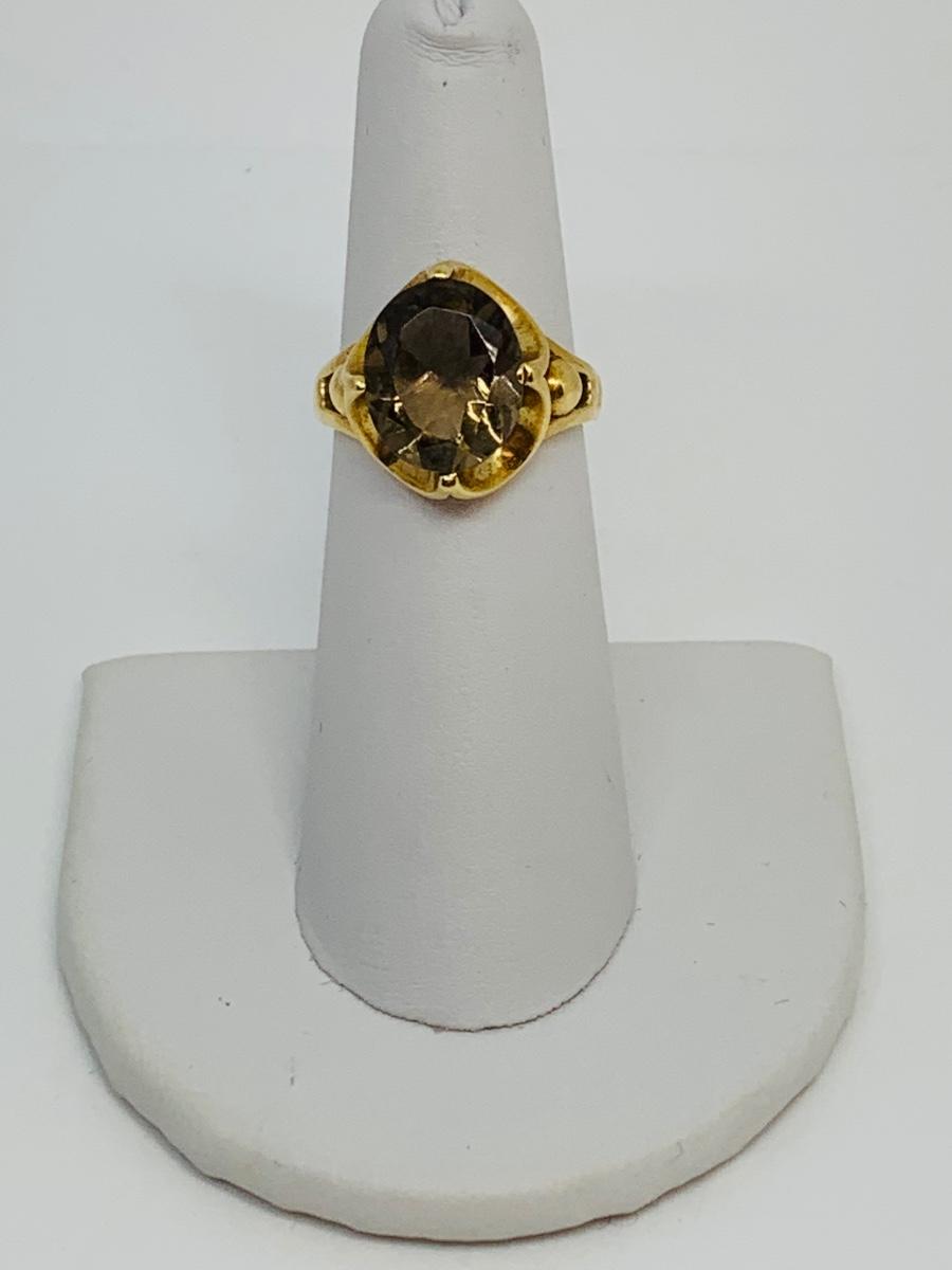 LOT 113: Smoky Topaz 14K Gold Ring -Size 8 - 4.86 gtw