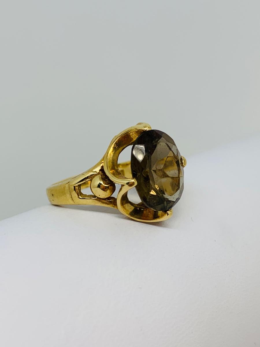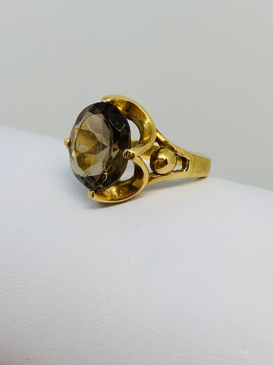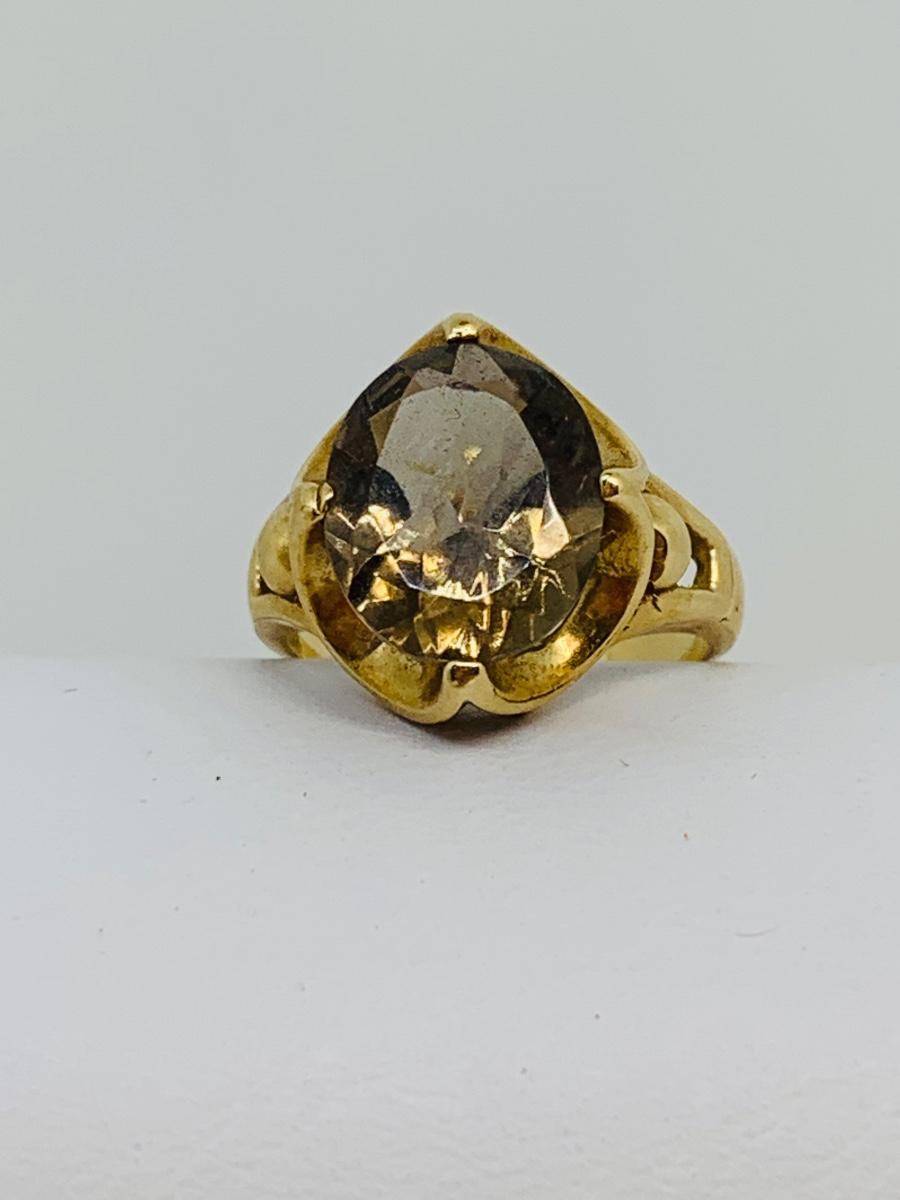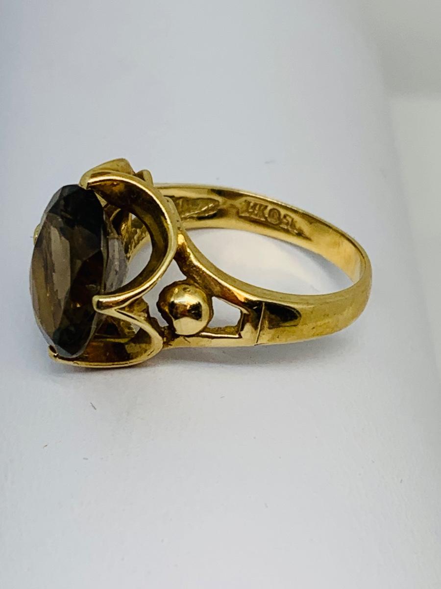 LOT 113: Smoky Topaz 14K Gold Ring -Size 8 - 4.86 gtw