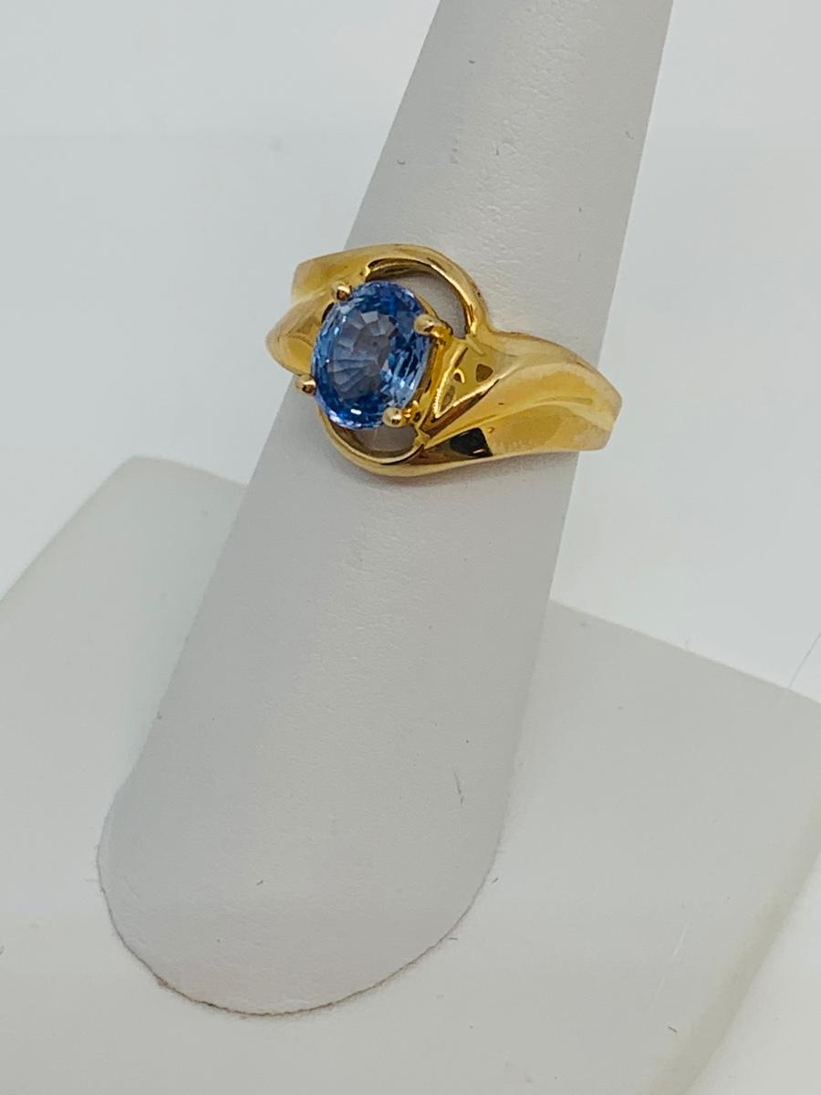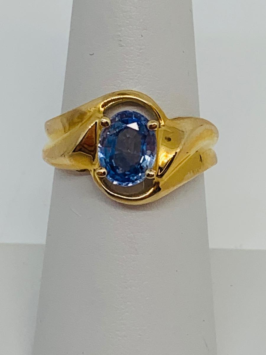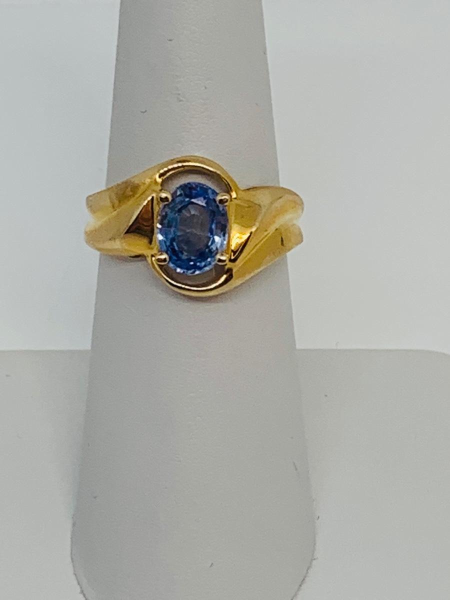 LOT 116: 4.35g tw 14K yellow gold Sapphire Ring- Size 7