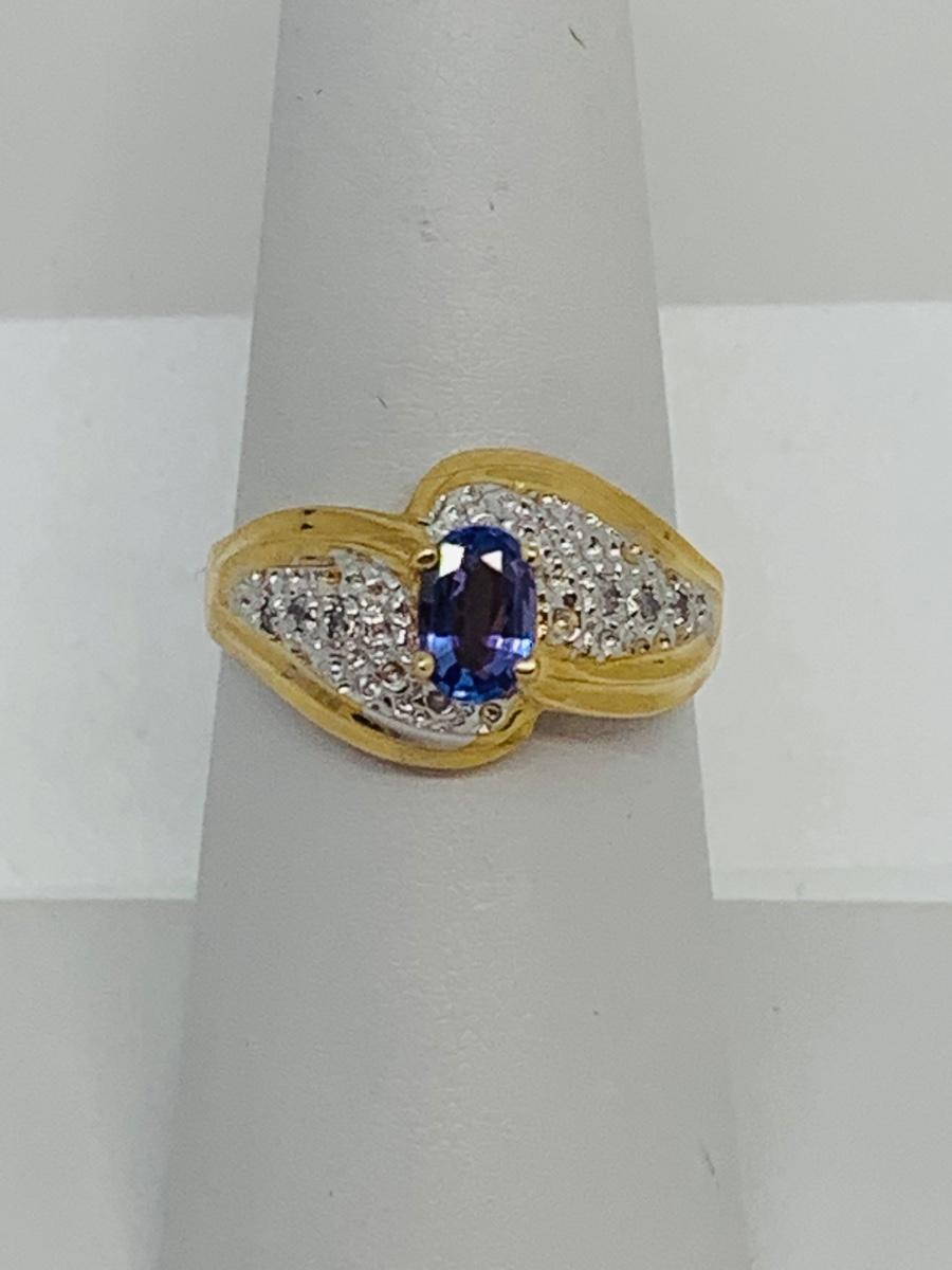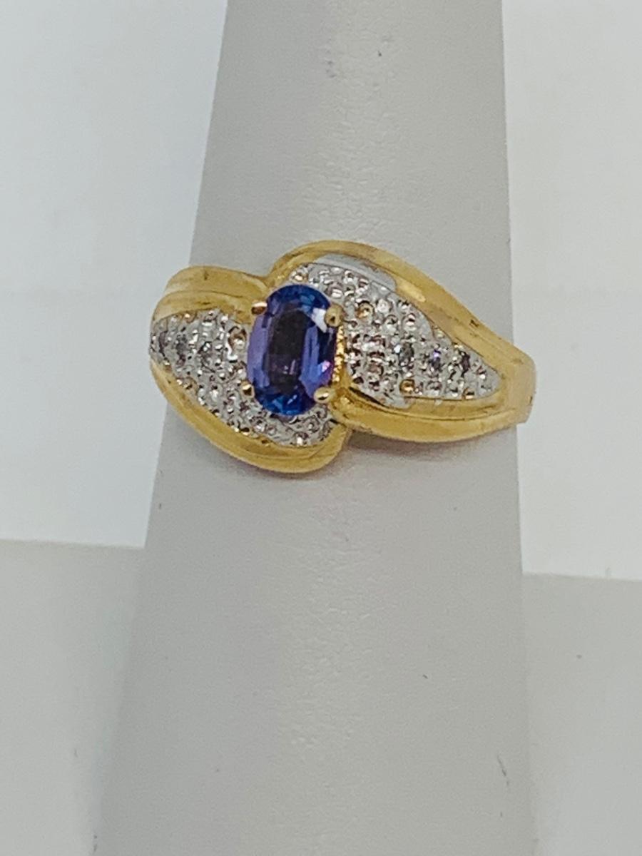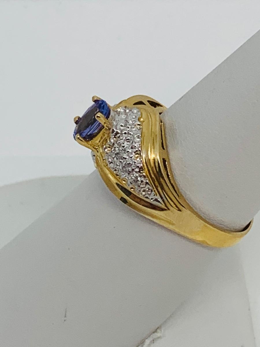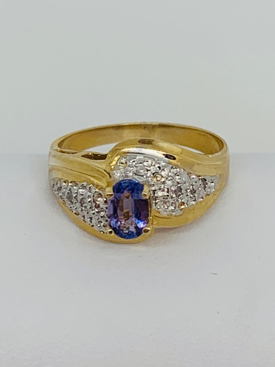 LOT 117: 14K Gold Ring - Tanzanite & Diamonds - Size 7.5 - 3.35 gtw