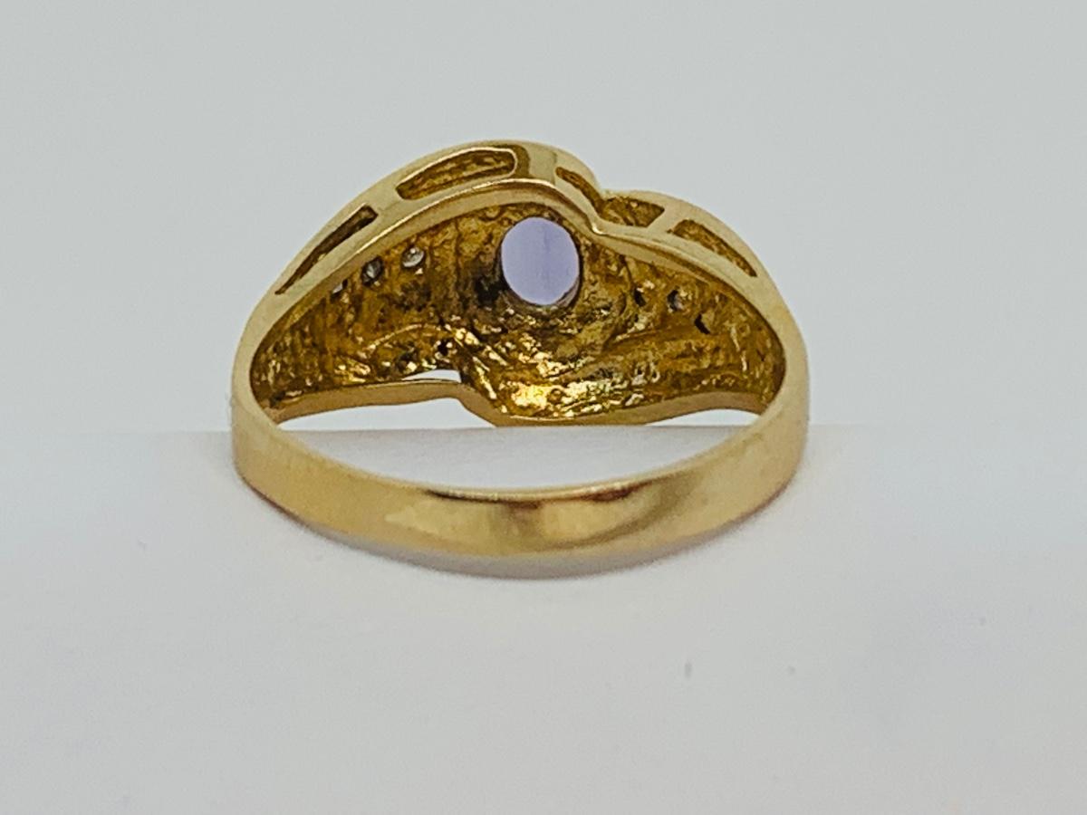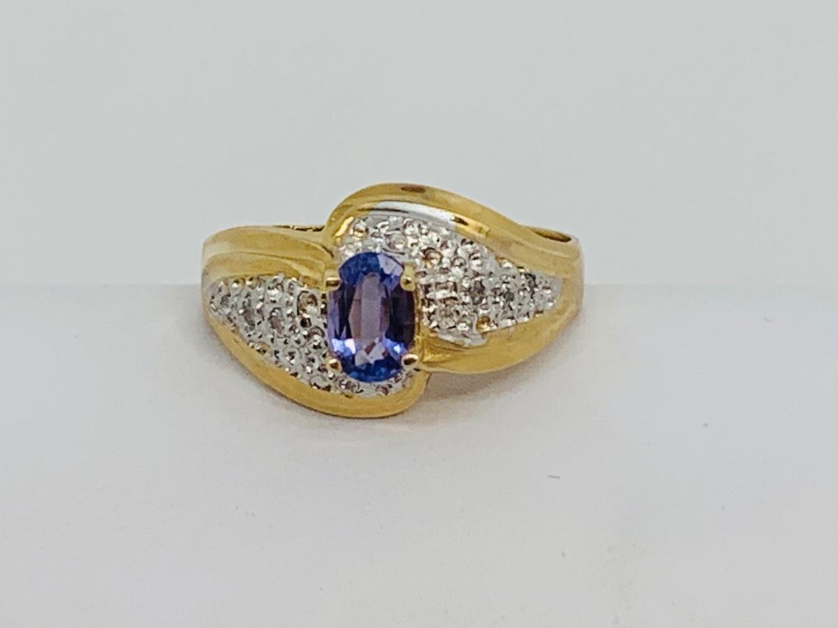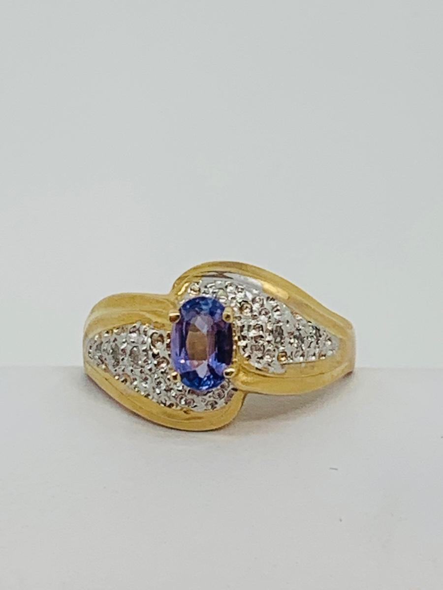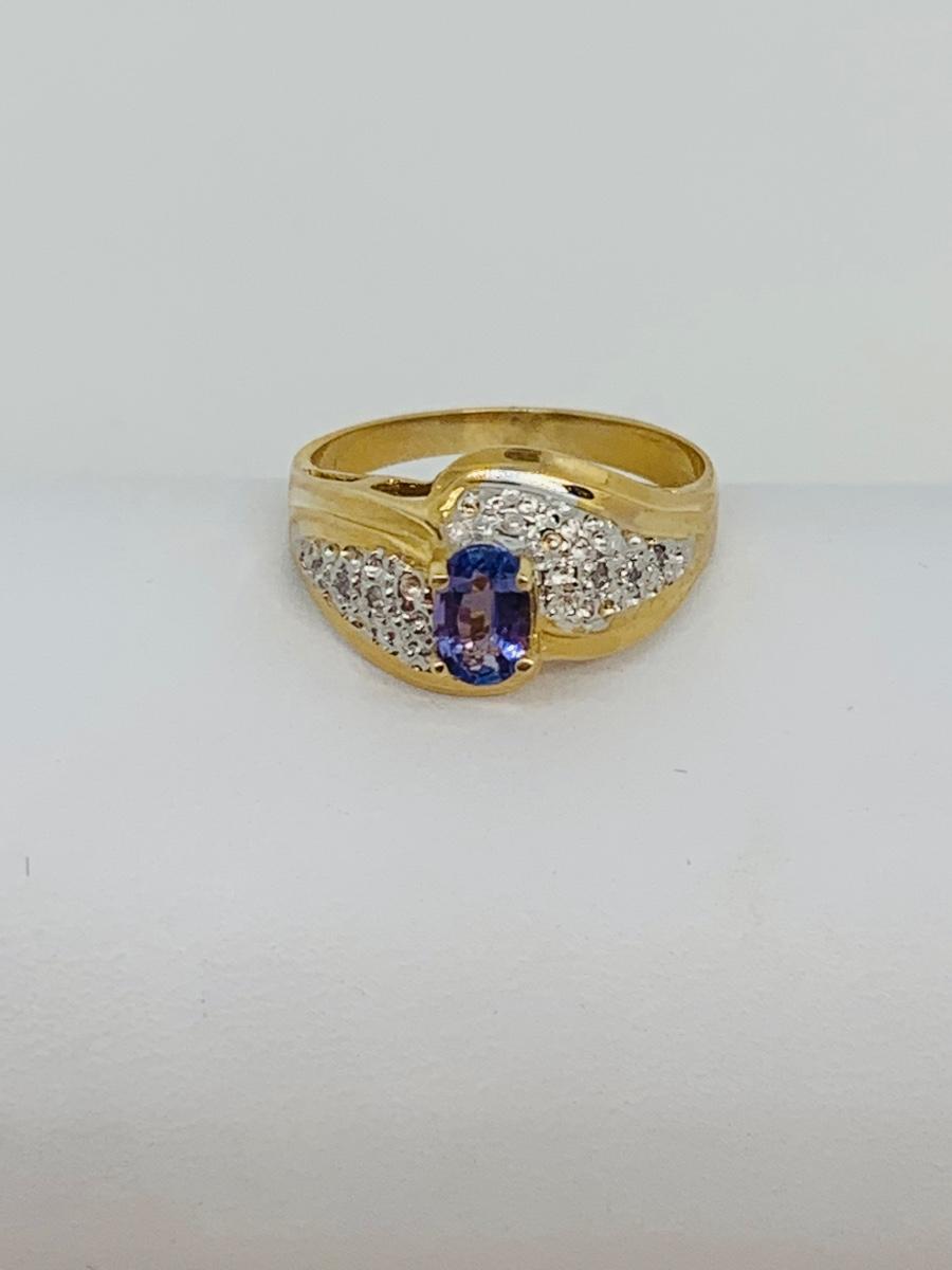 LOT 117: 14K Gold Ring - Tanzanite & Diamonds - Size 7.5 - 3.35 gtw