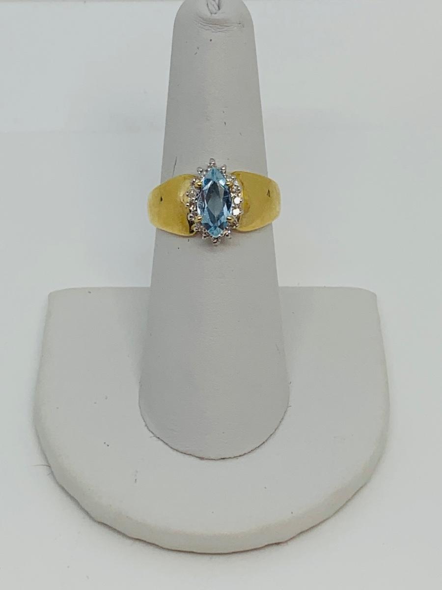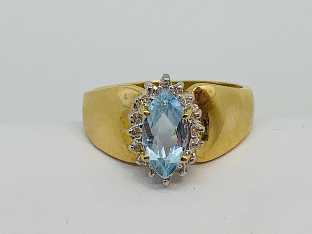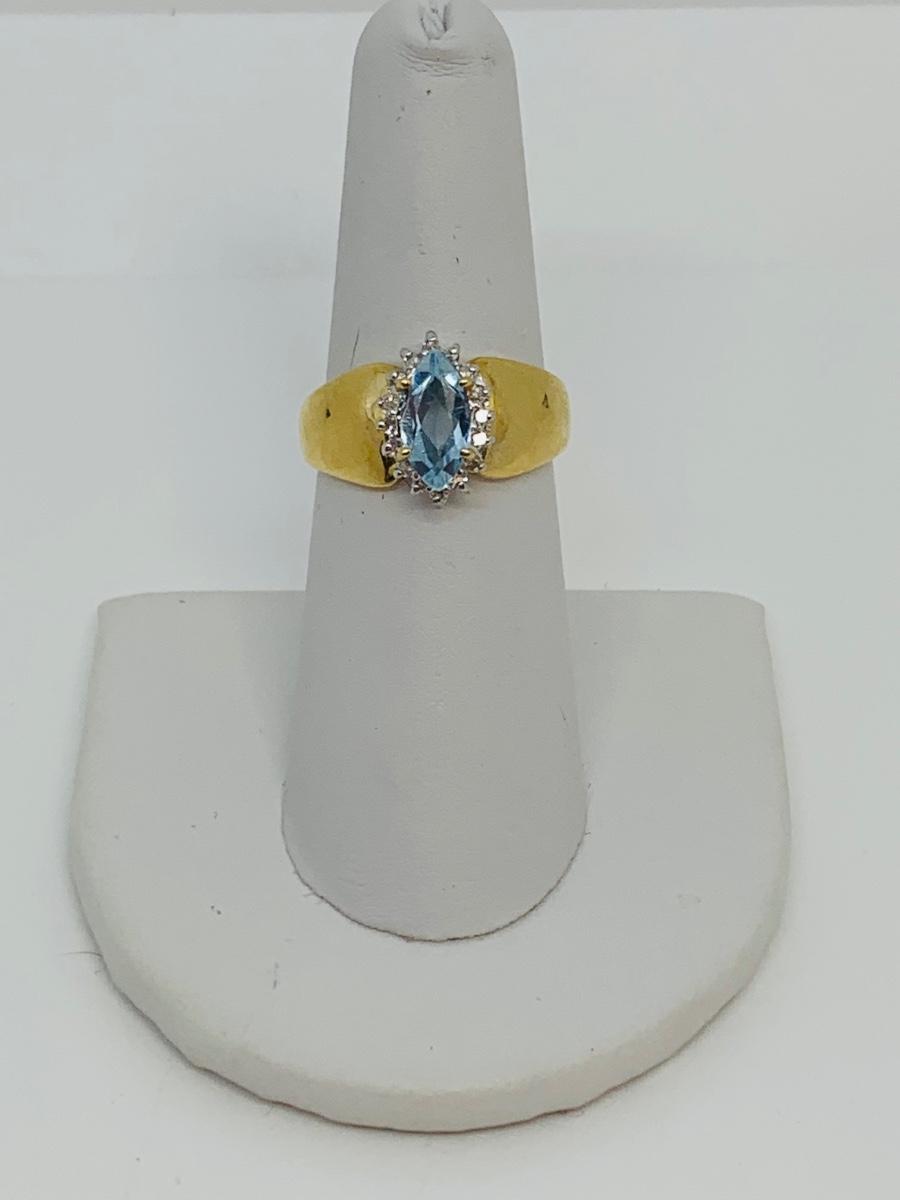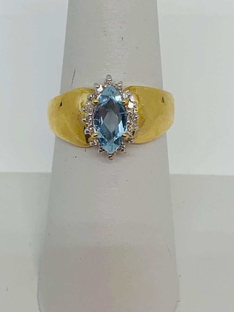 LOT 118: Blue Marquis Cut Topaz 14K Gold Ring - Size 7.5 - 3.58 gtw
