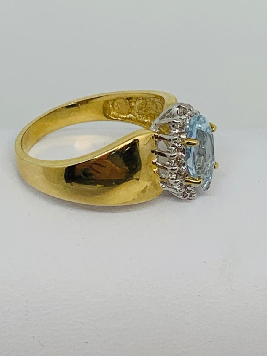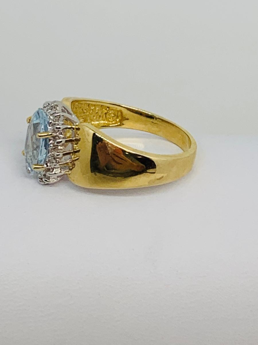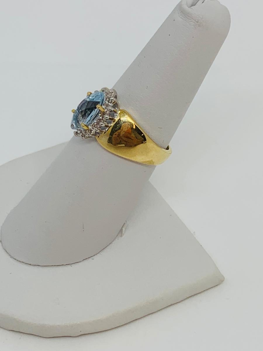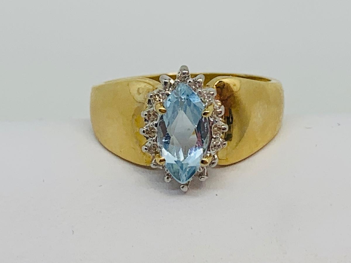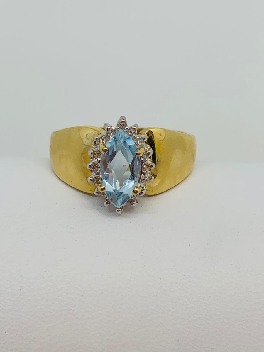 LOT 118: Blue Marquis Cut Topaz 14K Gold Ring - Size 7.5 - 3.58 gtw