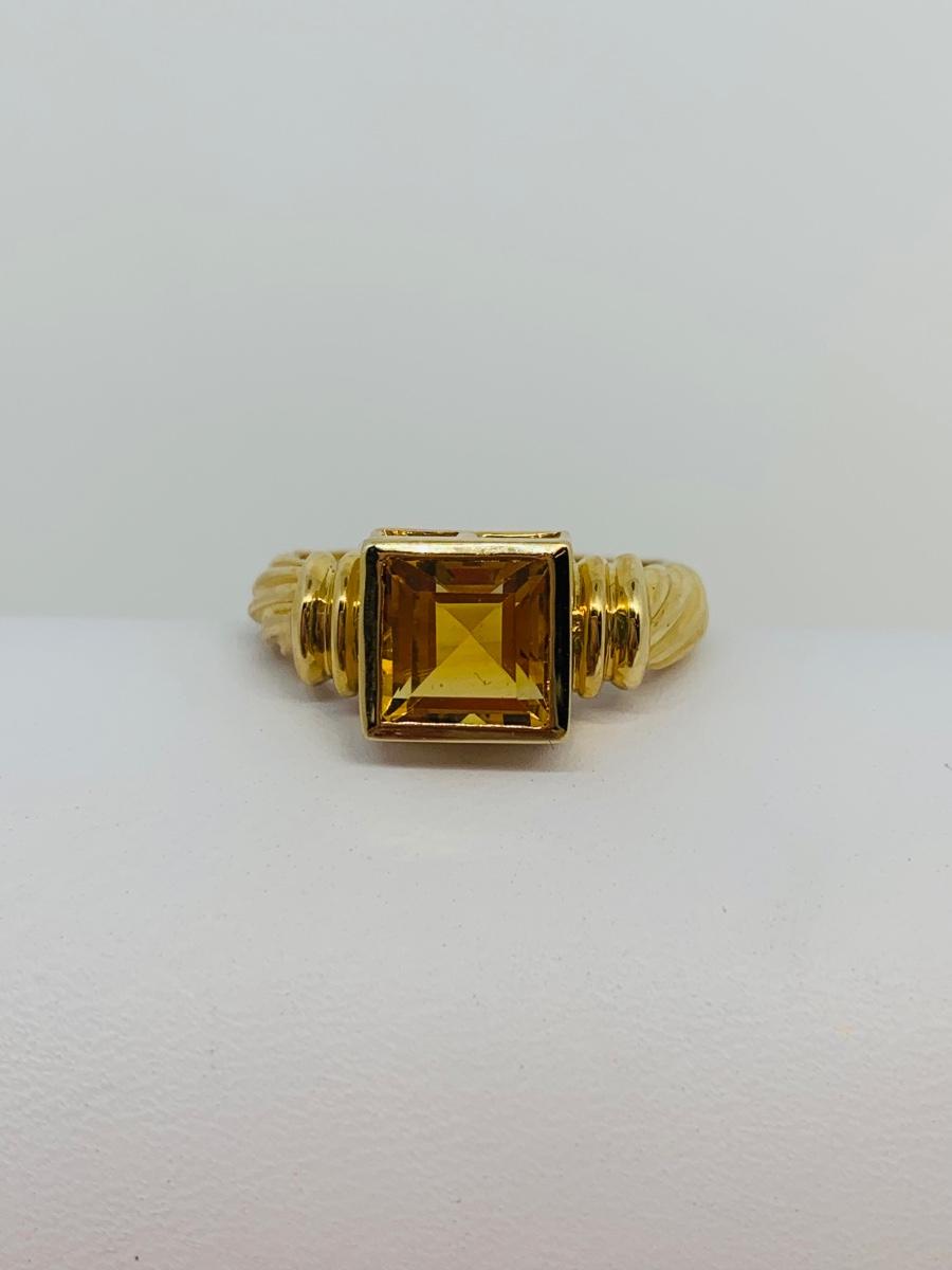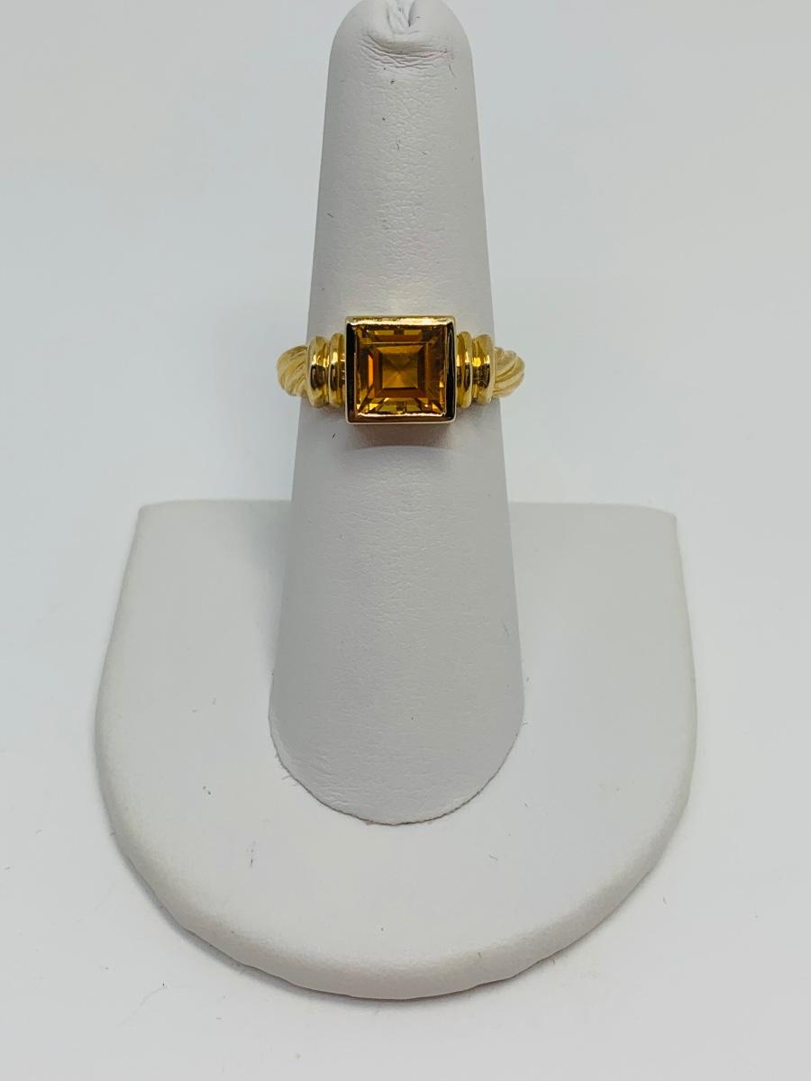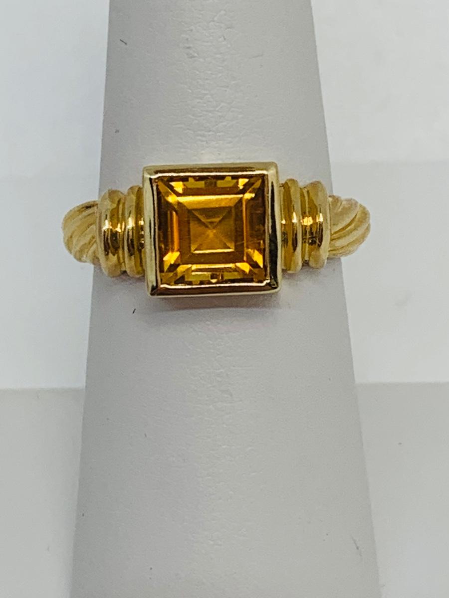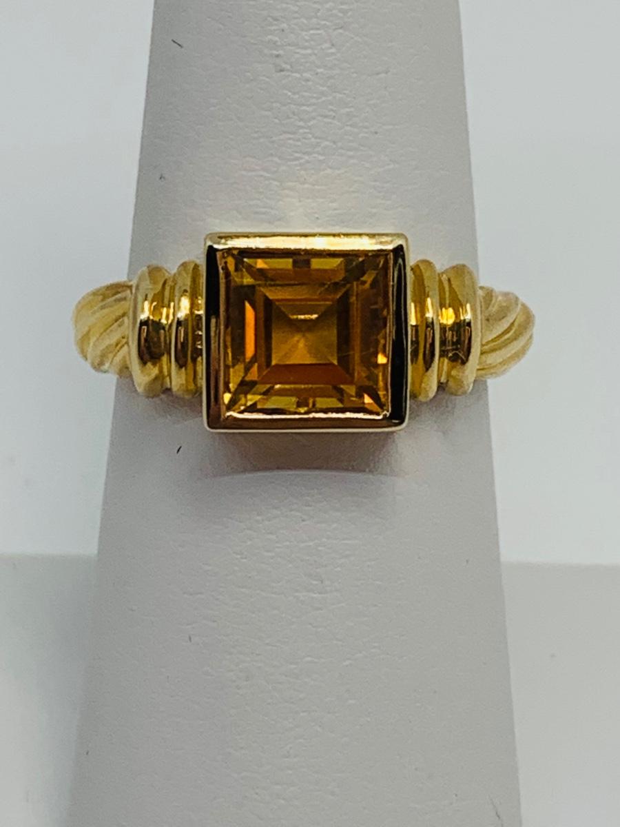 LOT 120: 14K Gold Square Citrine Size 7 Ring - 4.4 gtw