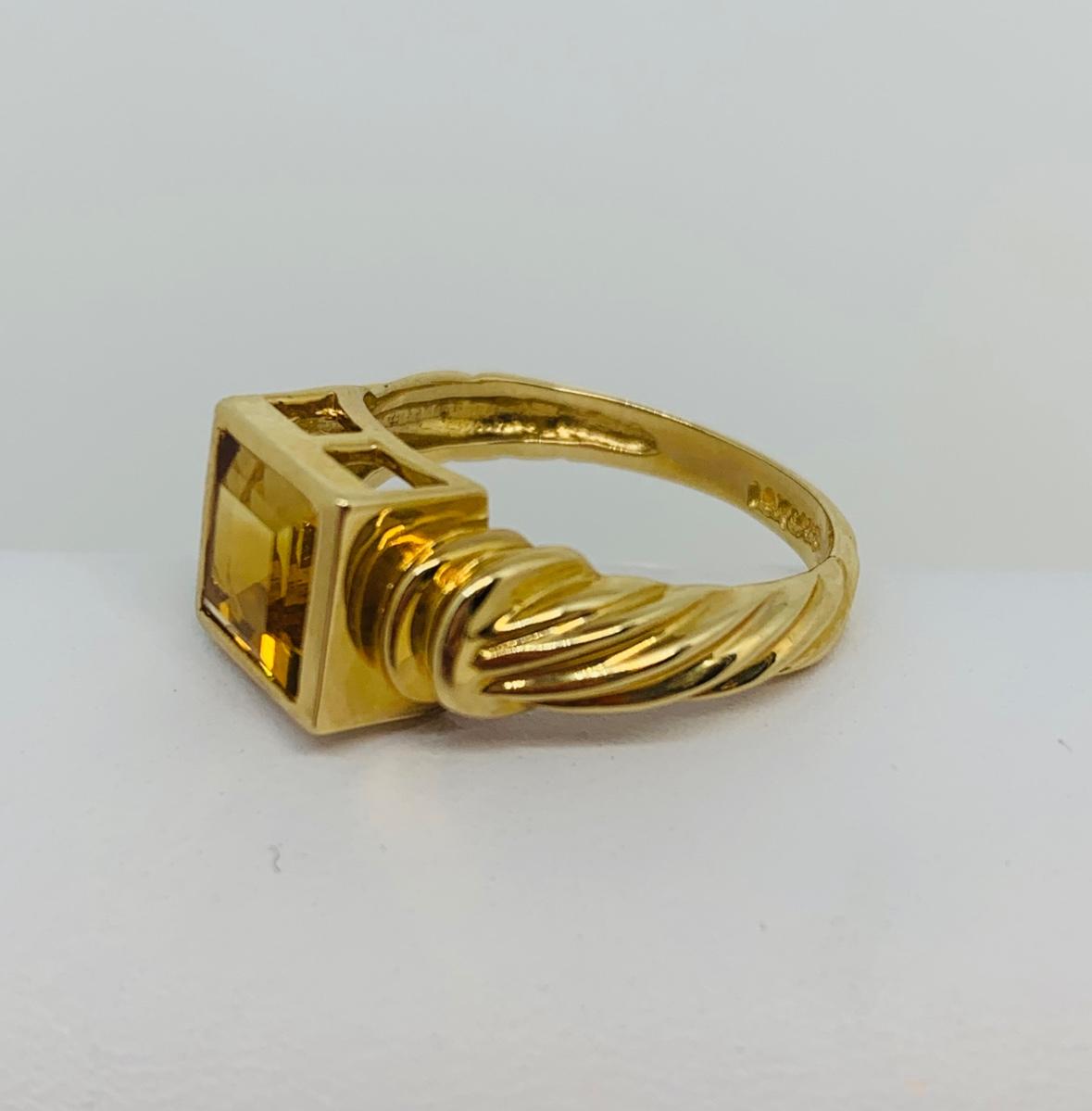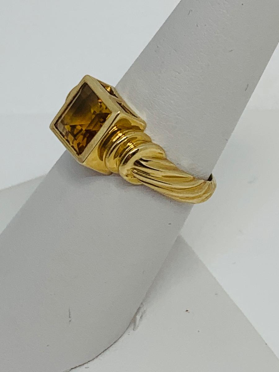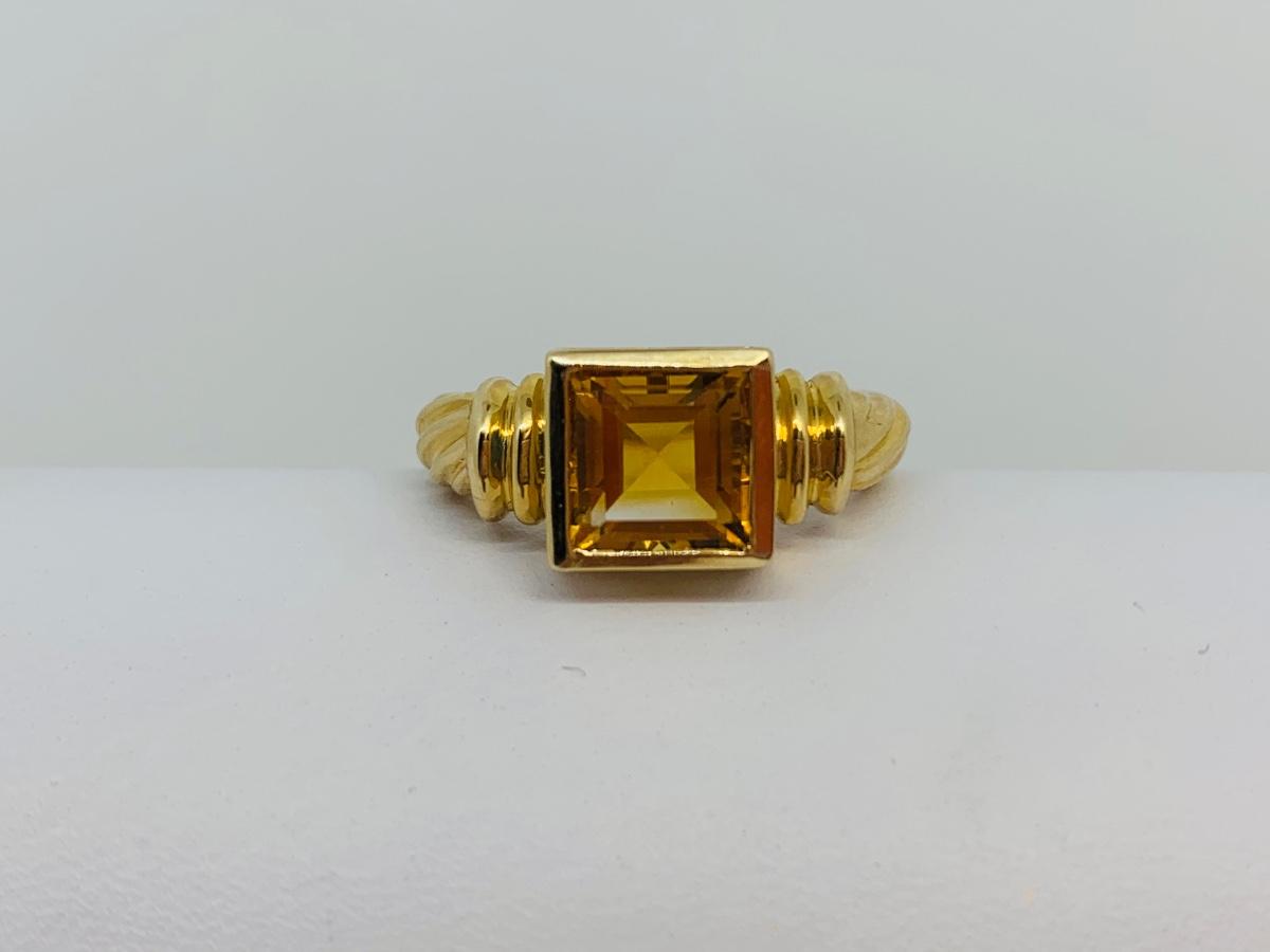 LOT 120: 14K Gold Square Citrine Size 7 Ring - 4.4 gtw