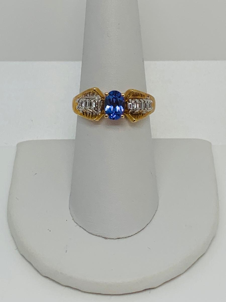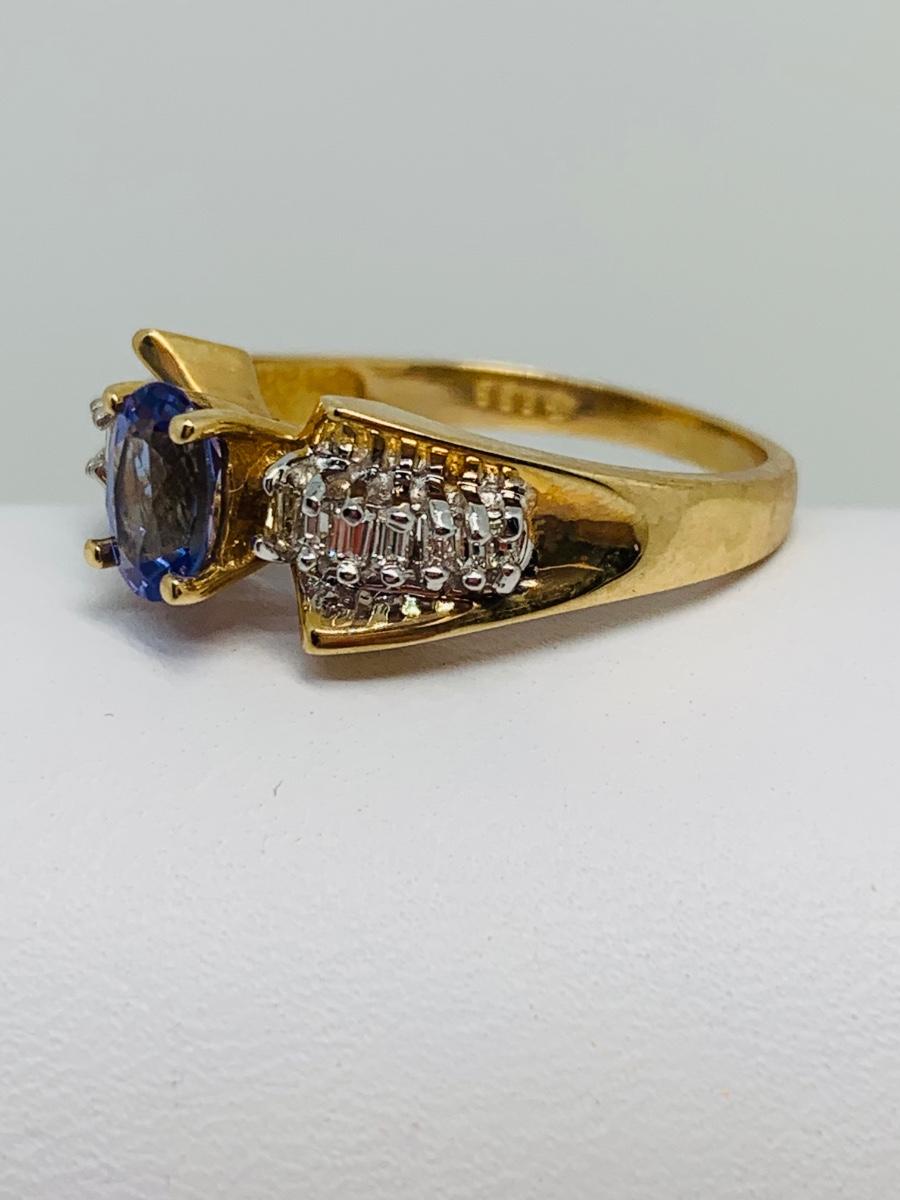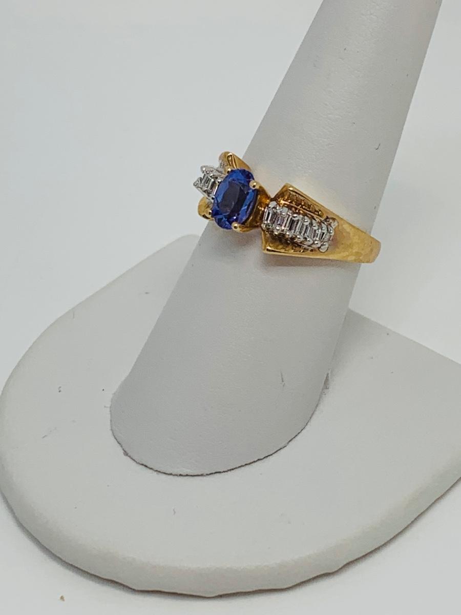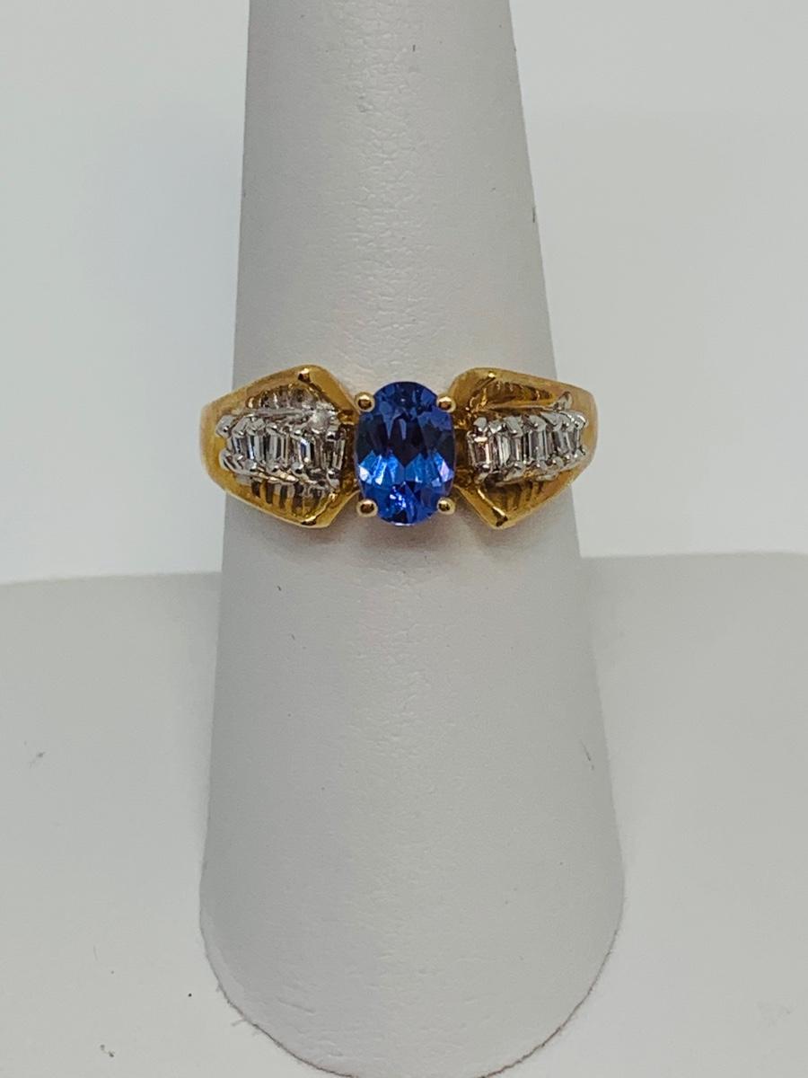 LOT 121: Tanzanite & Diamond Size 8 14K Gold Ring - 4.35 gtw