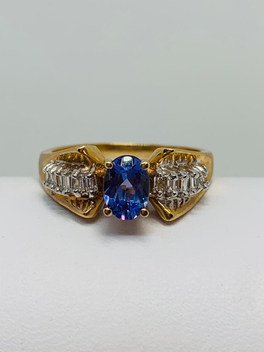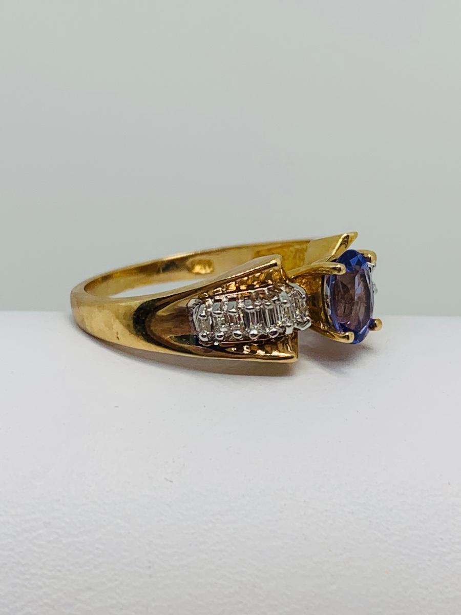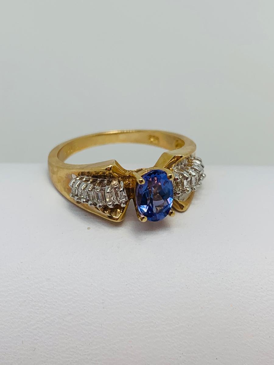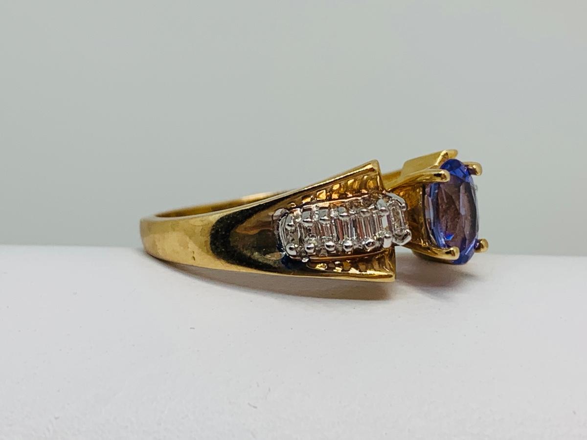 LOT 121: Tanzanite & Diamond Size 8 14K Gold Ring - 4.35 gtw