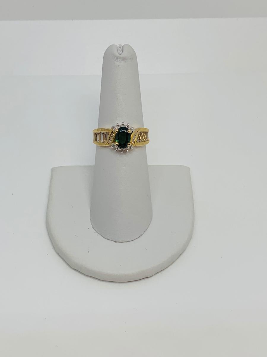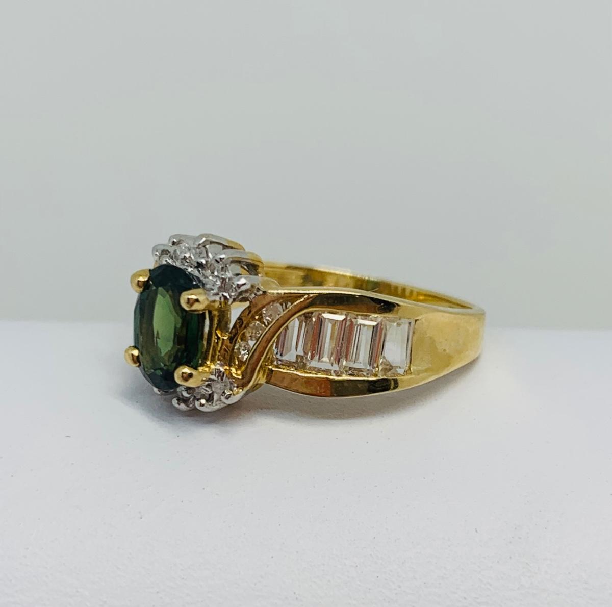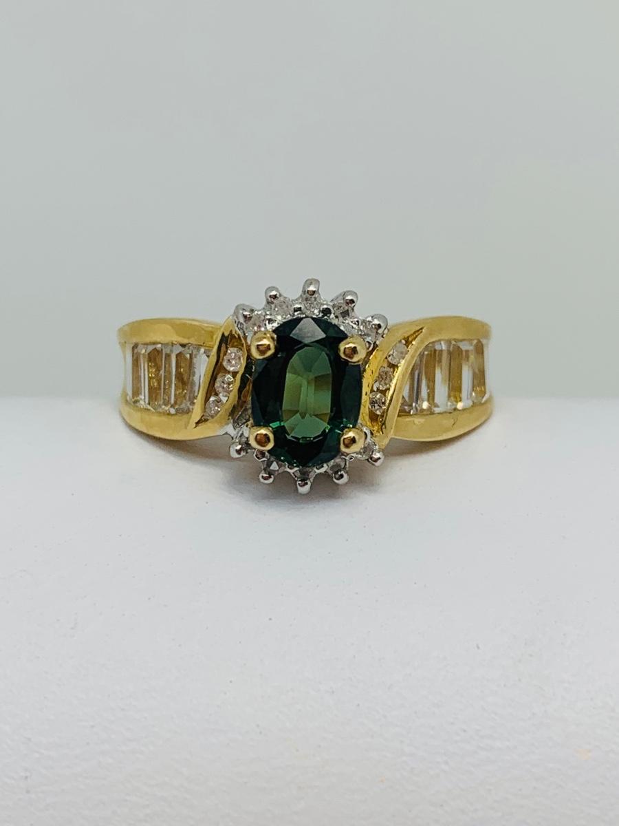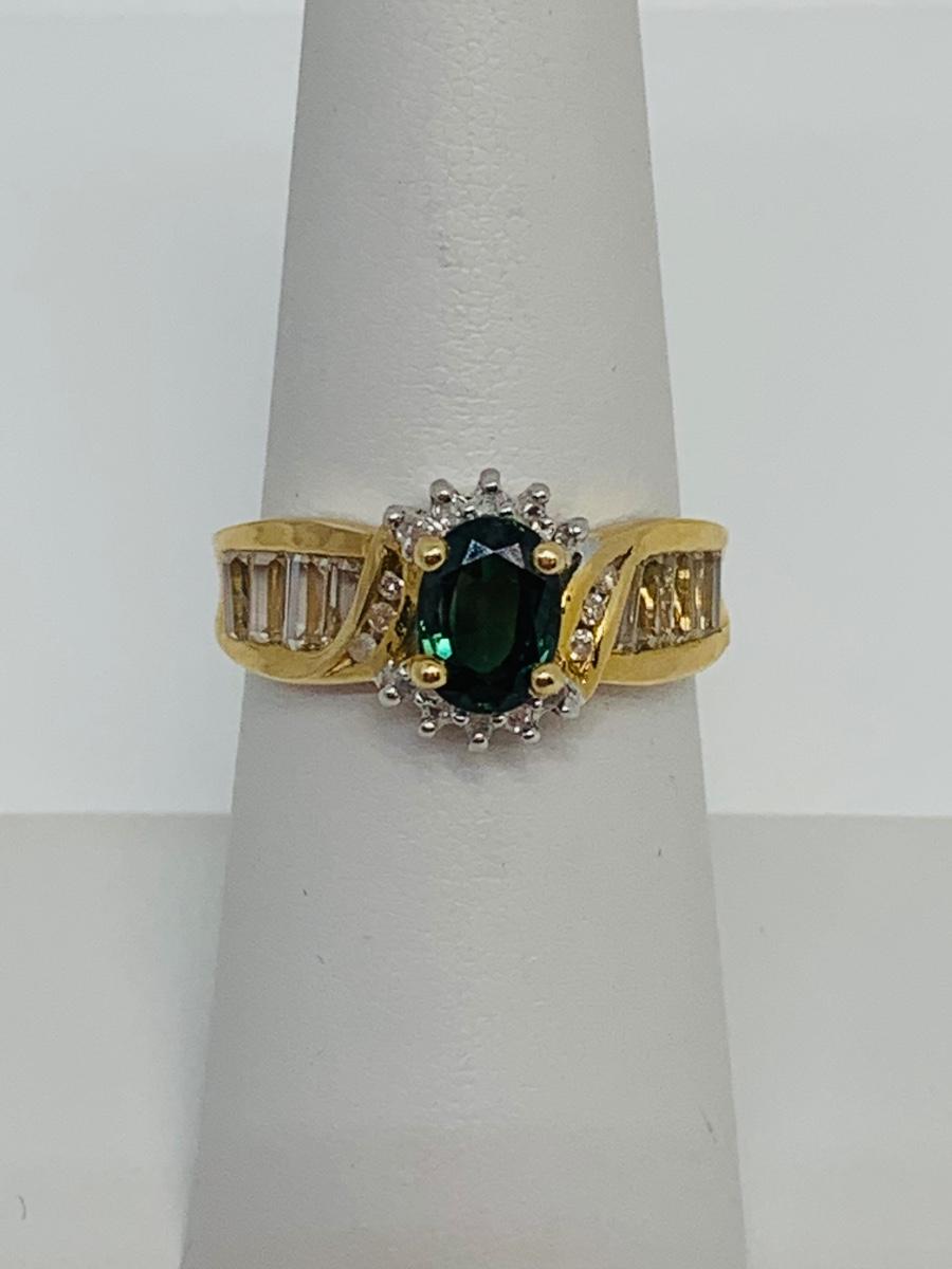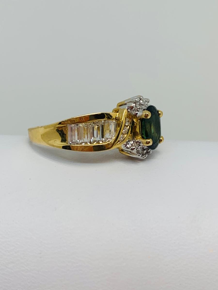 LOT 122: 14K Gold & Green Sapphire Ring - Size 7 - 3.92 gtw