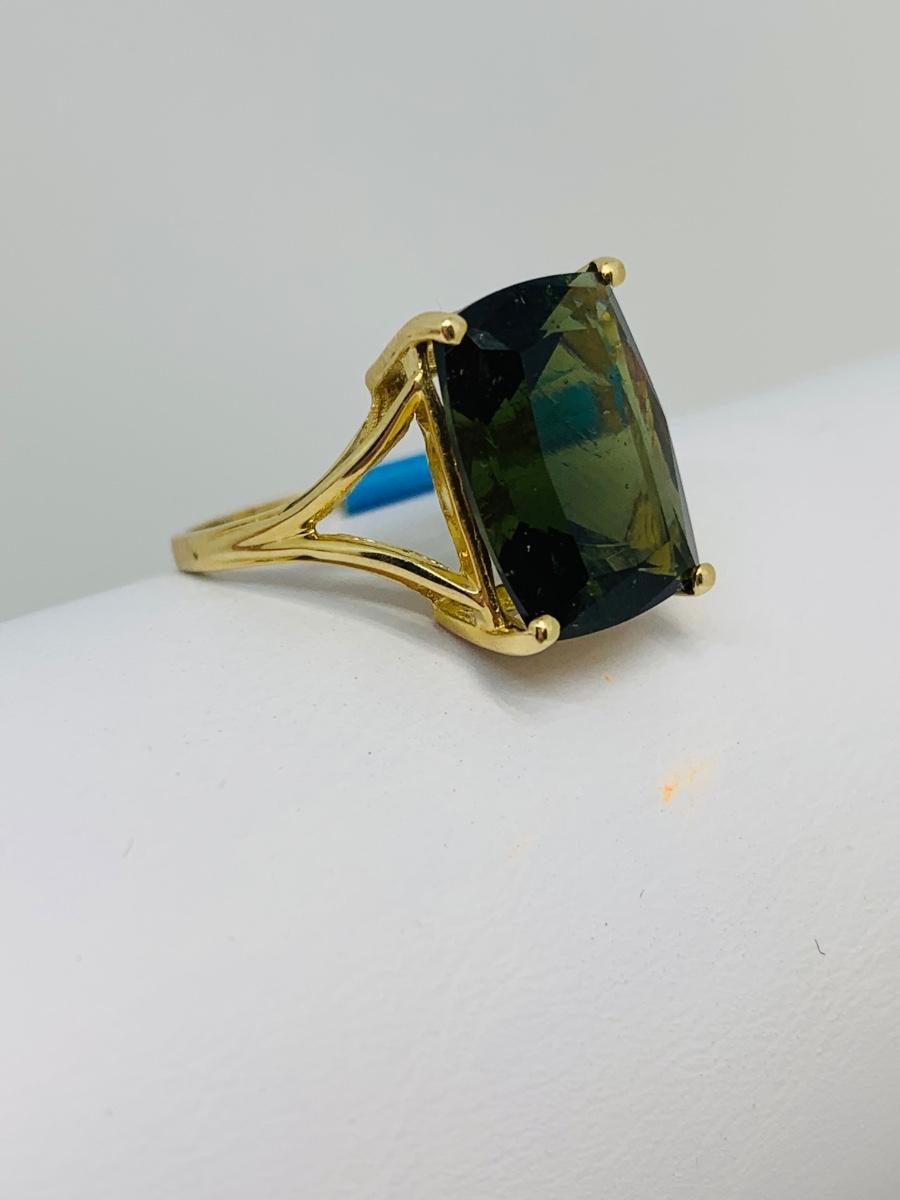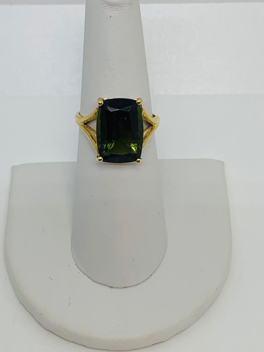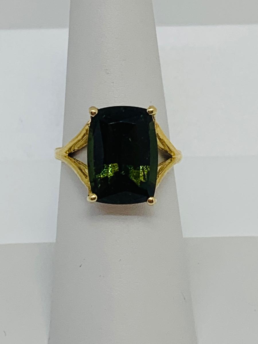 LOT 123: Green Tourmaline 14K Gold Ring - Size 7.5 - 3.87 gtw