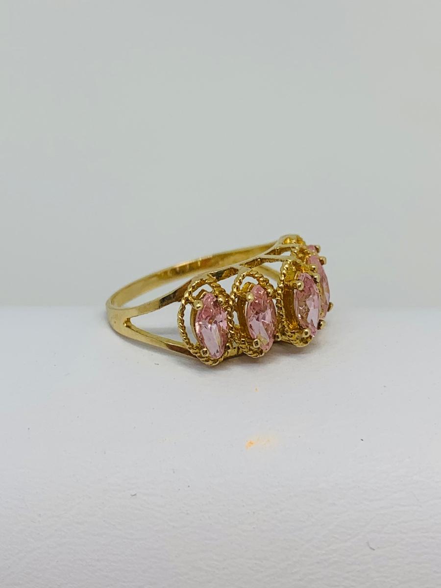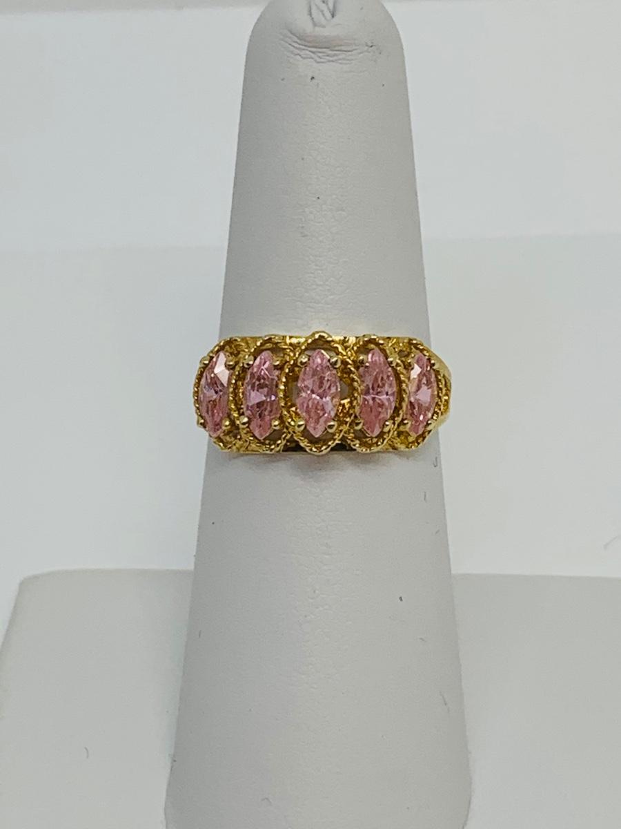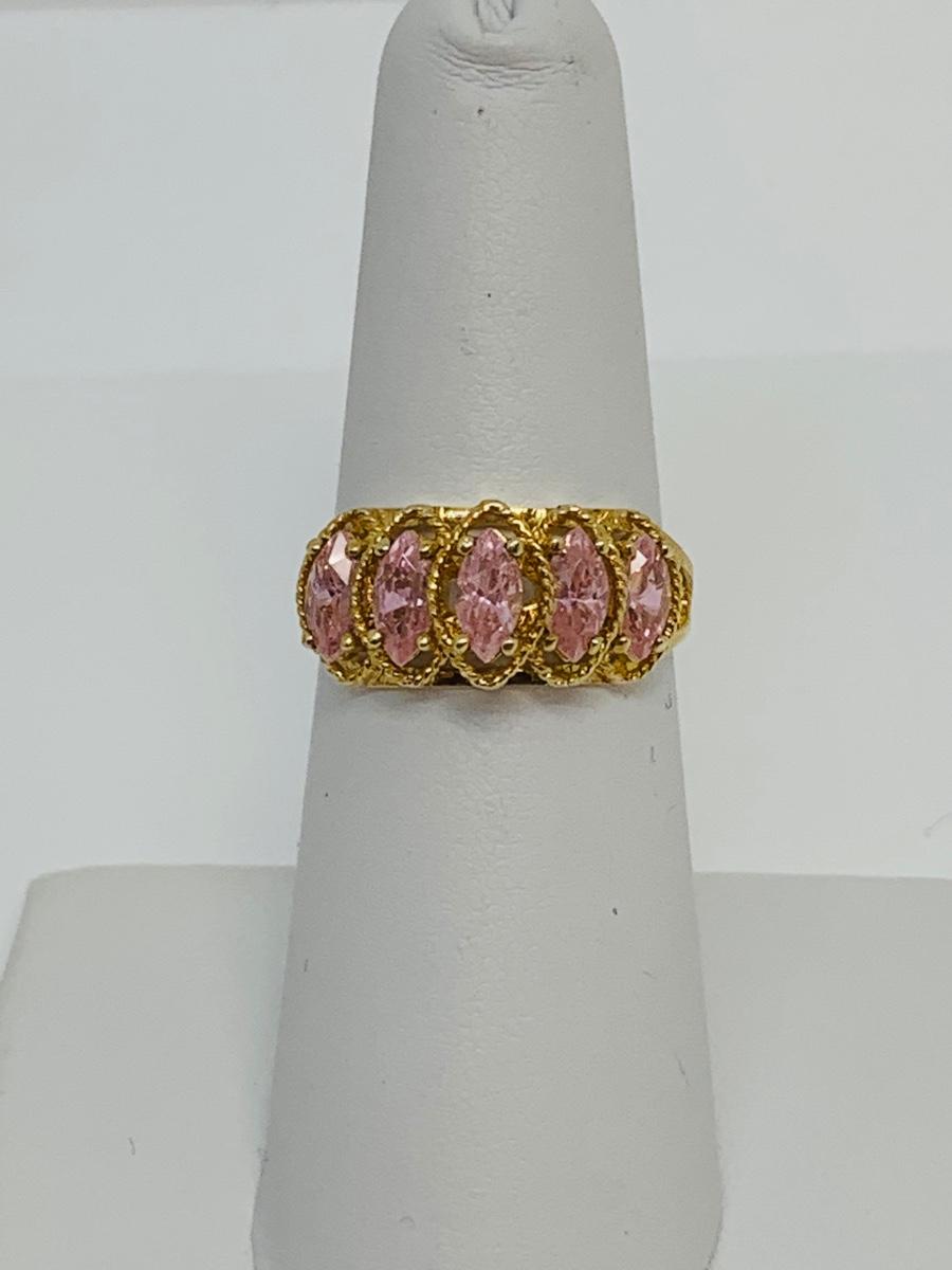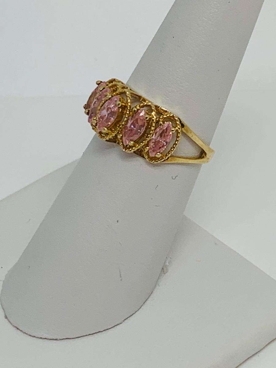 LOT 126: Marquis Cut Pink Sapphire Cluster Ring 10K Gold - Size 7 - 2.62 gtw