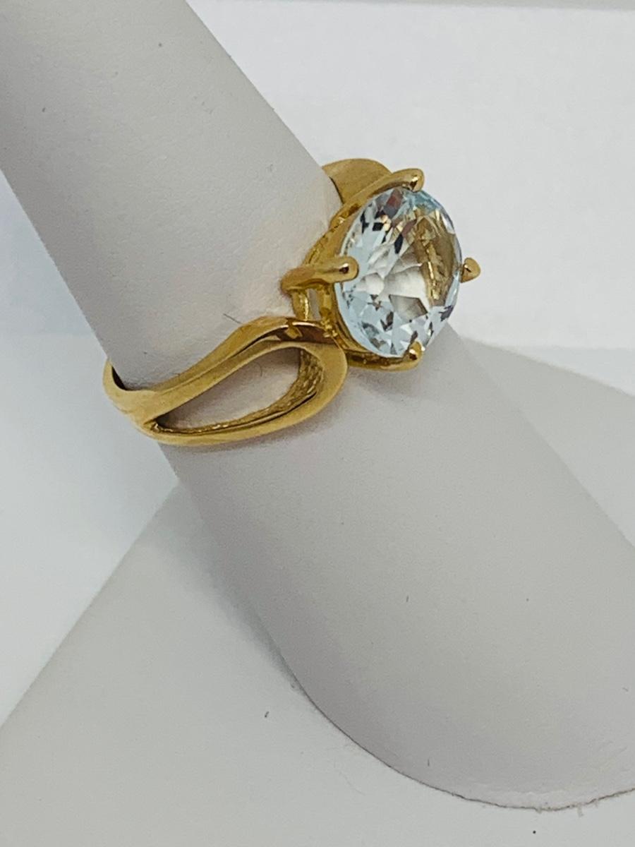 LOT 127: Blue Topaz 14K Gold Size 7 Ring - 3.4 gtw