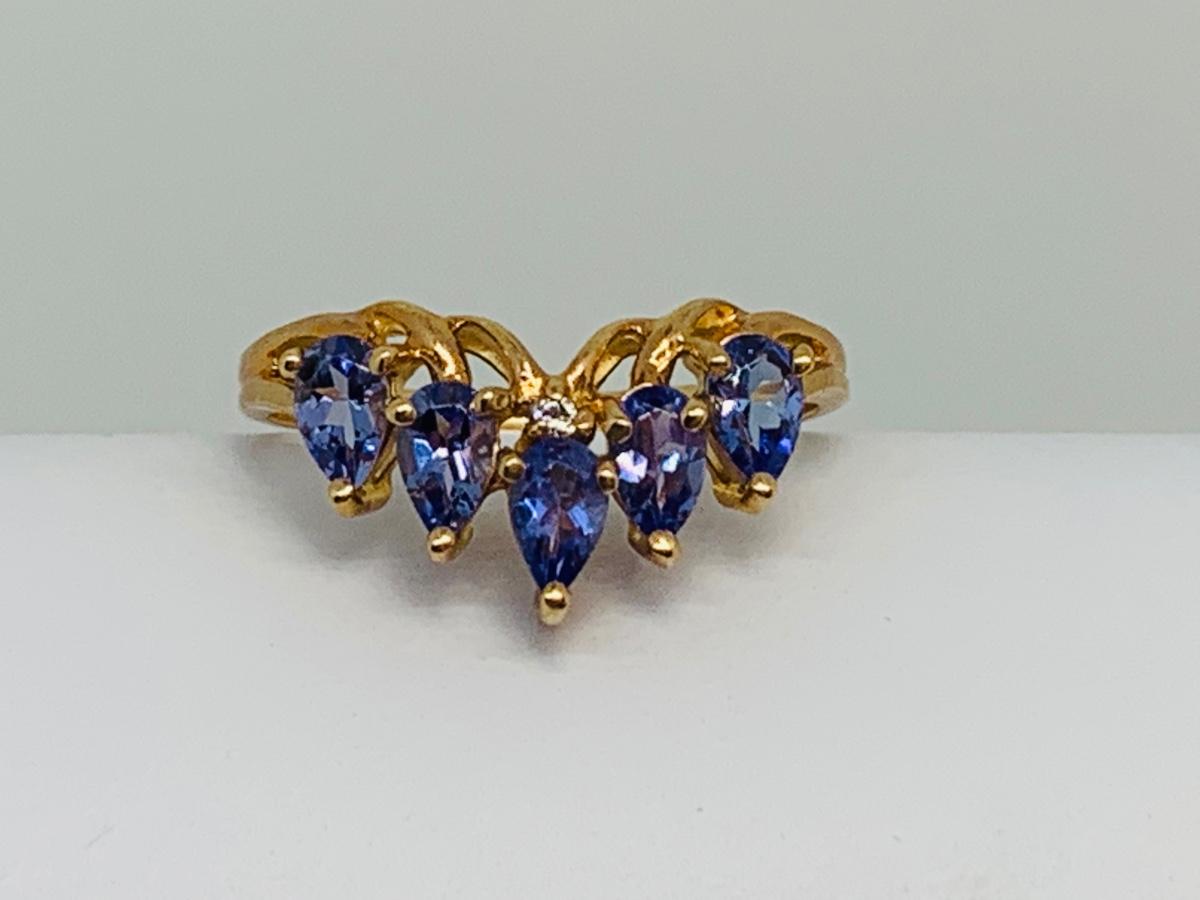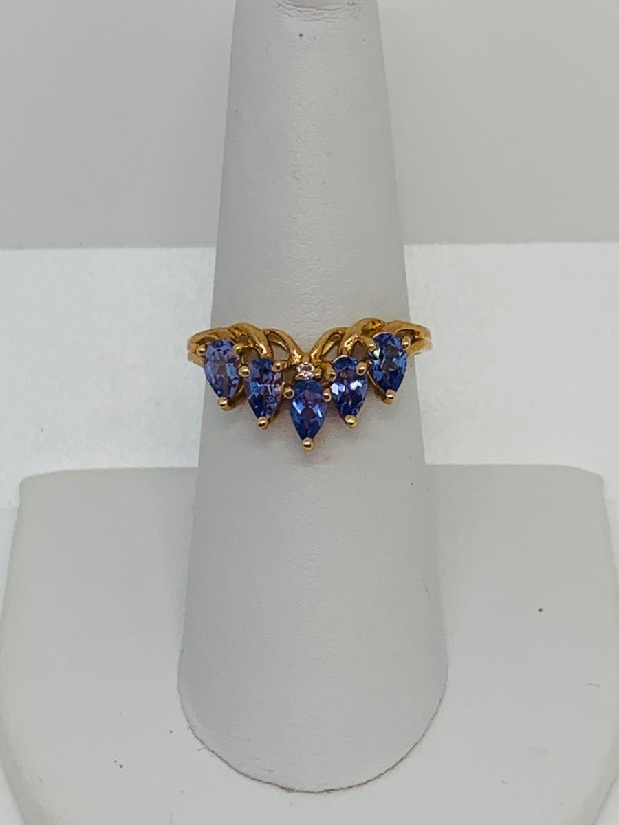 LOT 129: Tanzanite 14K Gold Size 8 Ring - 3.03 gtw