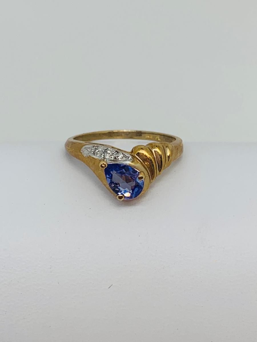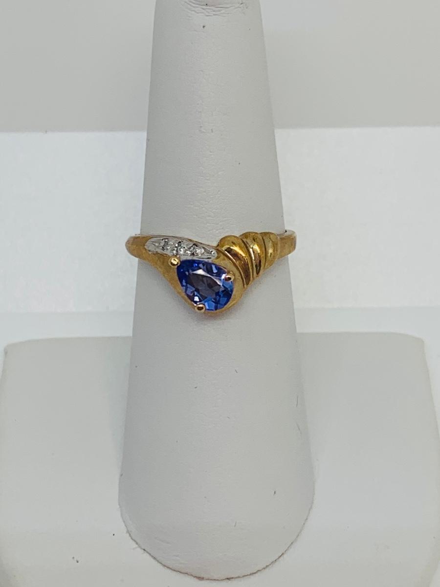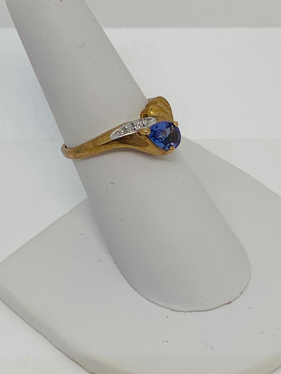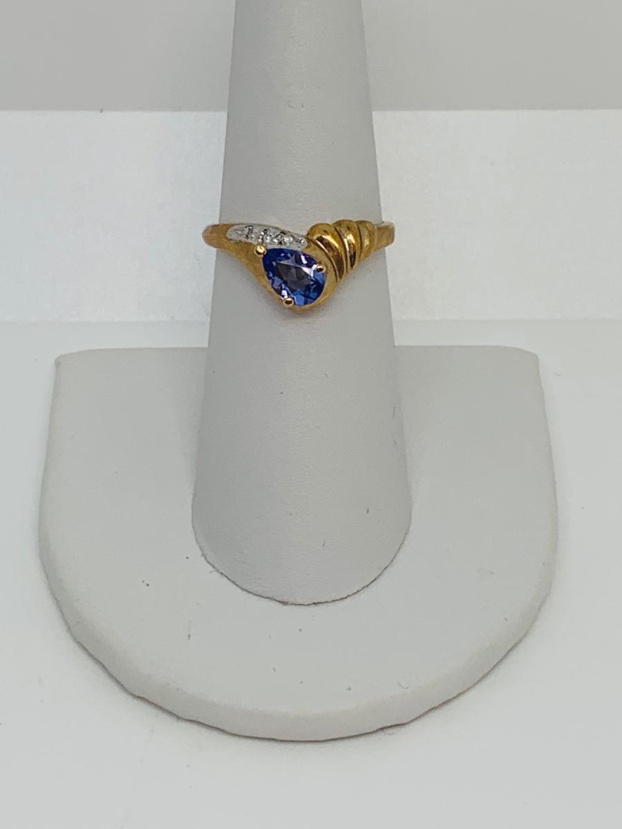 LOT 131: 14K Gold Tanzanite and Diamond Chip Size 7 Ring - 2.51 gtw