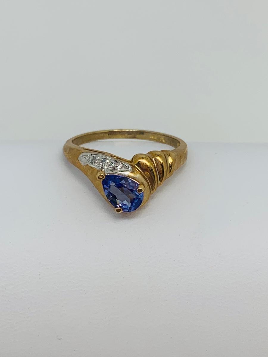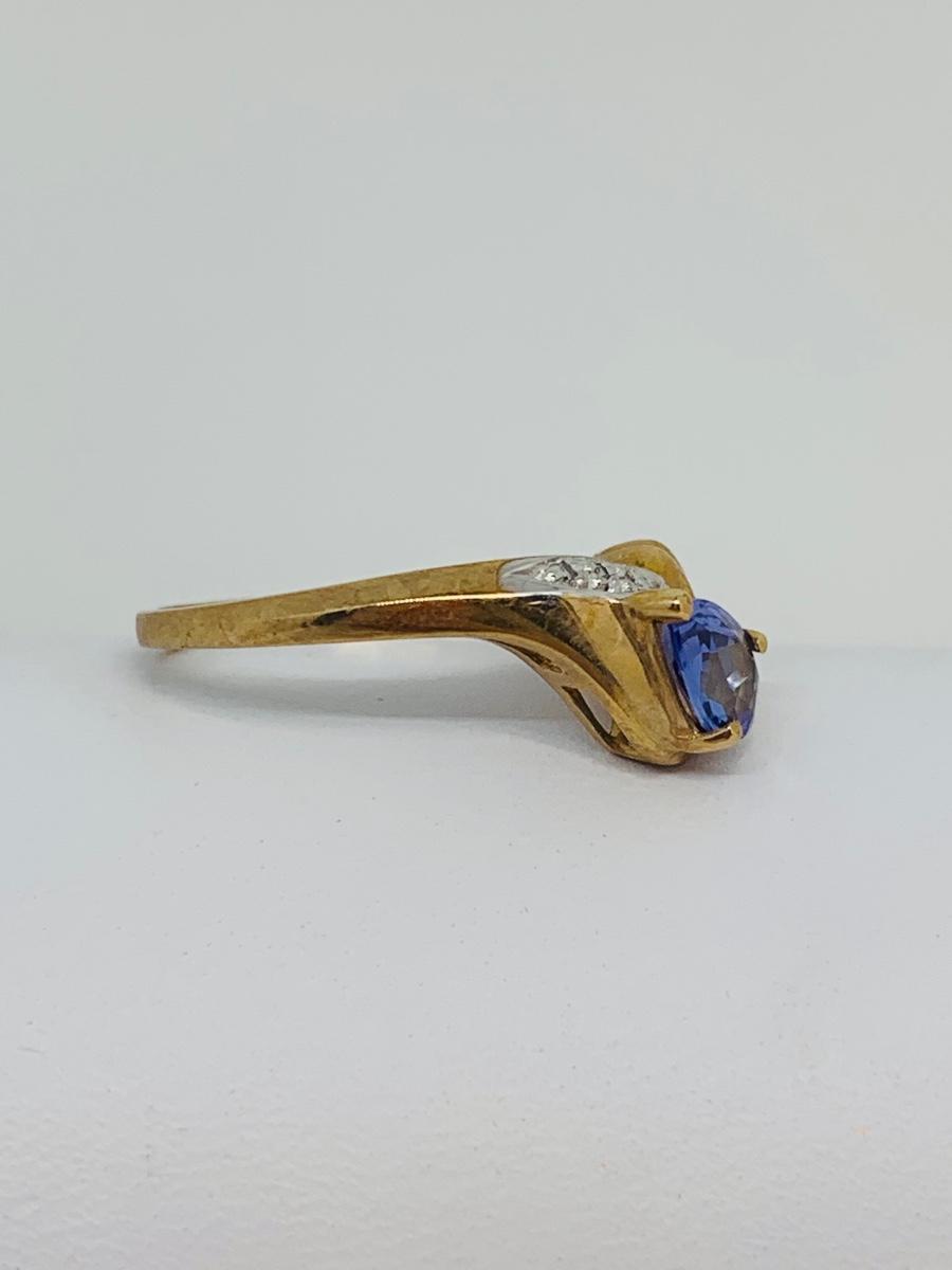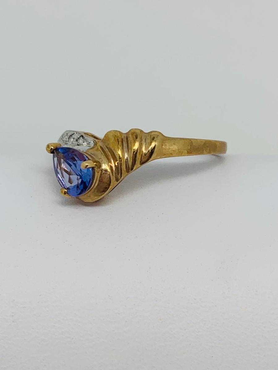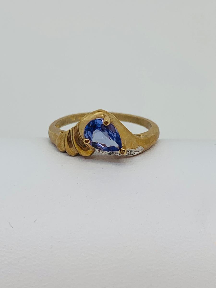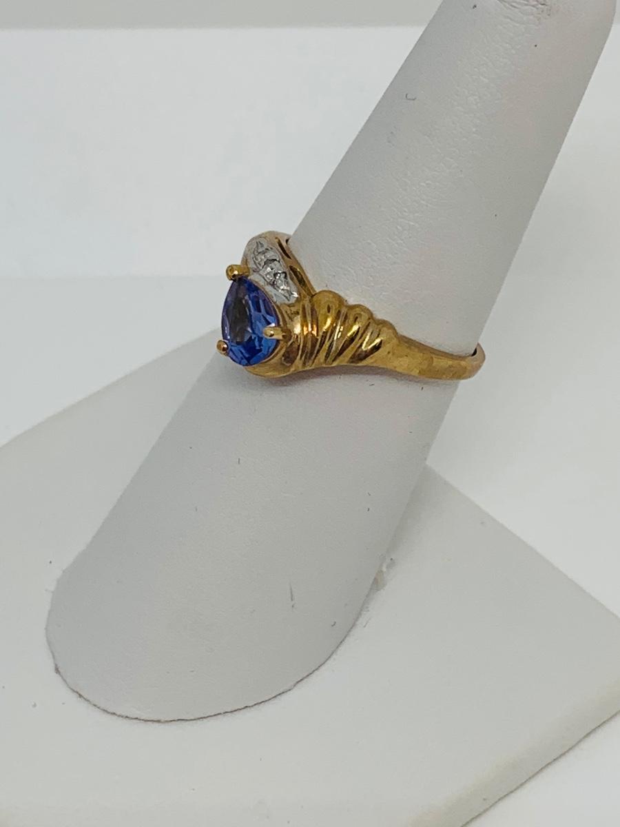 LOT 131: 14K Gold Tanzanite and Diamond Chip Size 7 Ring - 2.51 gtw