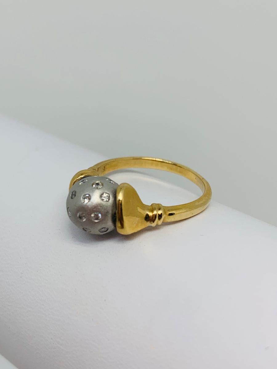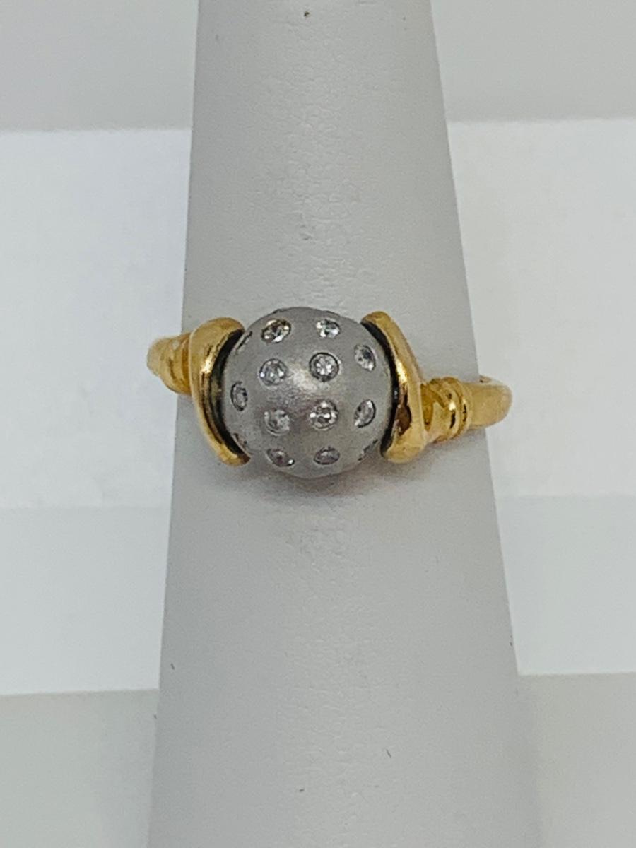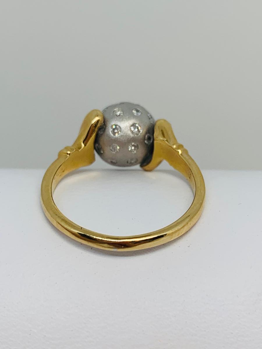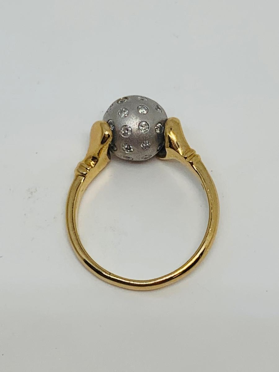 LOT 133: 18K Gold Grey Rolling Ball with Diamonds Ring - Size 6 - 4.62 gtw