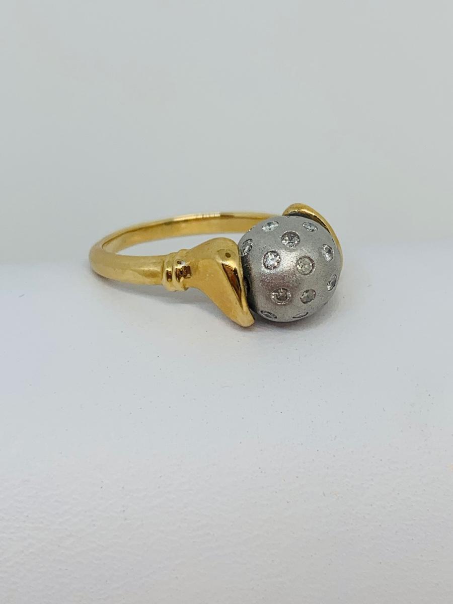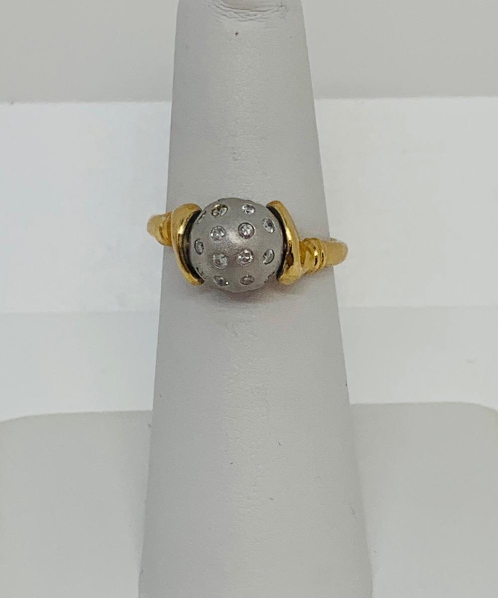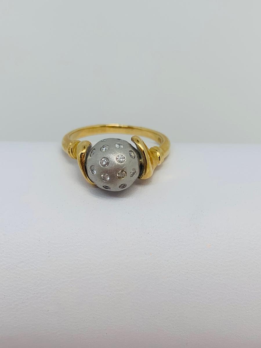 LOT 133: 18K Gold Grey Rolling Ball with Diamonds Ring - Size 6 - 4.62 gtw