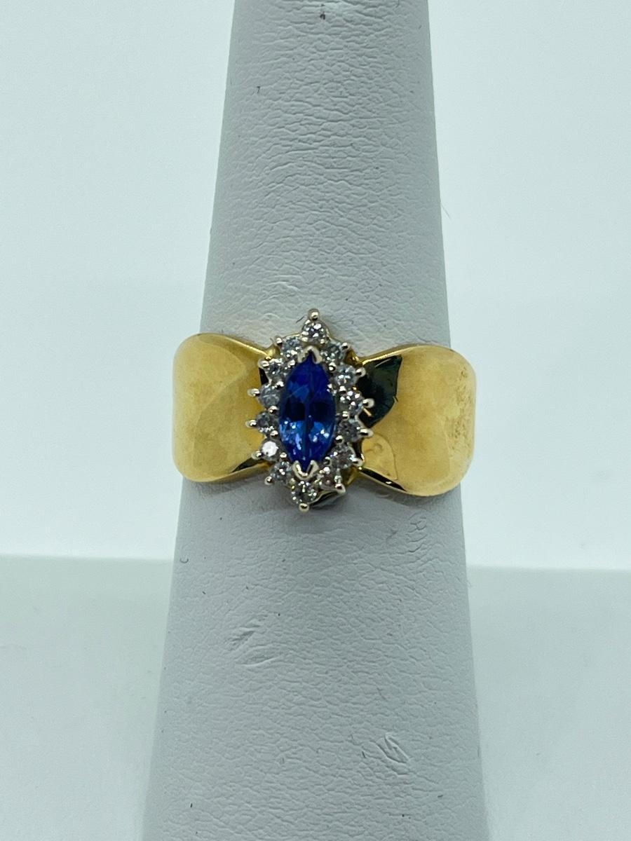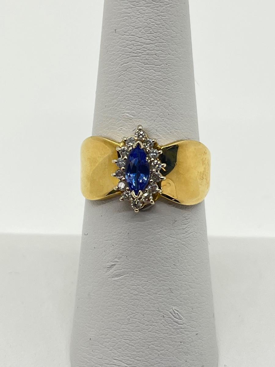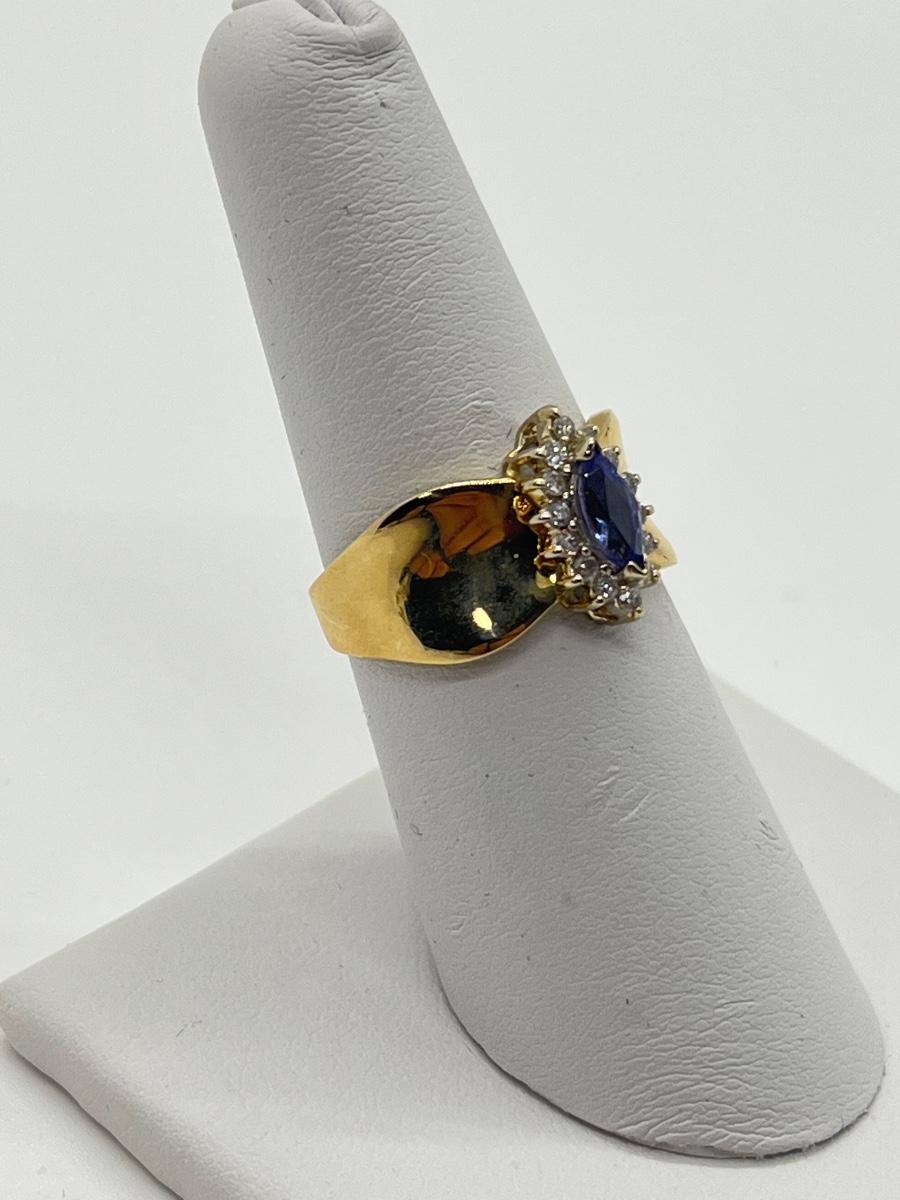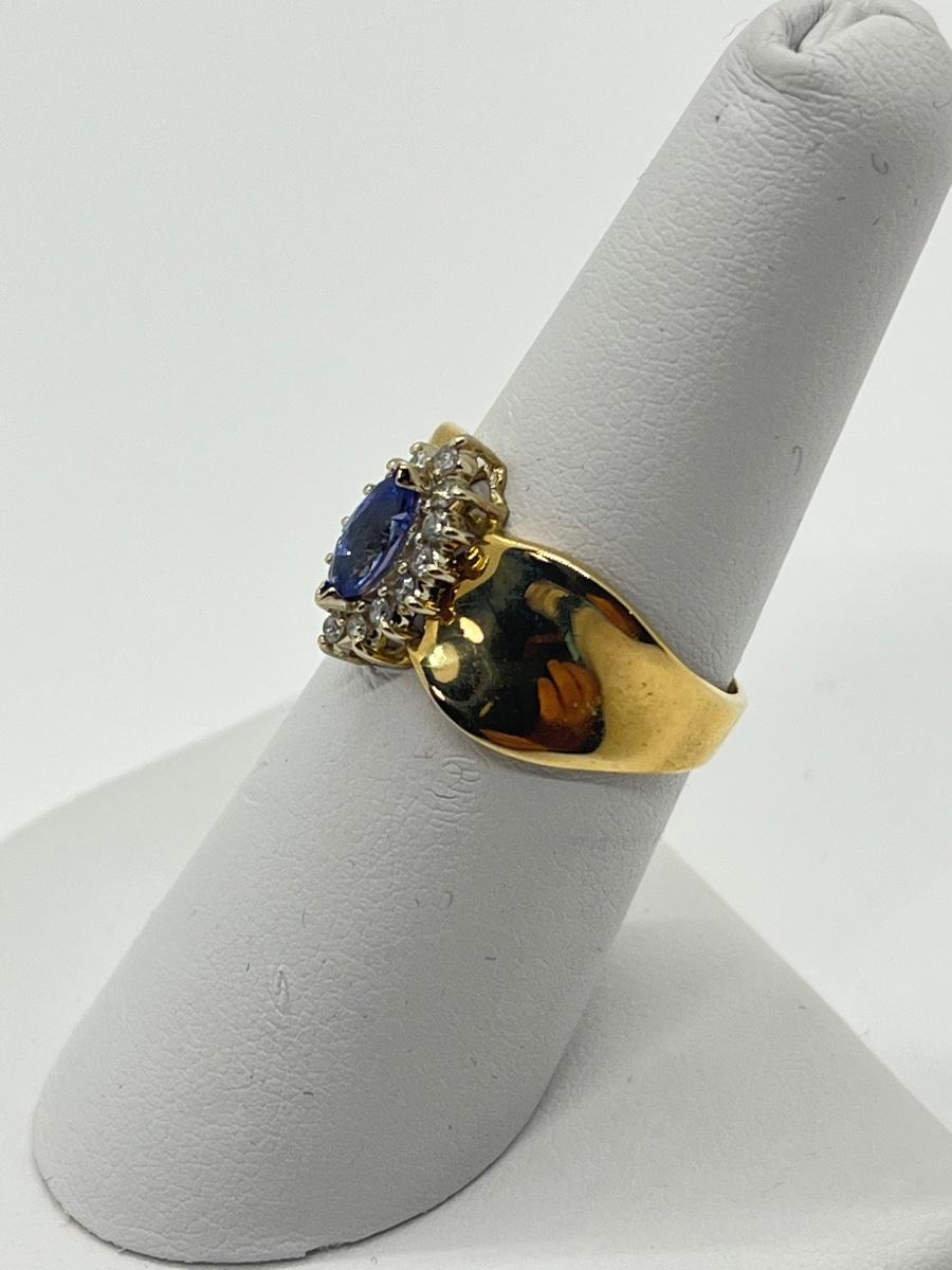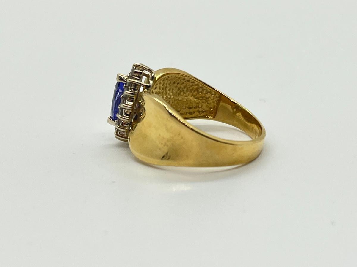 LOT 143: 14K Gold Nissko Marquis Cut Tanzanite w/ Halo of Diamonds Size 7 Ring - 3.59 gtw