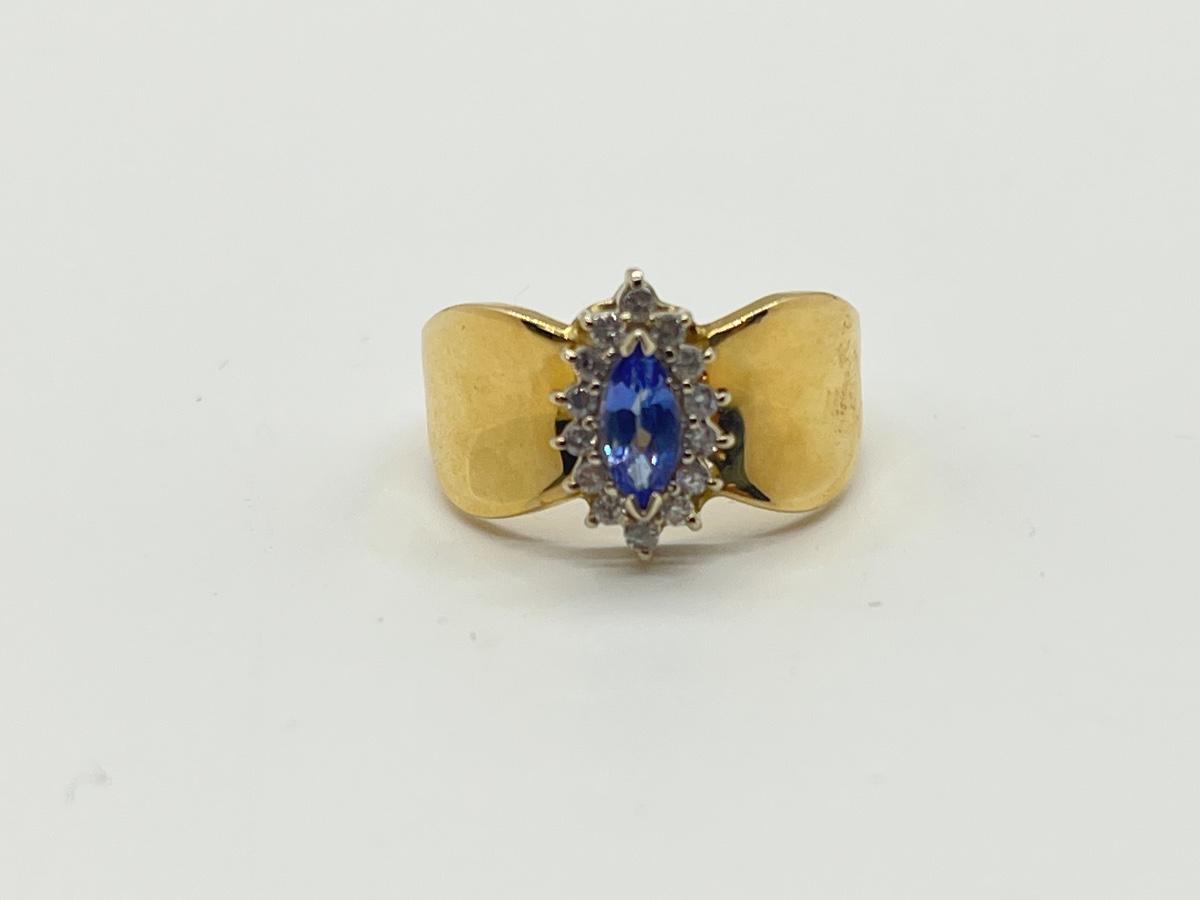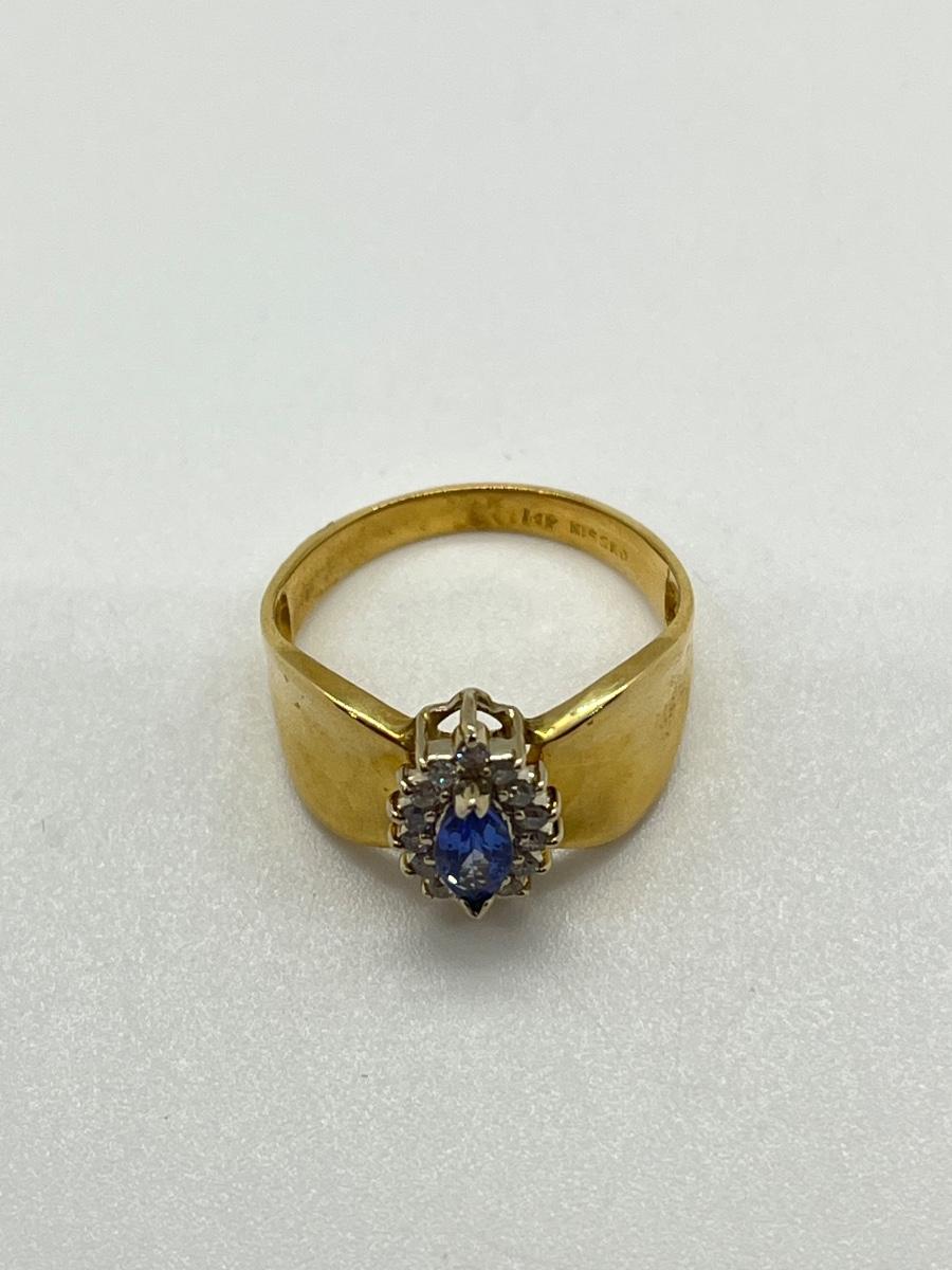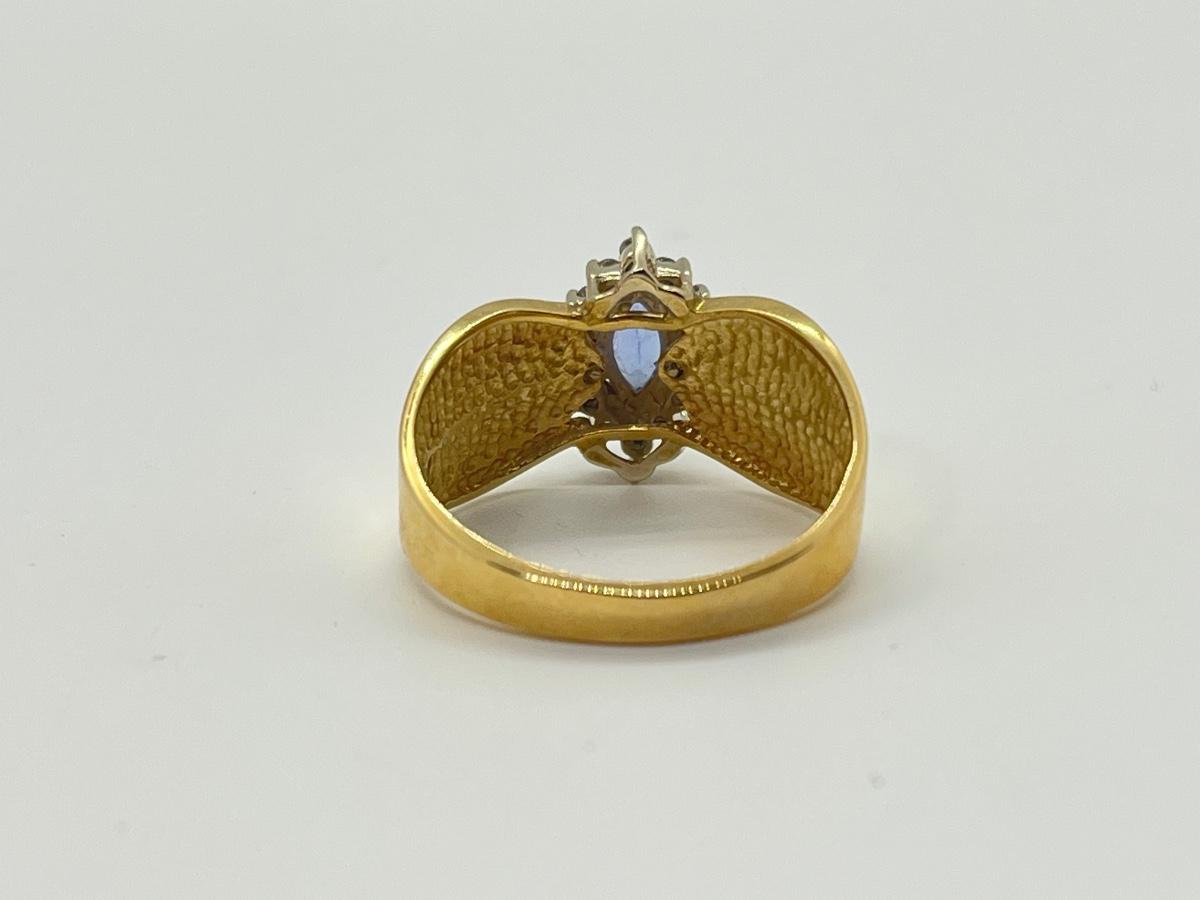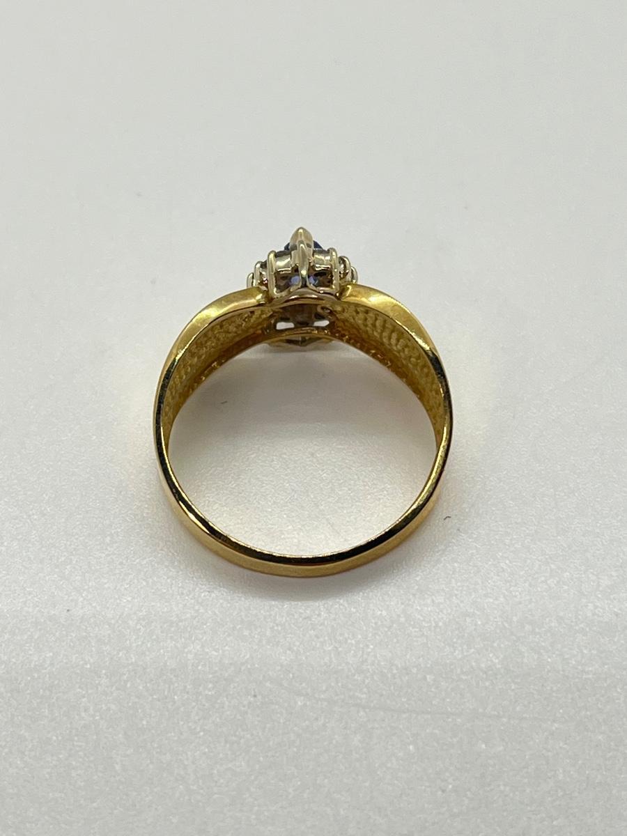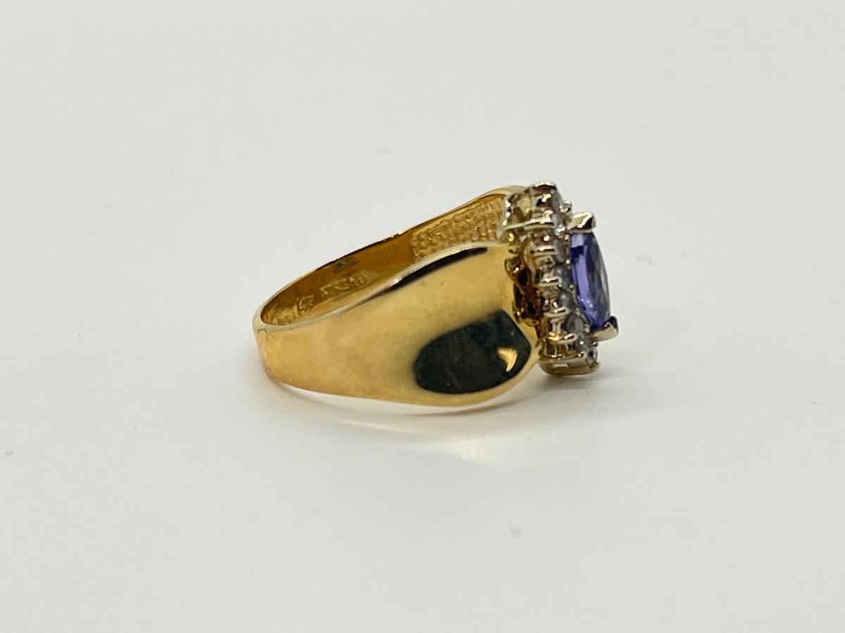 LOT 143: 14K Gold Nissko Marquis Cut Tanzanite w/ Halo of Diamonds Size 7 Ring - 3.59 gtw