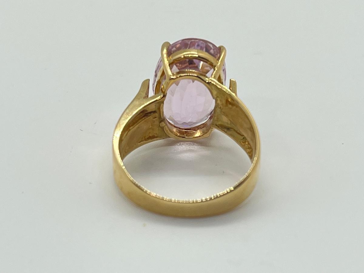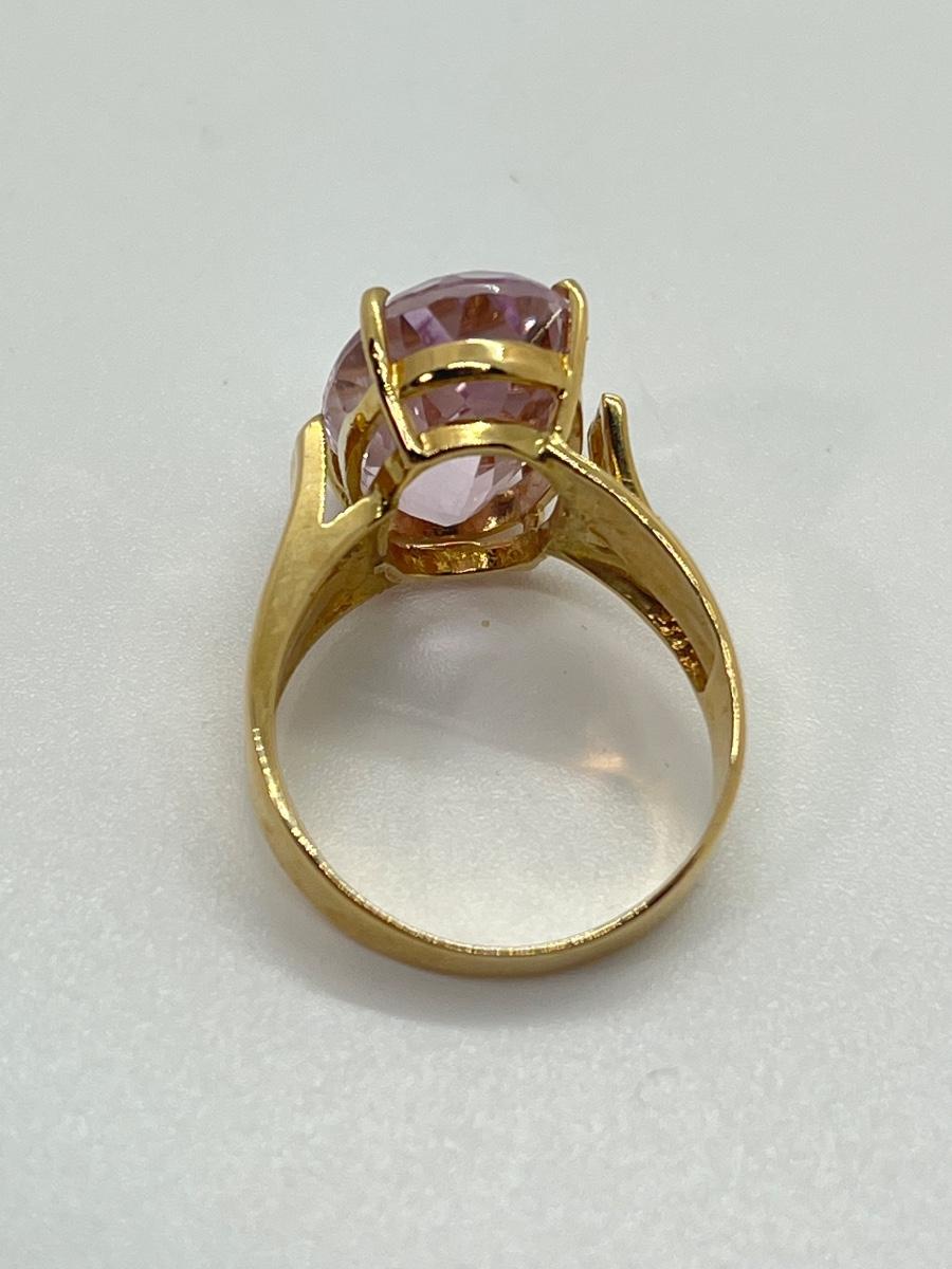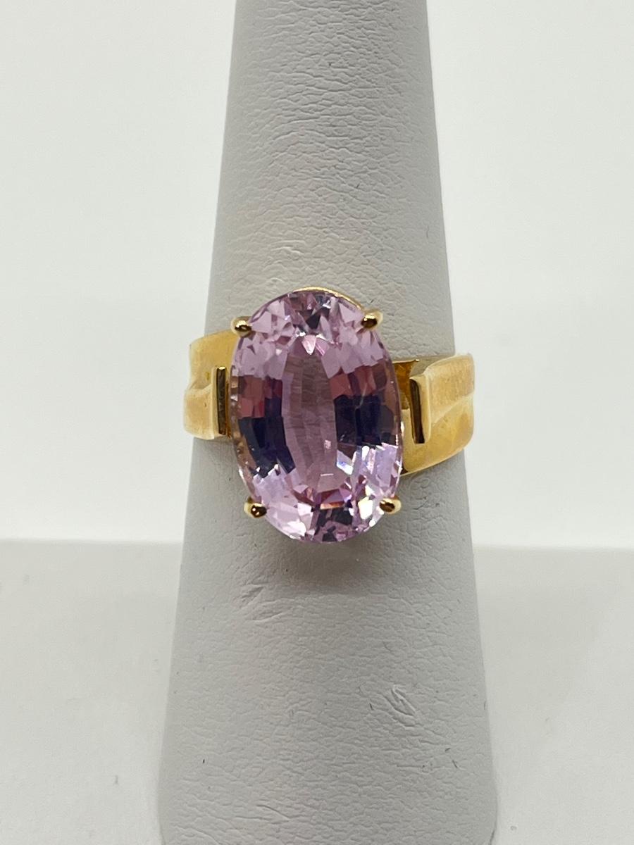 LOT 144: Large Pink/Purple Sapphire 14K Gold Ring - Size 7 - 5.8 gtw