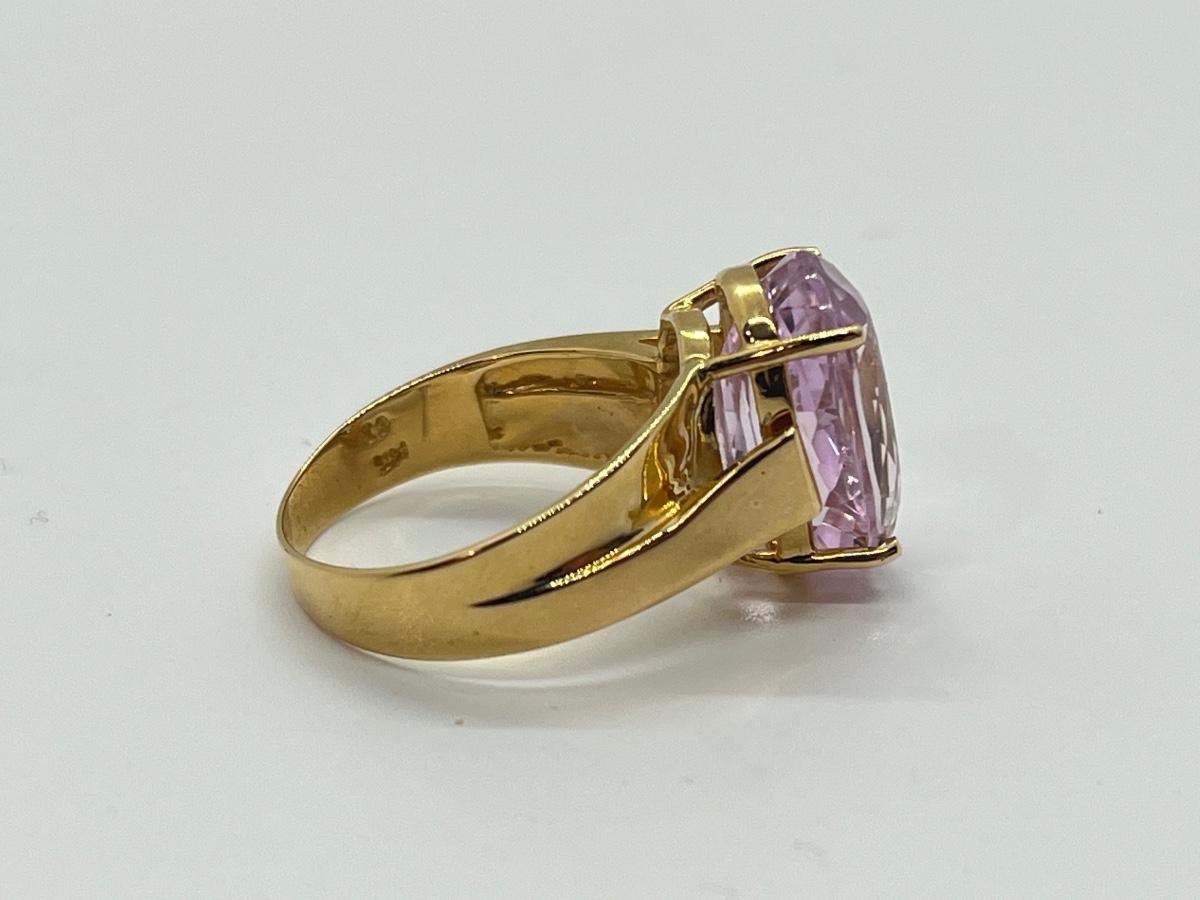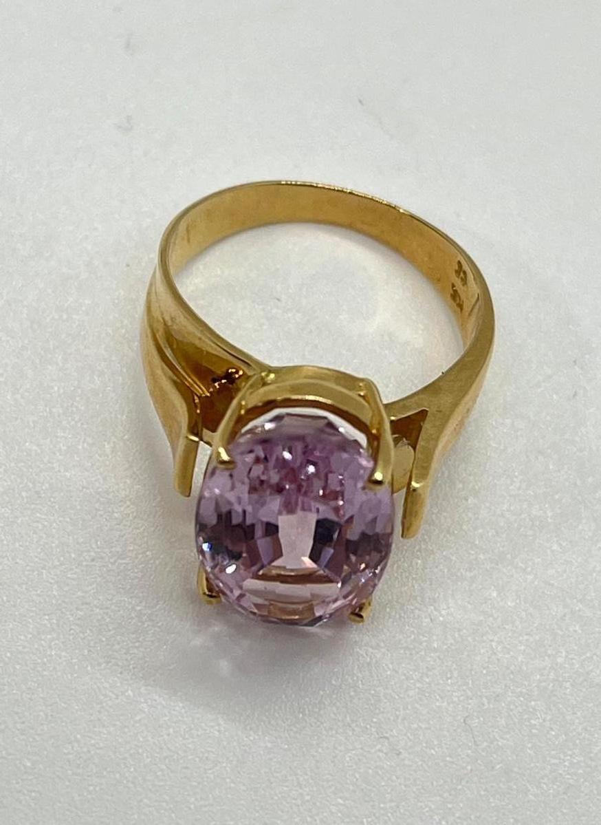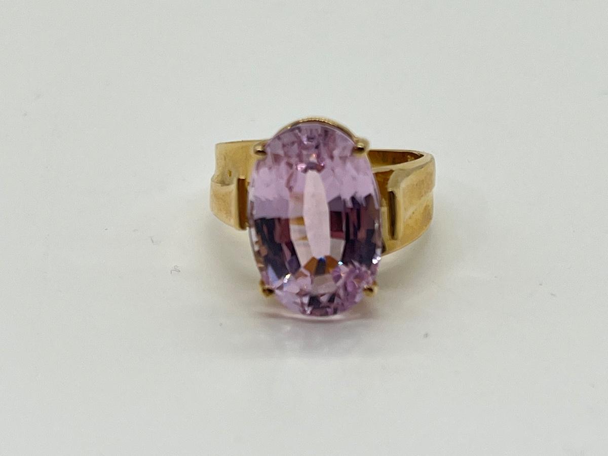 LOT 144: Large Pink/Purple Sapphire 14K Gold Ring - Size 7 - 5.8 gtw