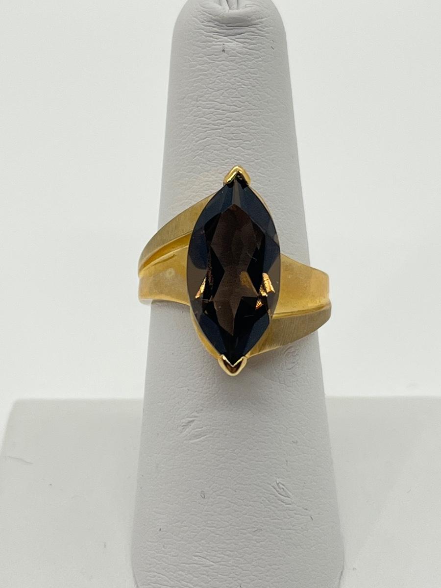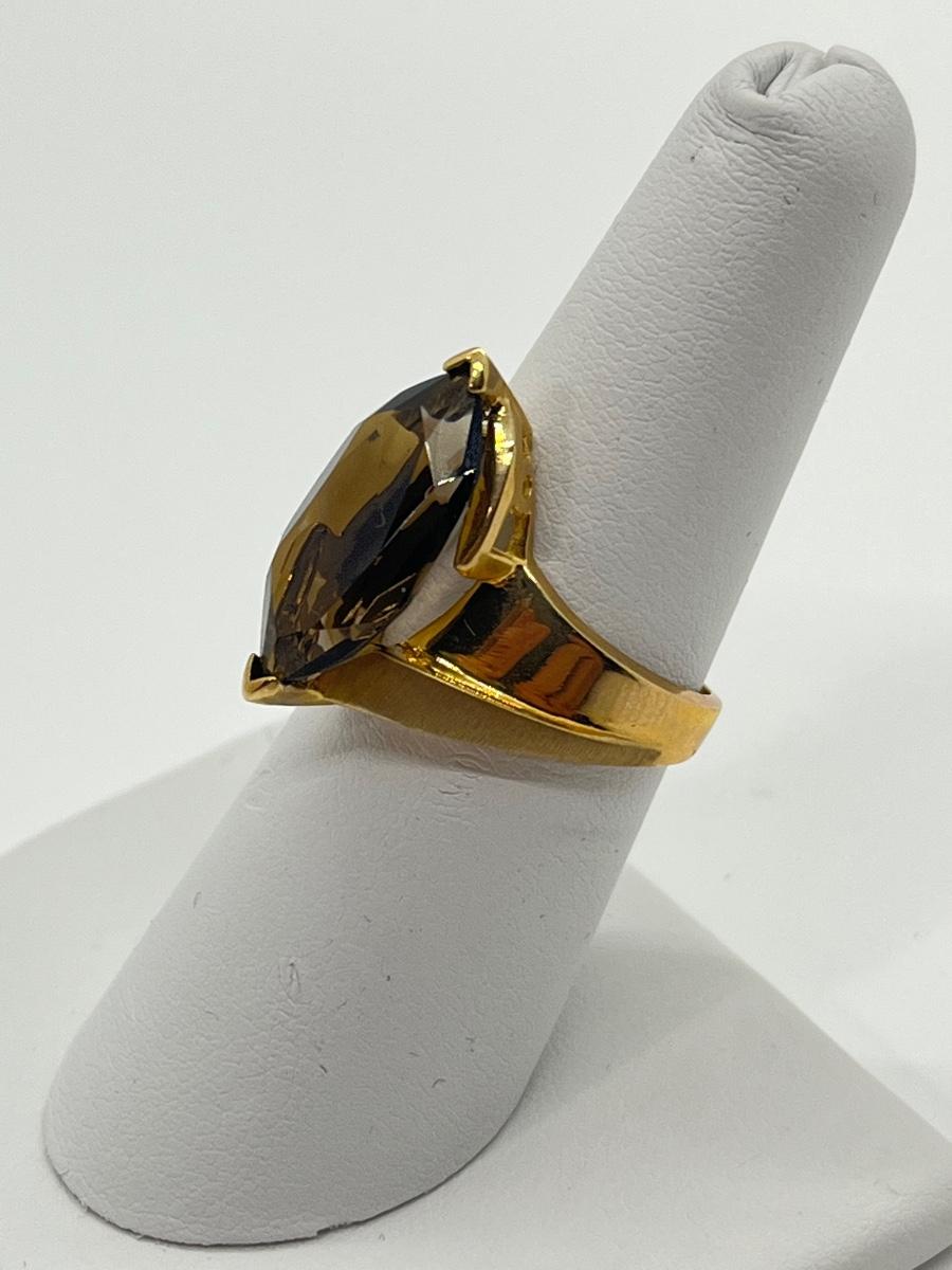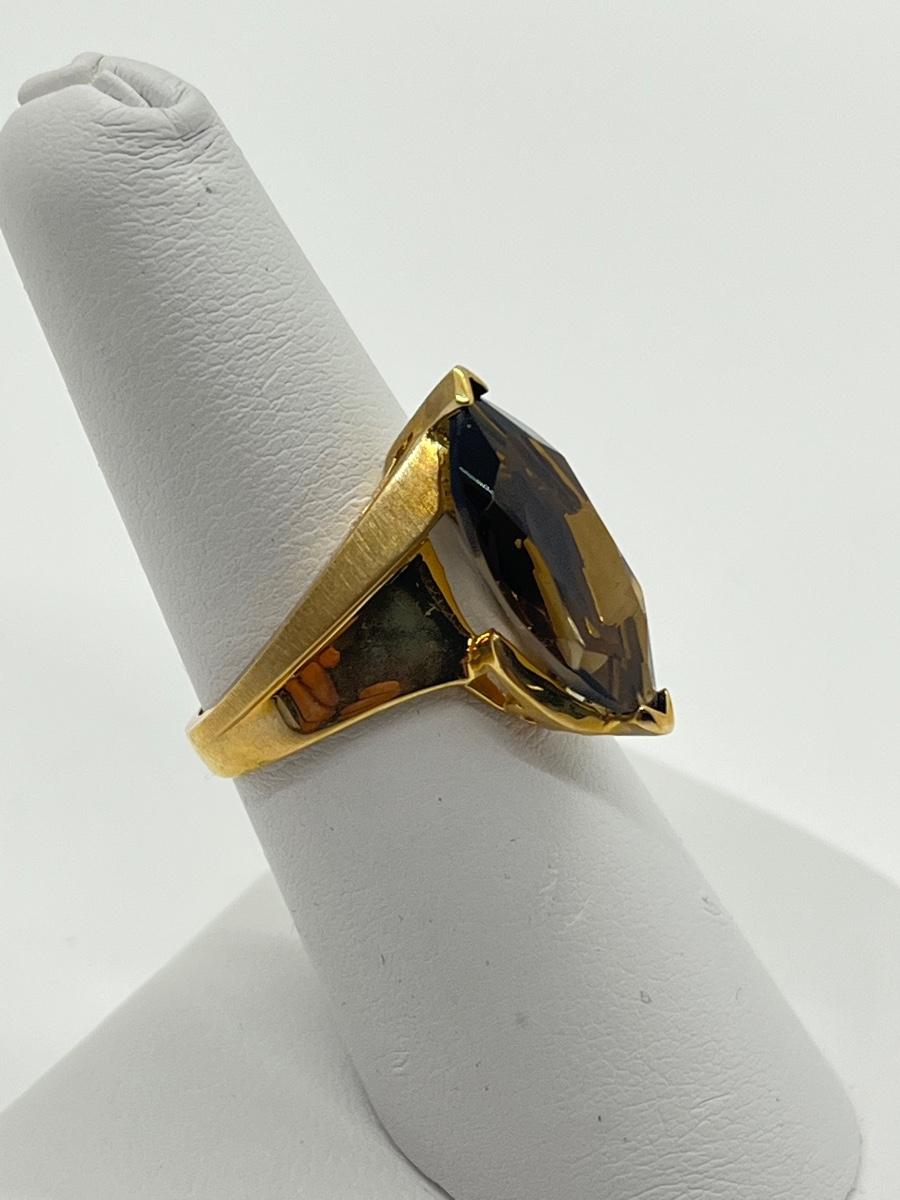 LOT 145: Large Marquis Cut Brown Topaz 10K Gold Size 7 Ring - 5.76 gtw