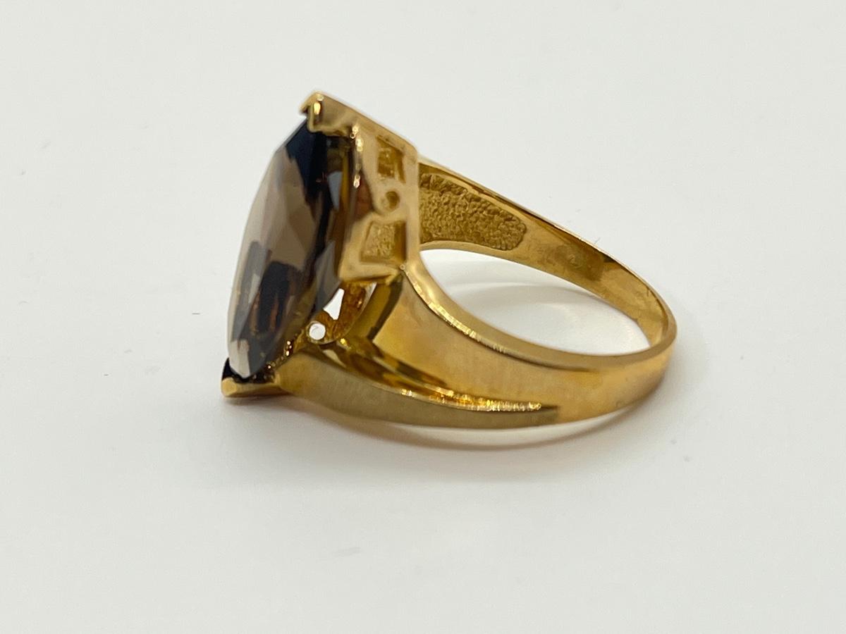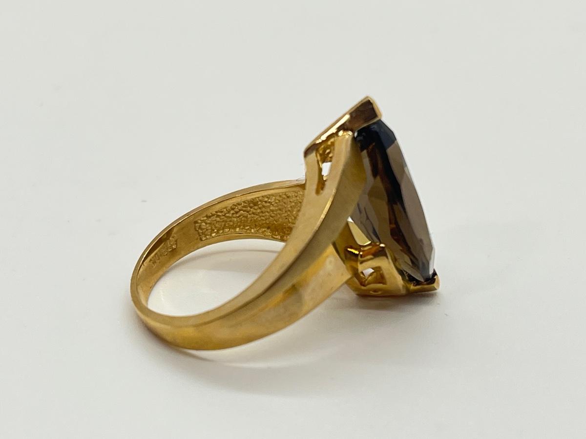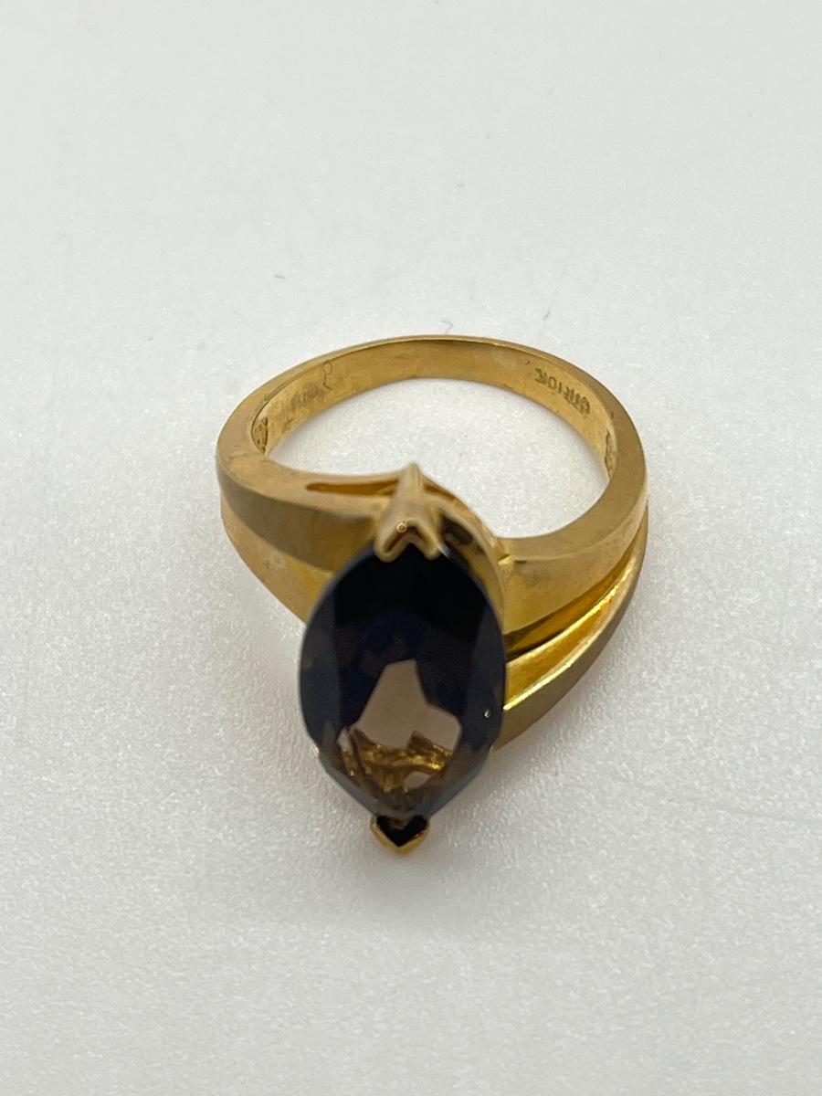 LOT 145: Large Marquis Cut Brown Topaz 10K Gold Size 7 Ring - 5.76 gtw