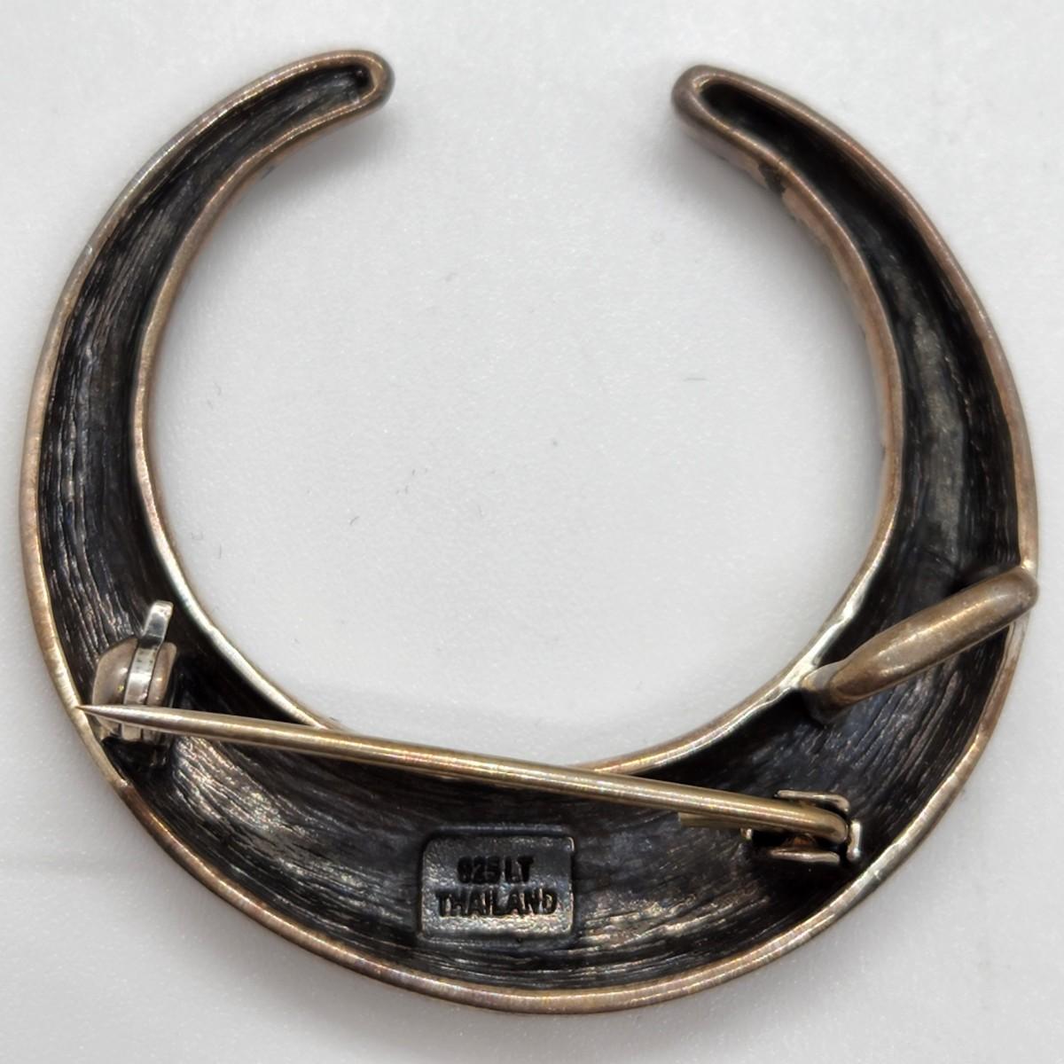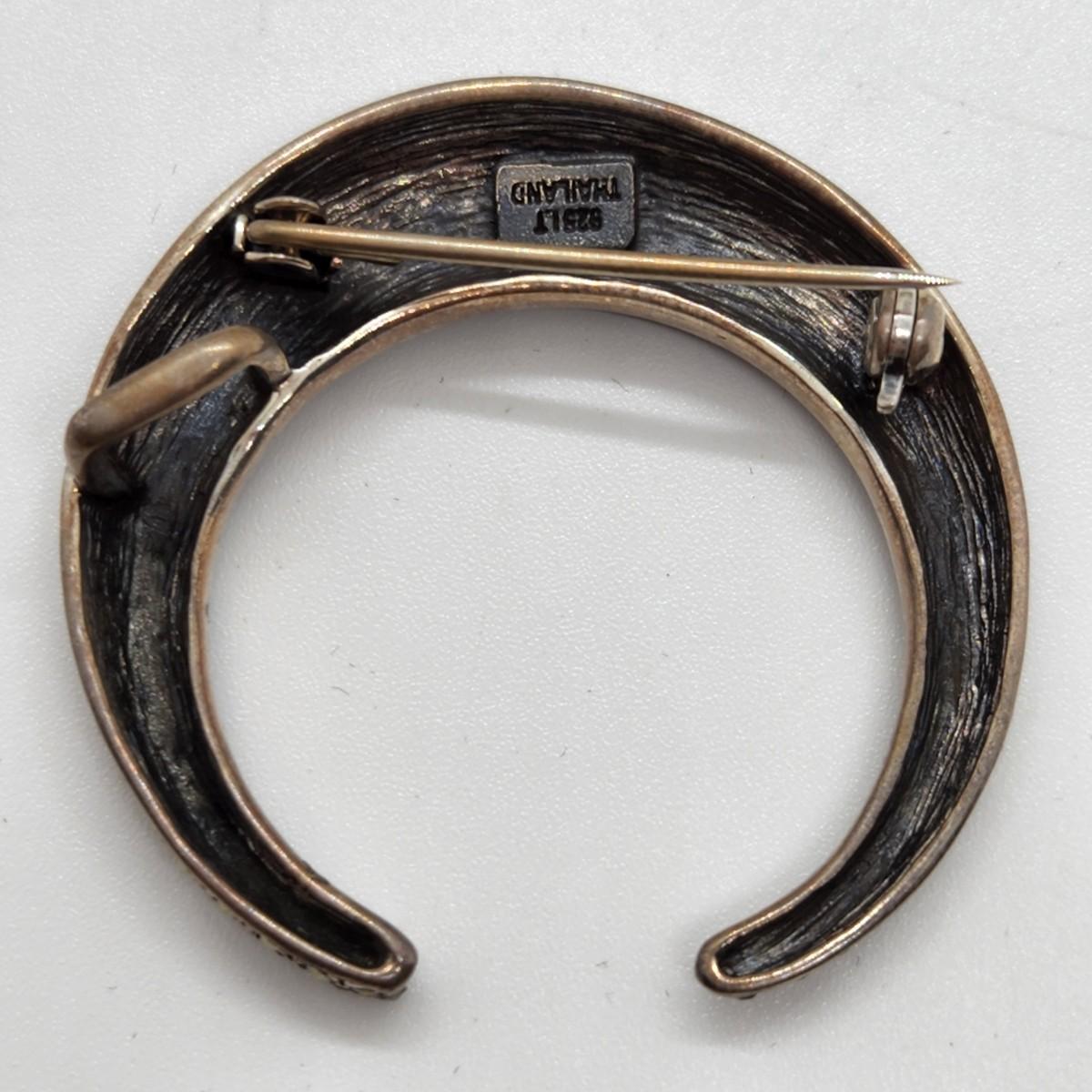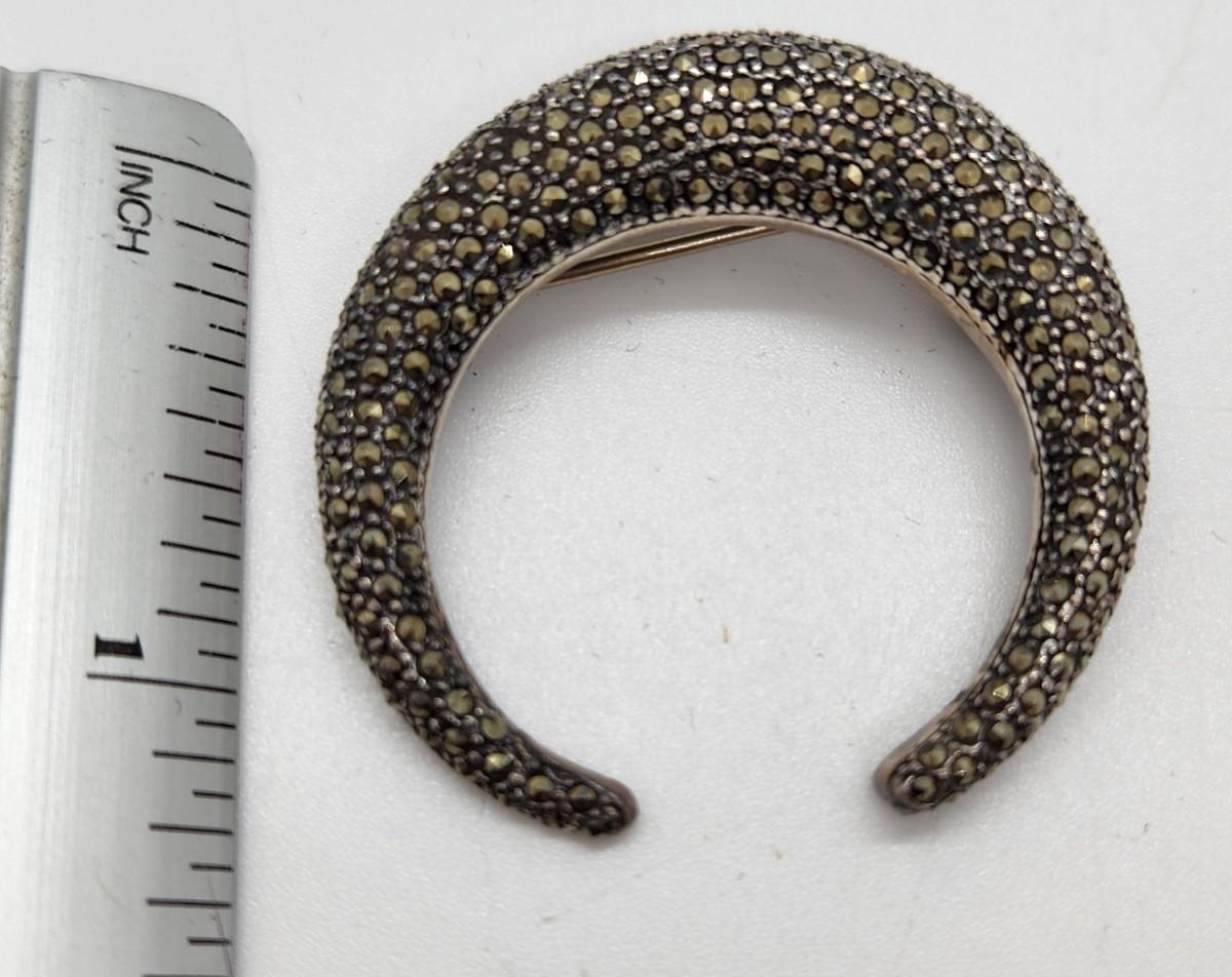 LOT 6RP: Vintage Sterling Suspicion Macasite Crescent Moon Brooch/Pin