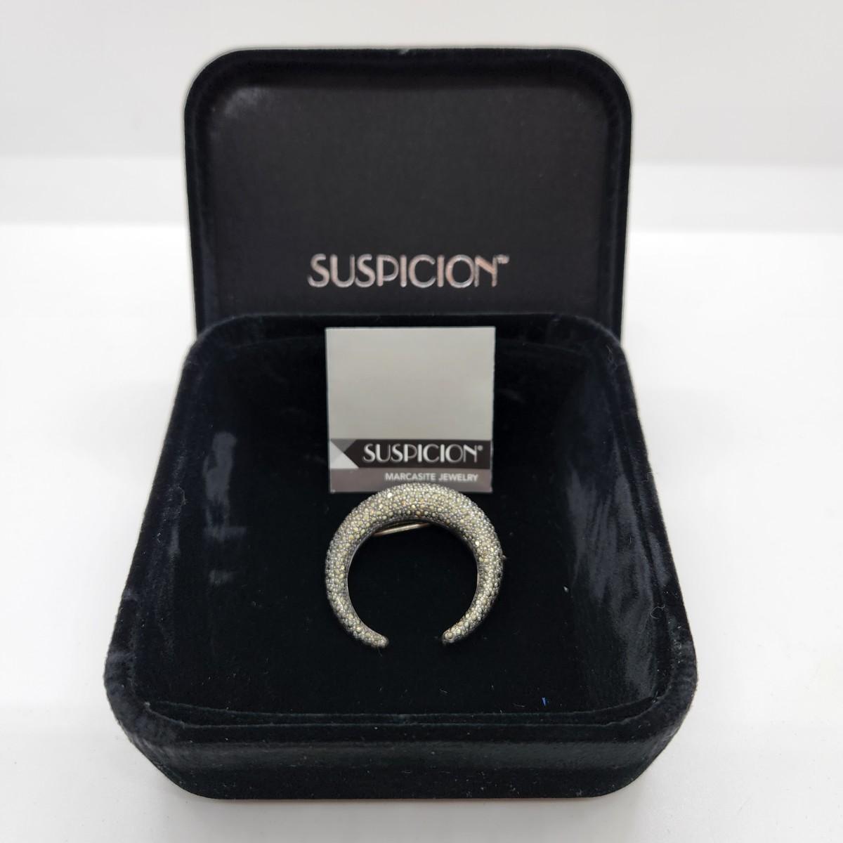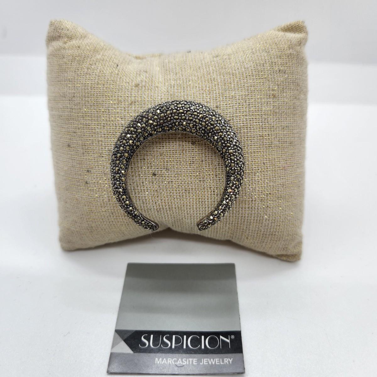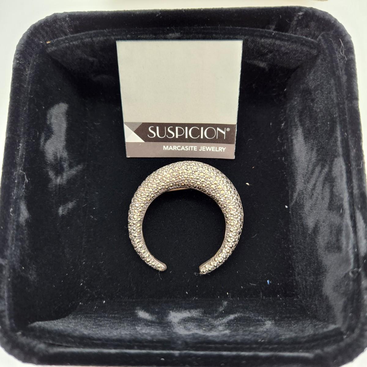 LOT 6RP: Vintage Sterling Suspicion Macasite Crescent Moon Brooch/Pin