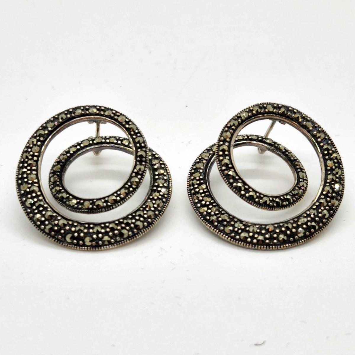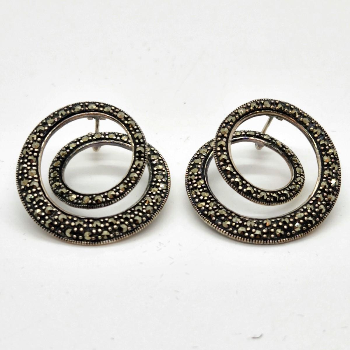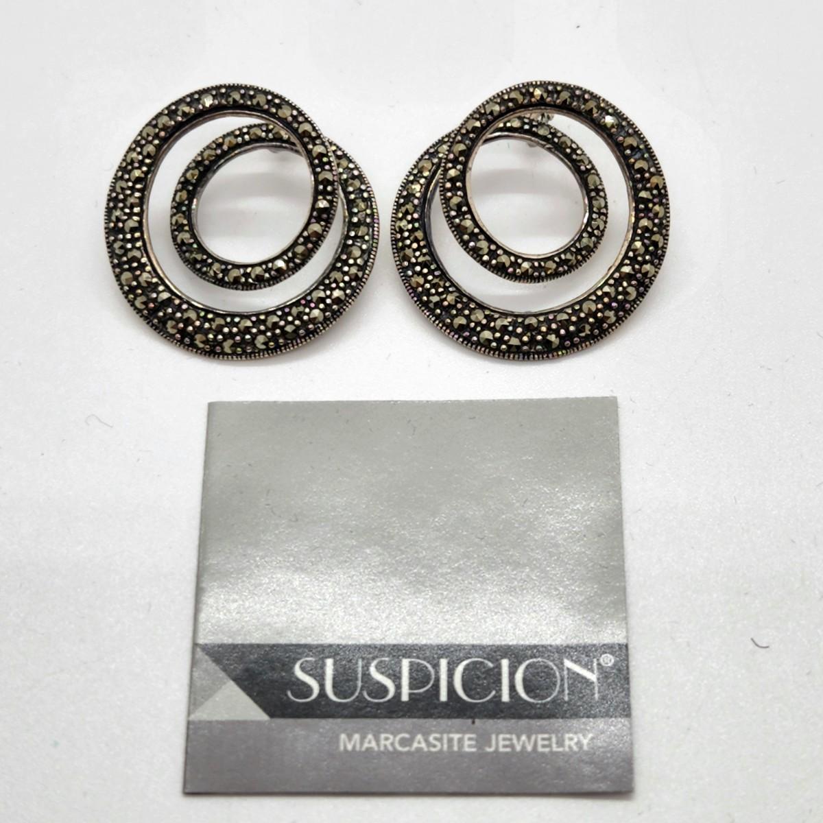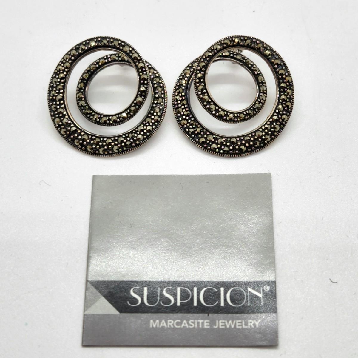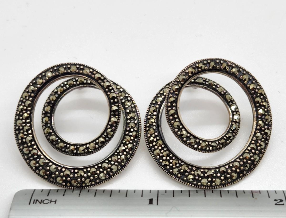 LOT 9RP: Vintage Suspicion Sterling Macasite Double Swirl Earrings