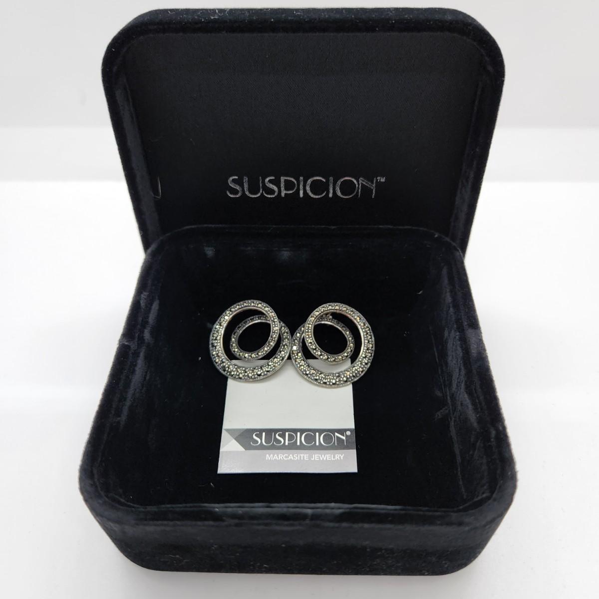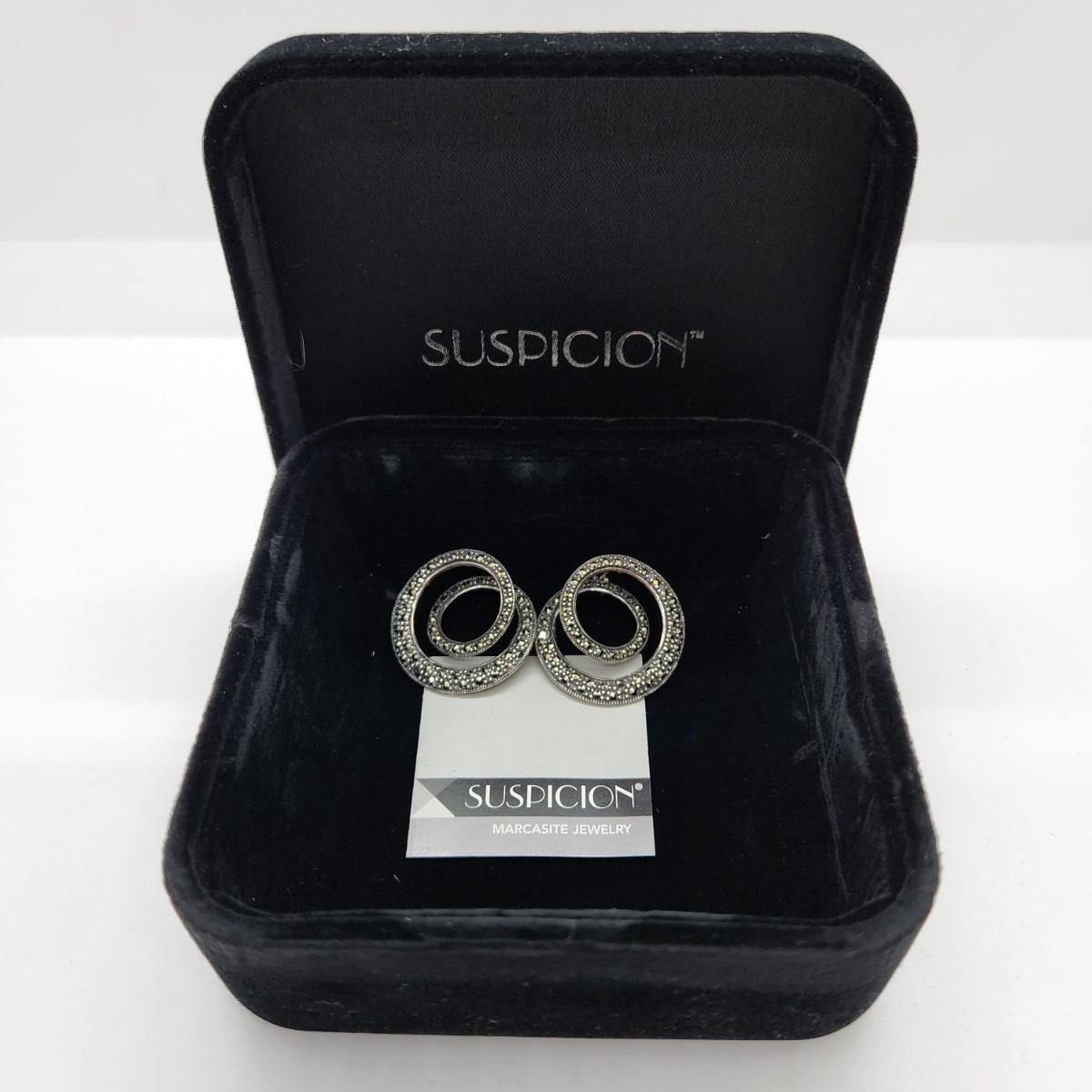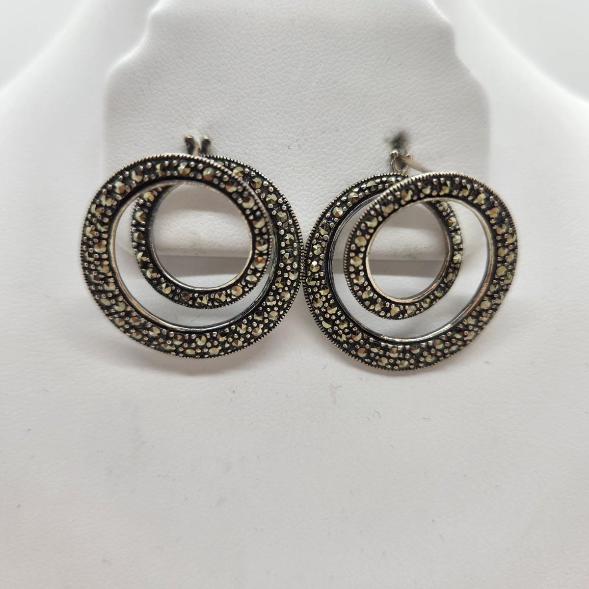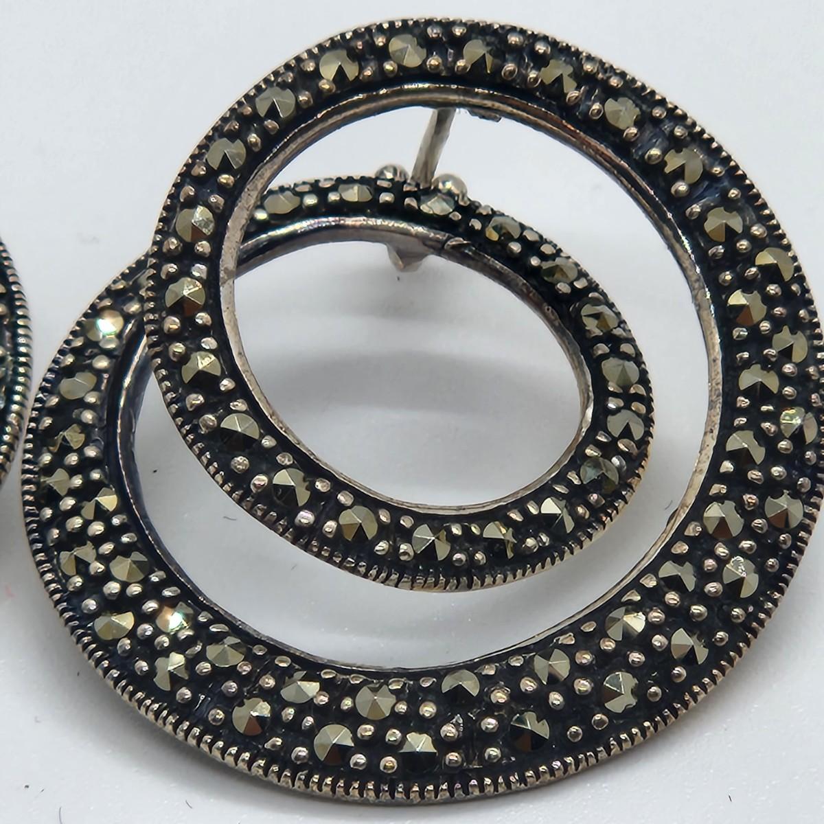 LOT 9RP: Vintage Suspicion Sterling Macasite Double Swirl Earrings