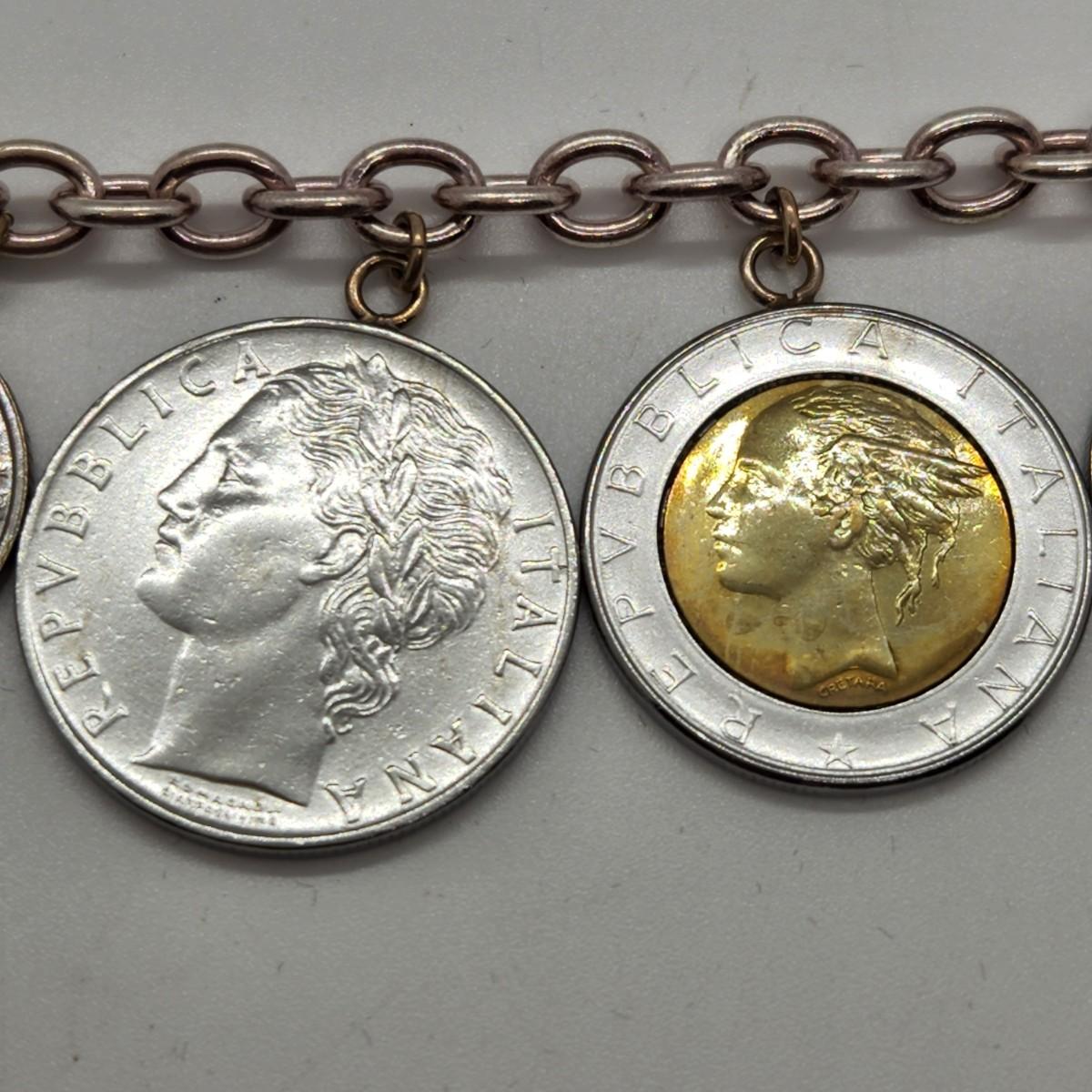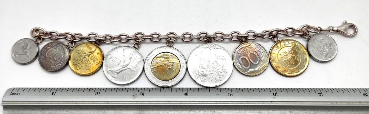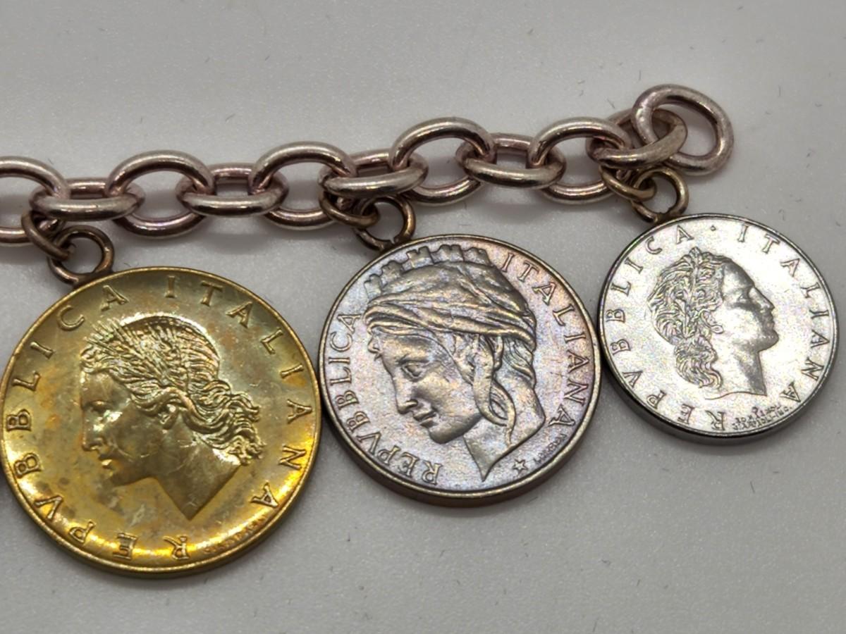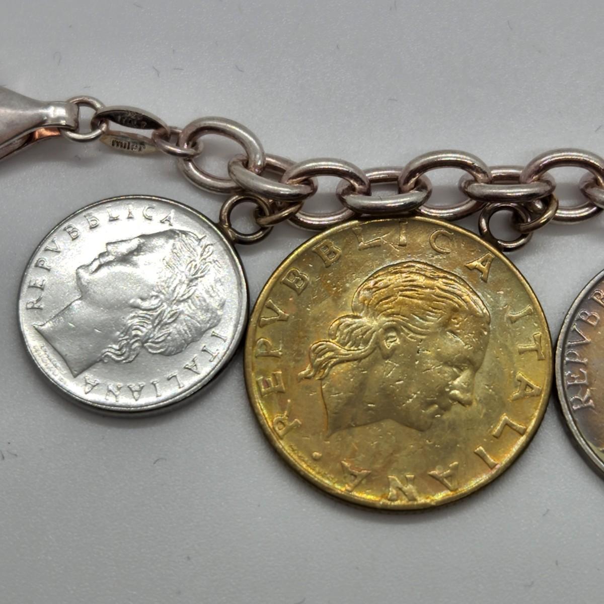 LOT 10RP: Vintage Sterling 8" Italian Coin Charm Bracelet