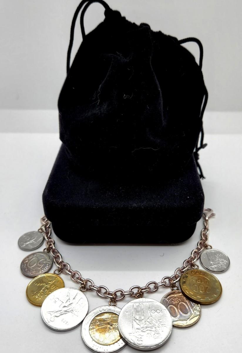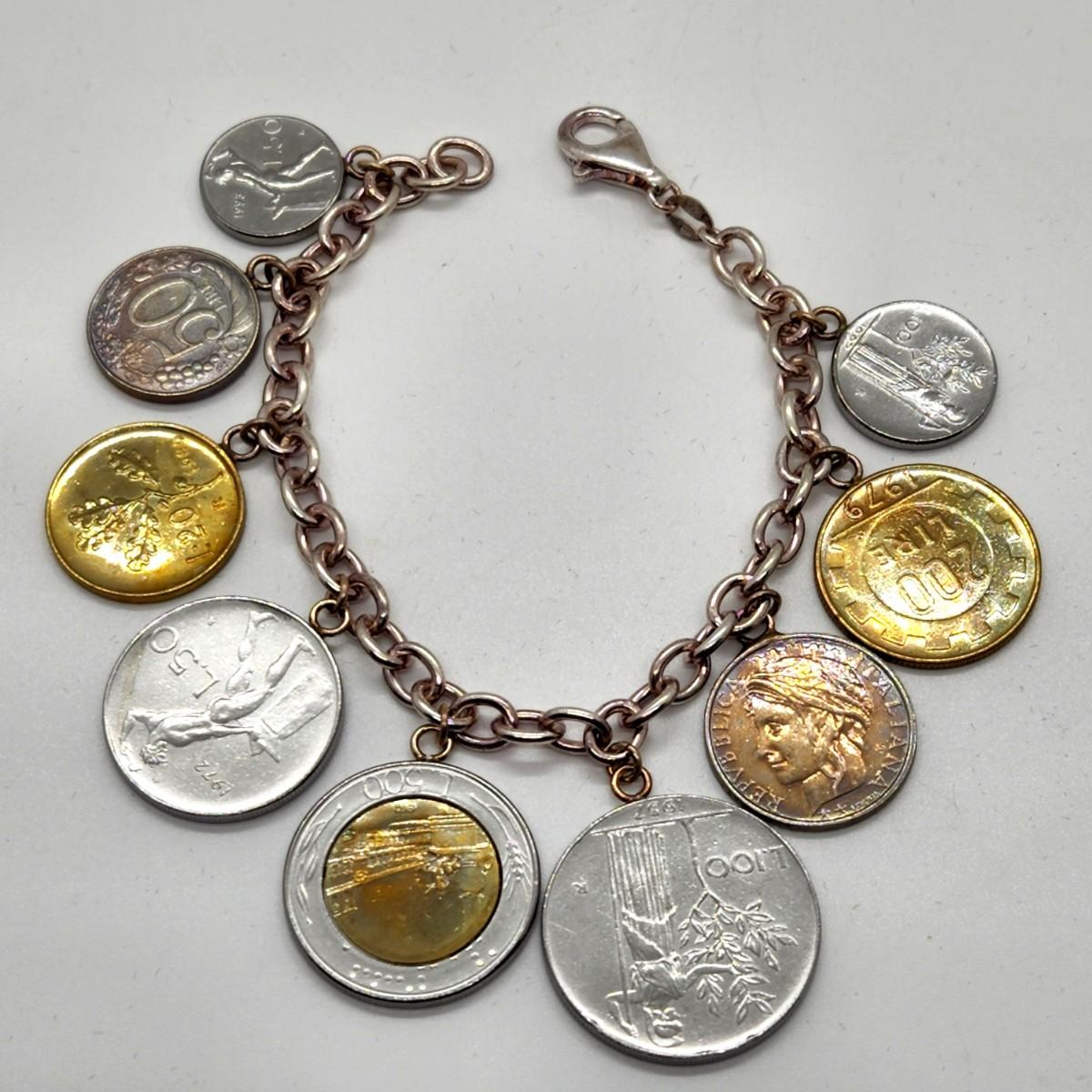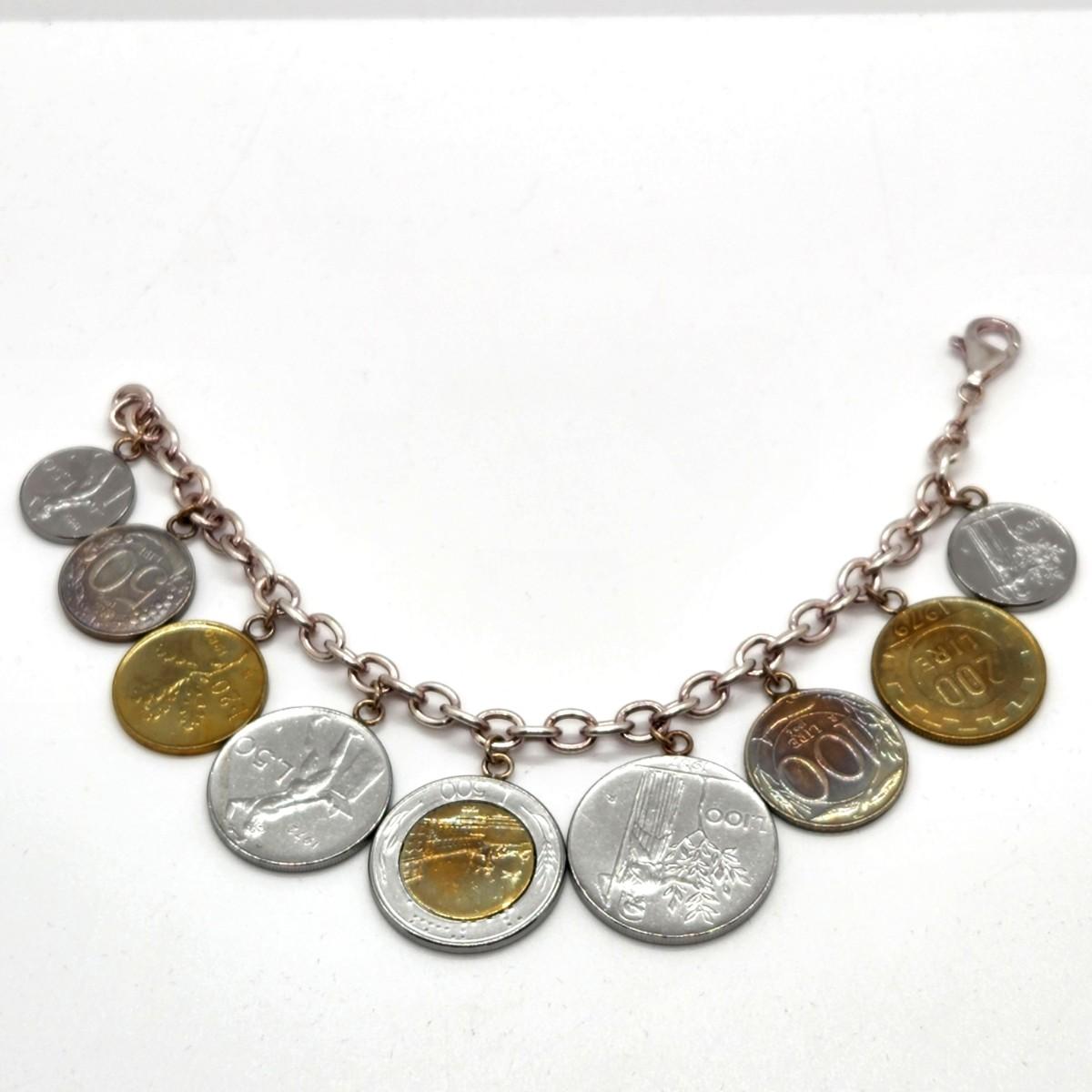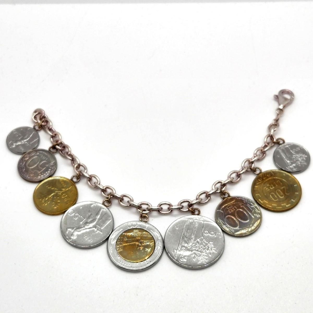 LOT 10RP: Vintage Sterling 8" Italian Coin Charm Bracelet