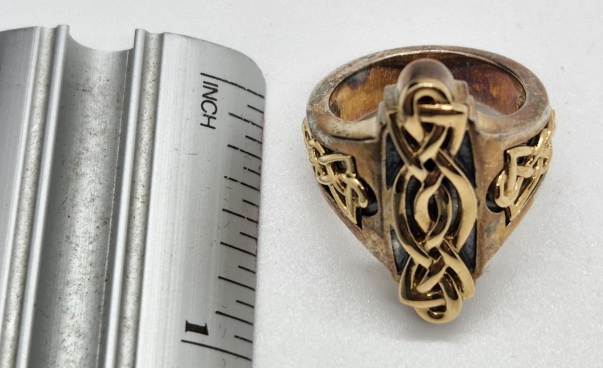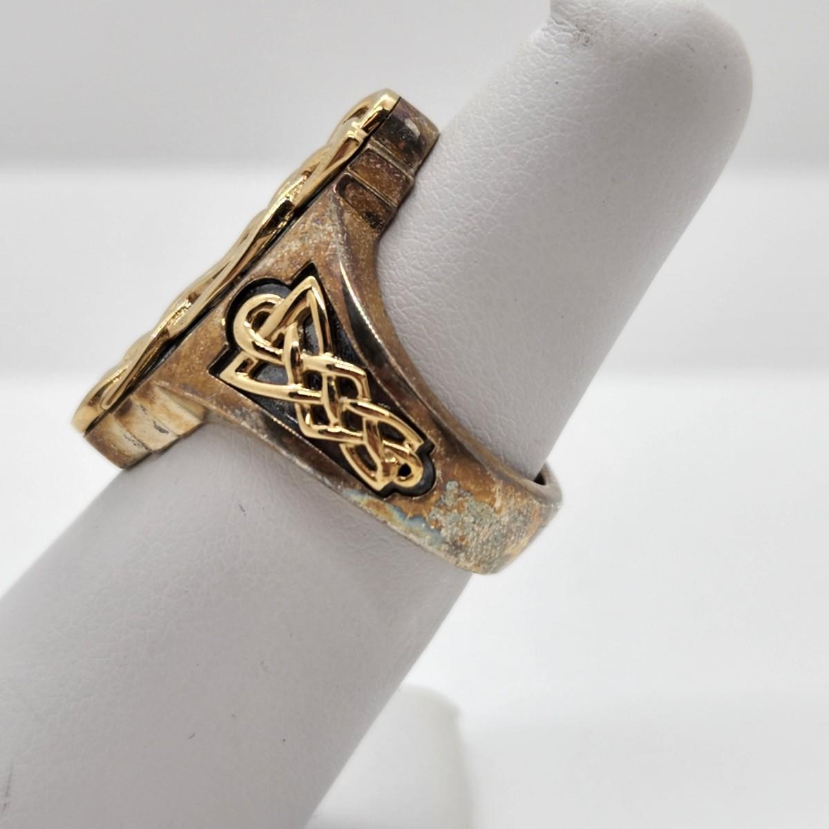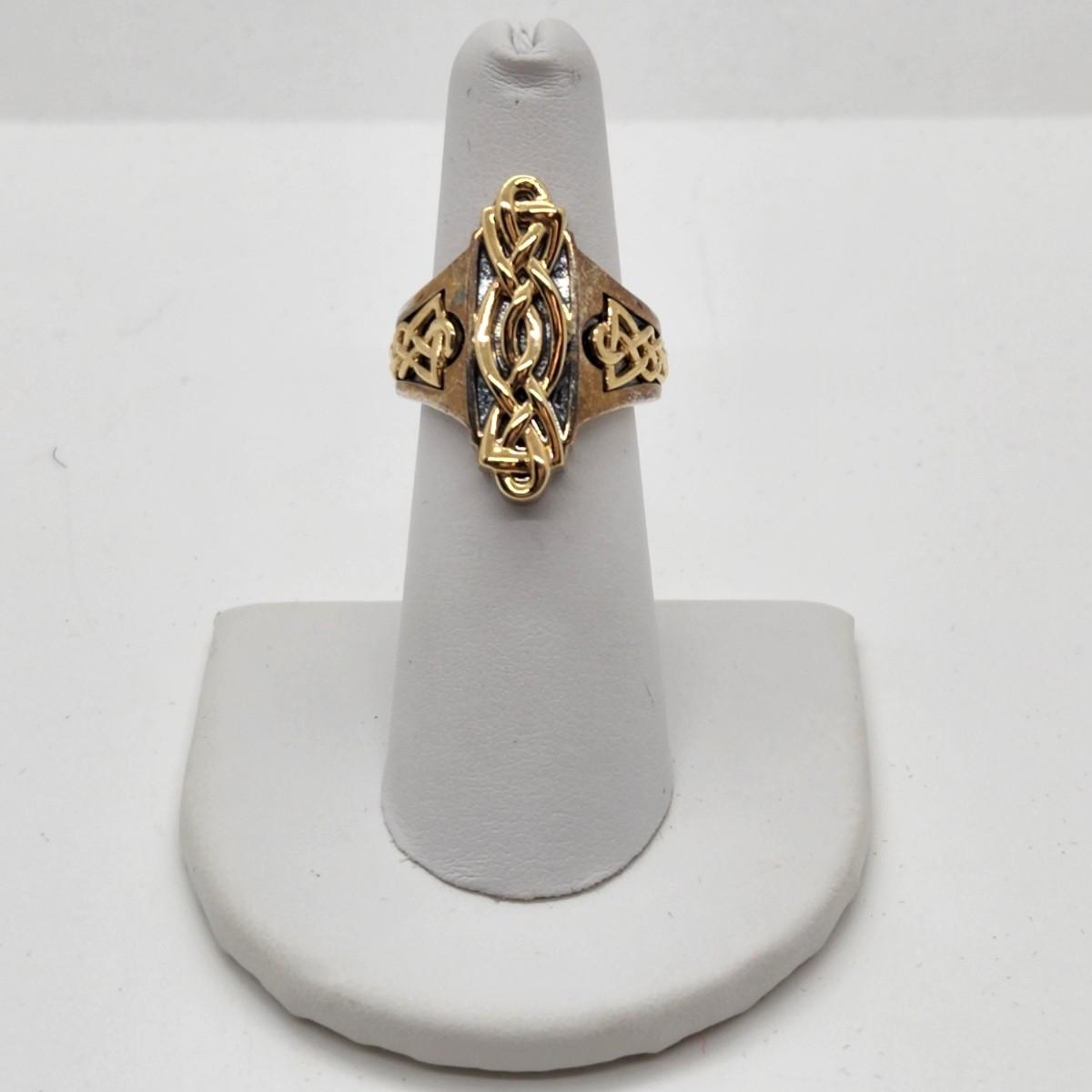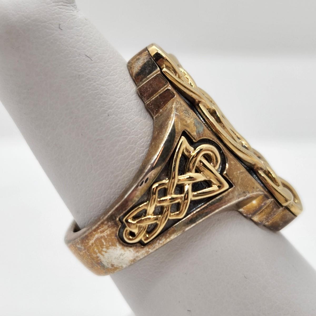 LOT 11RP: Vintage Sterling & 14K Gold Barry Cord Celtic Scroll Ring Sz. 7
