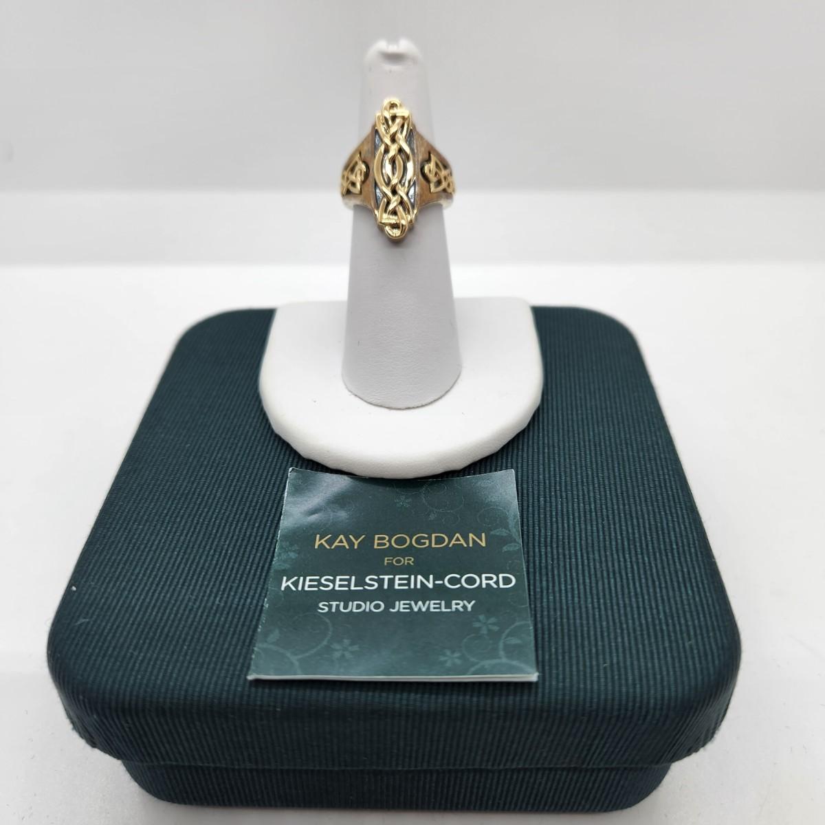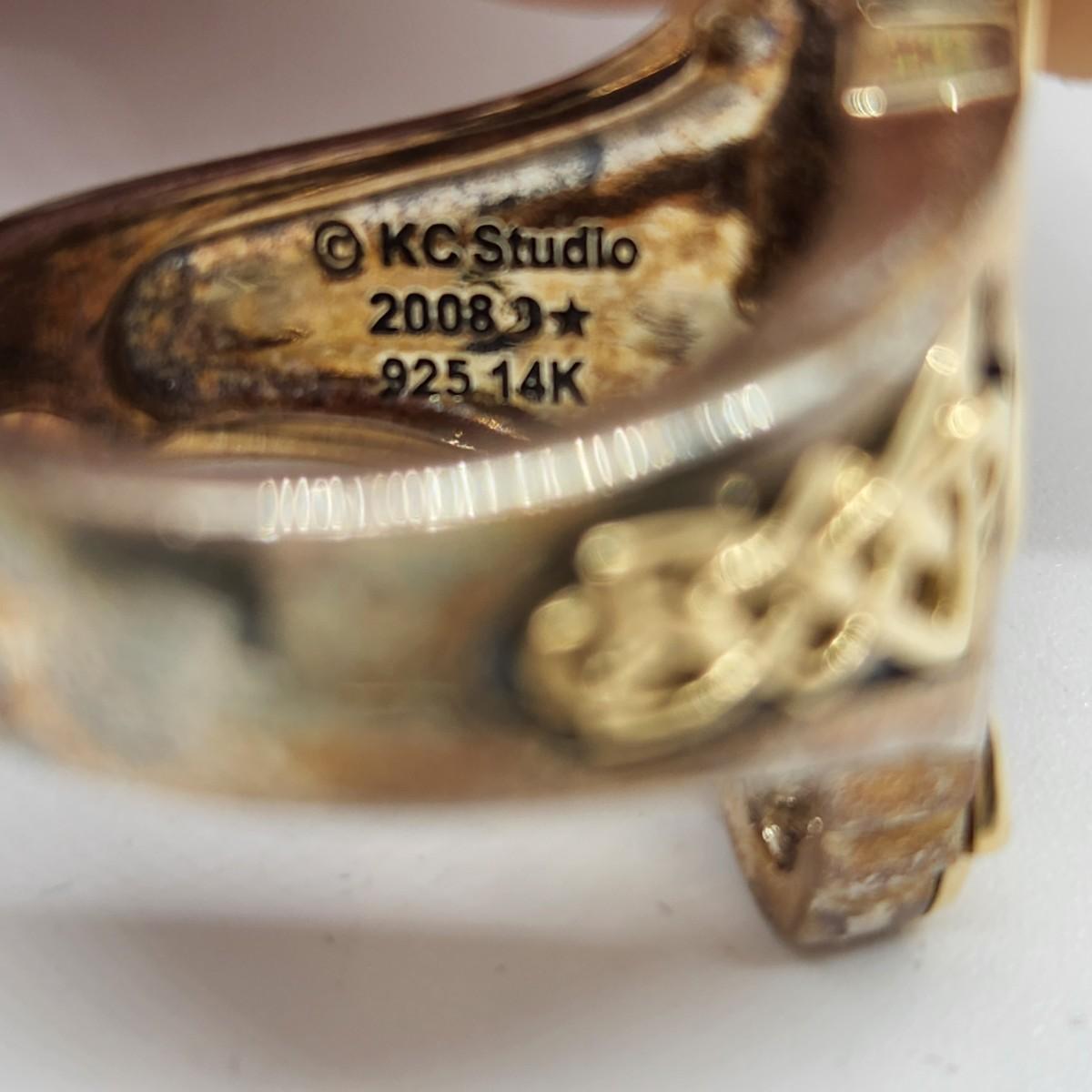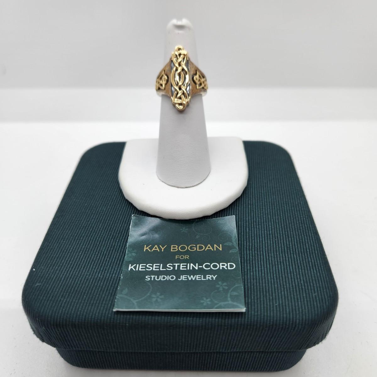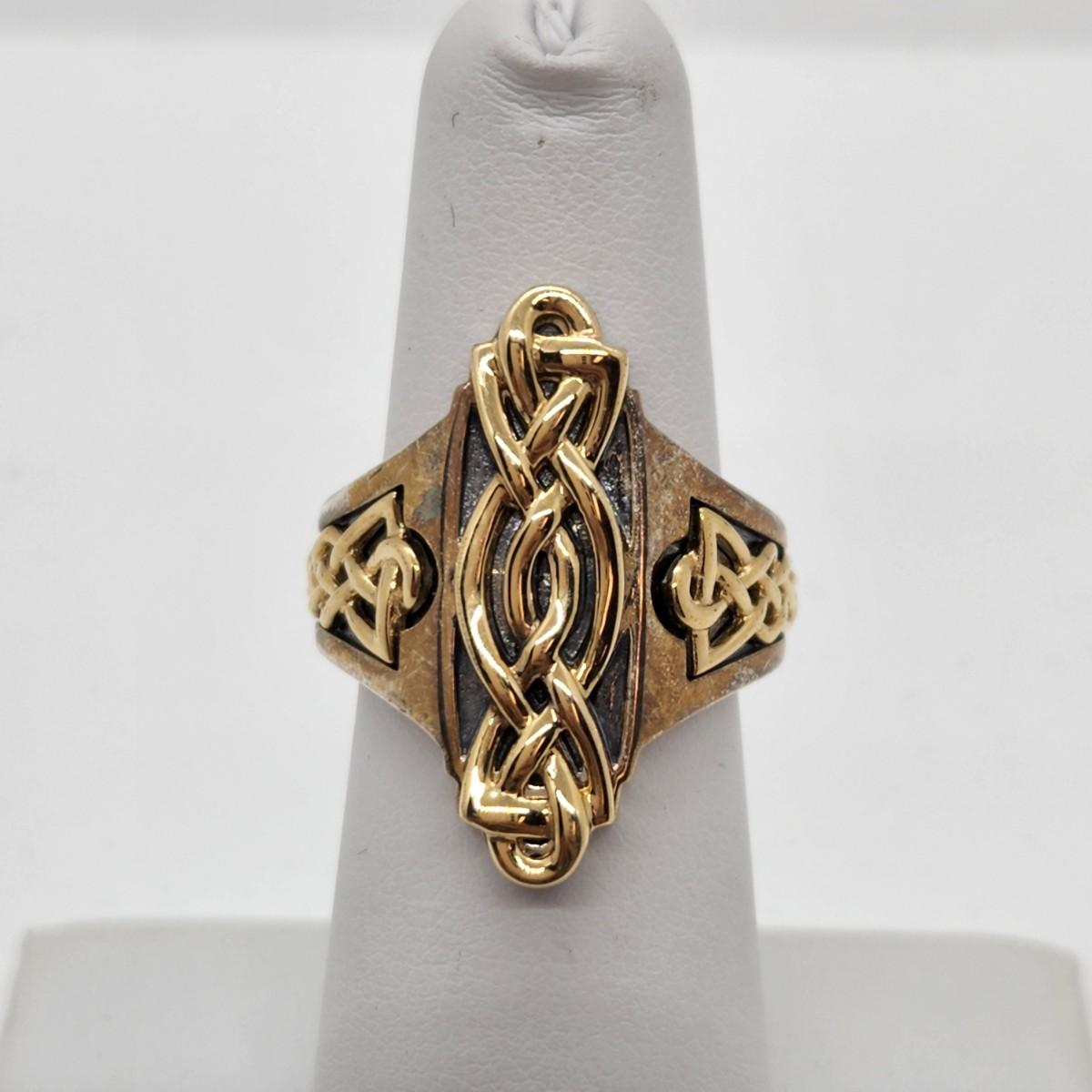 LOT 11RP: Vintage Sterling & 14K Gold Barry Cord Celtic Scroll Ring Sz. 7