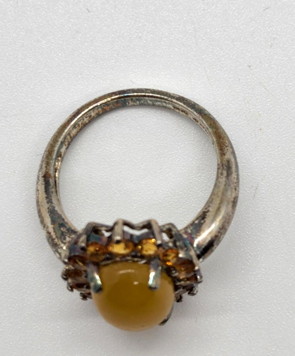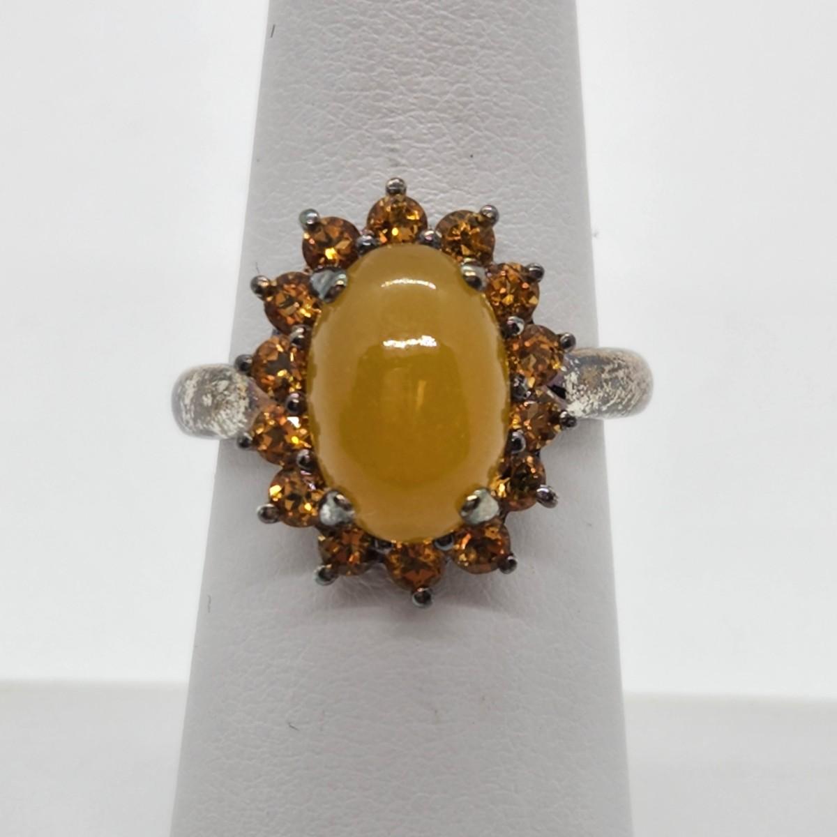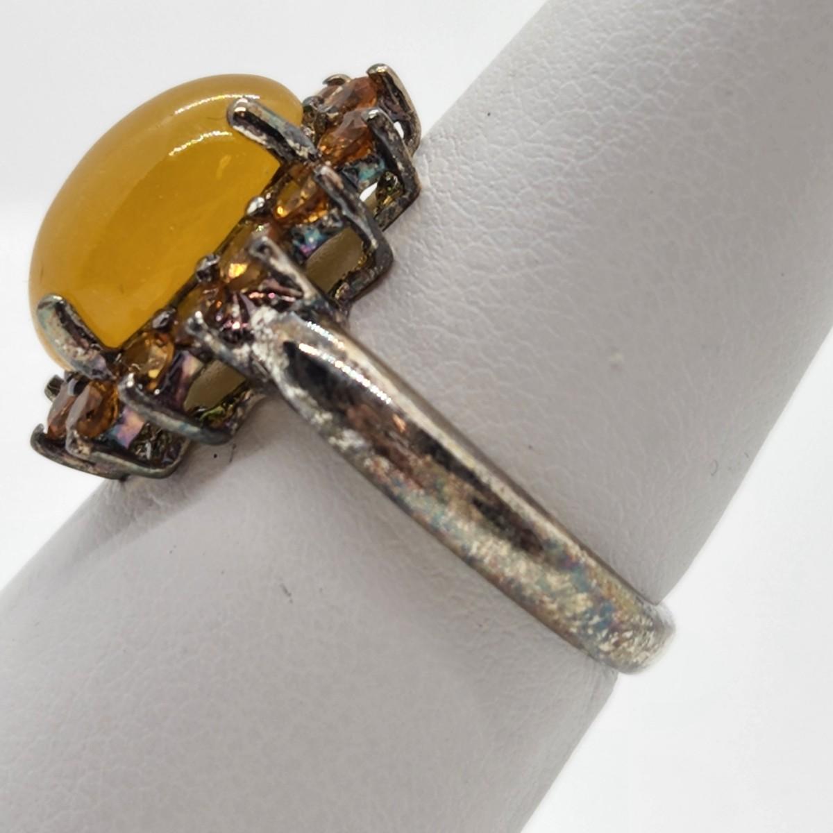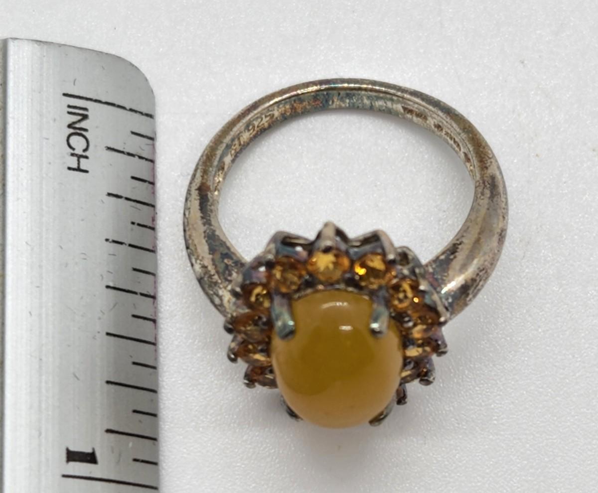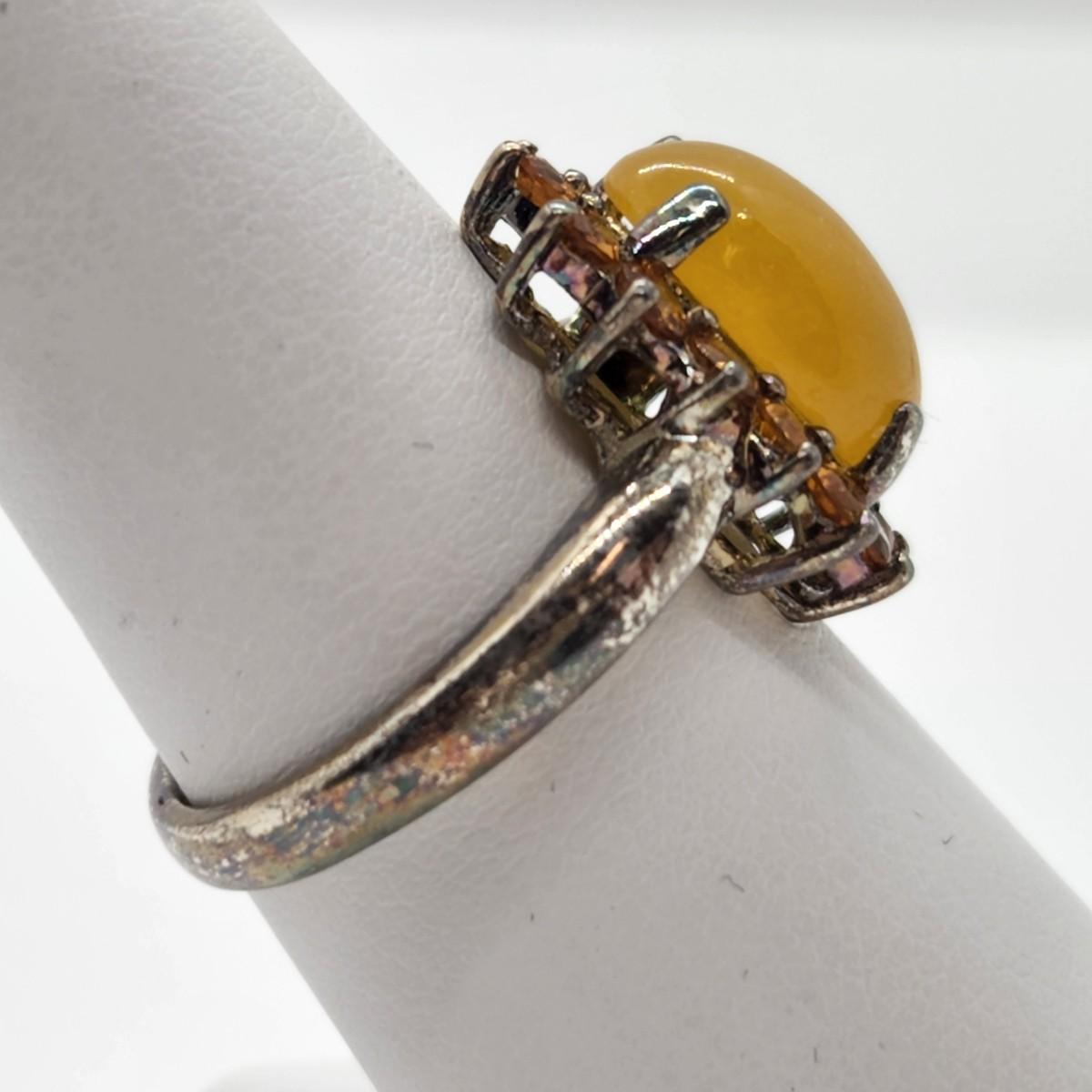 LOT 16RP: Vintage Jade & Gemstone Sterling Silver Ring Sz. 6