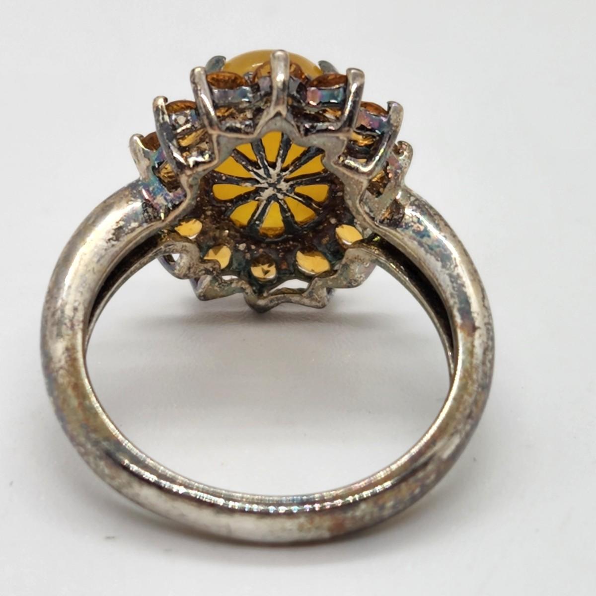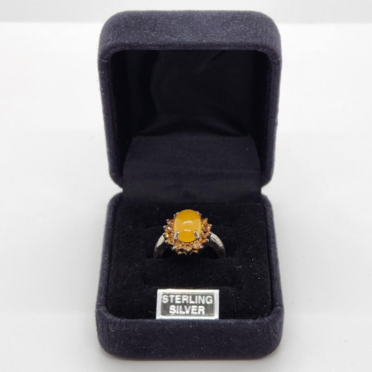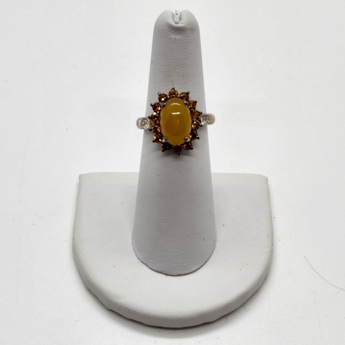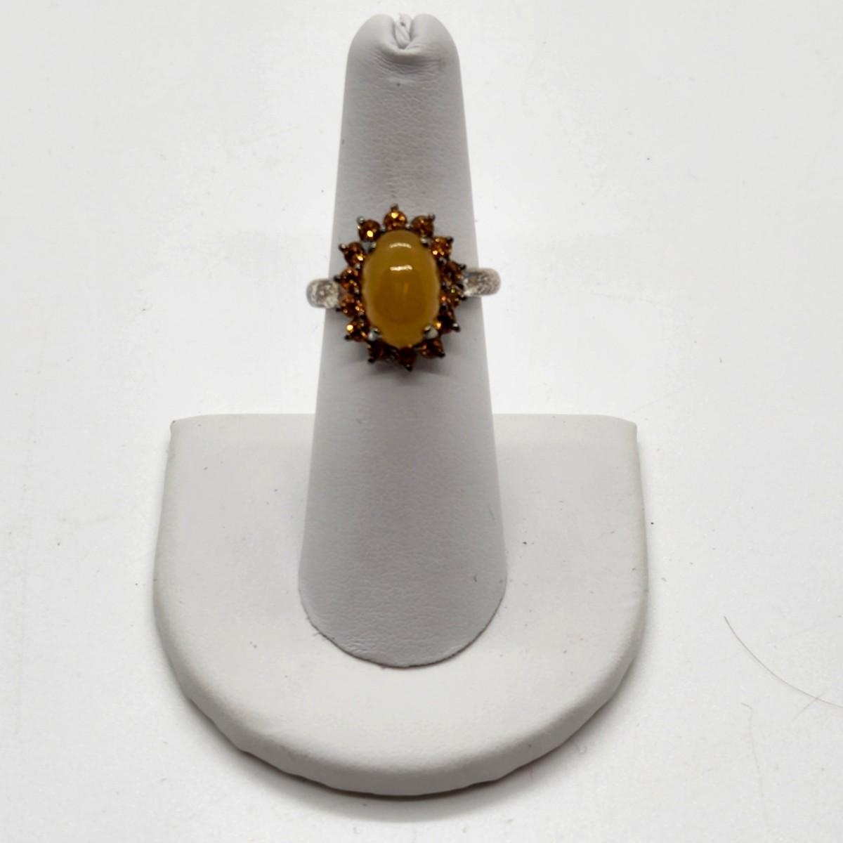 LOT 16RP: Vintage Jade & Gemstone Sterling Silver Ring Sz. 6