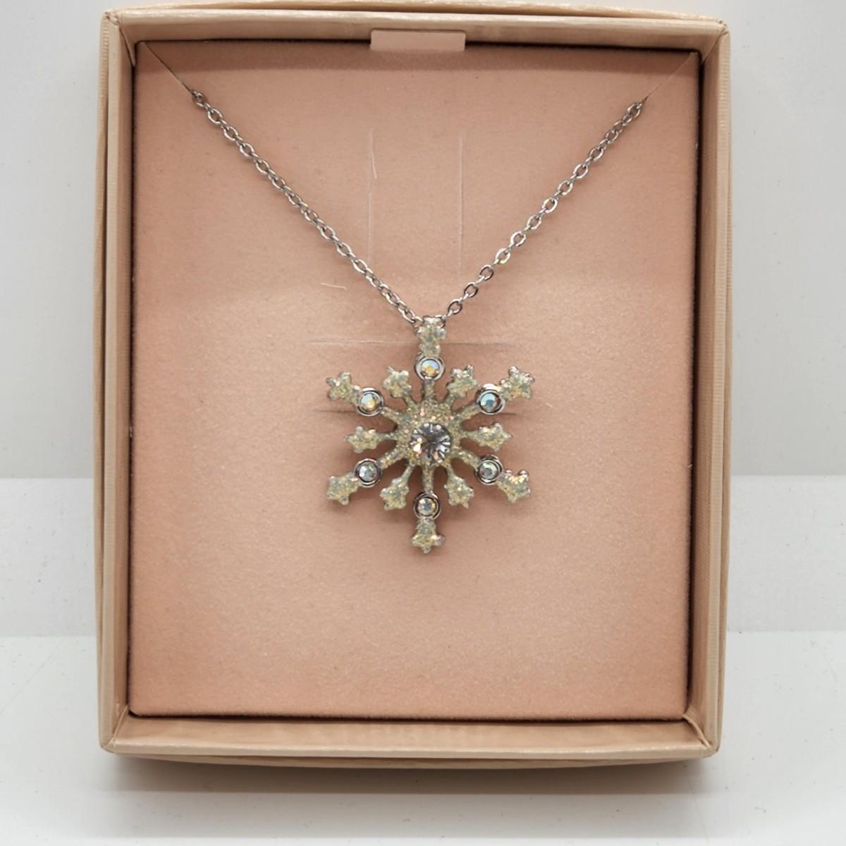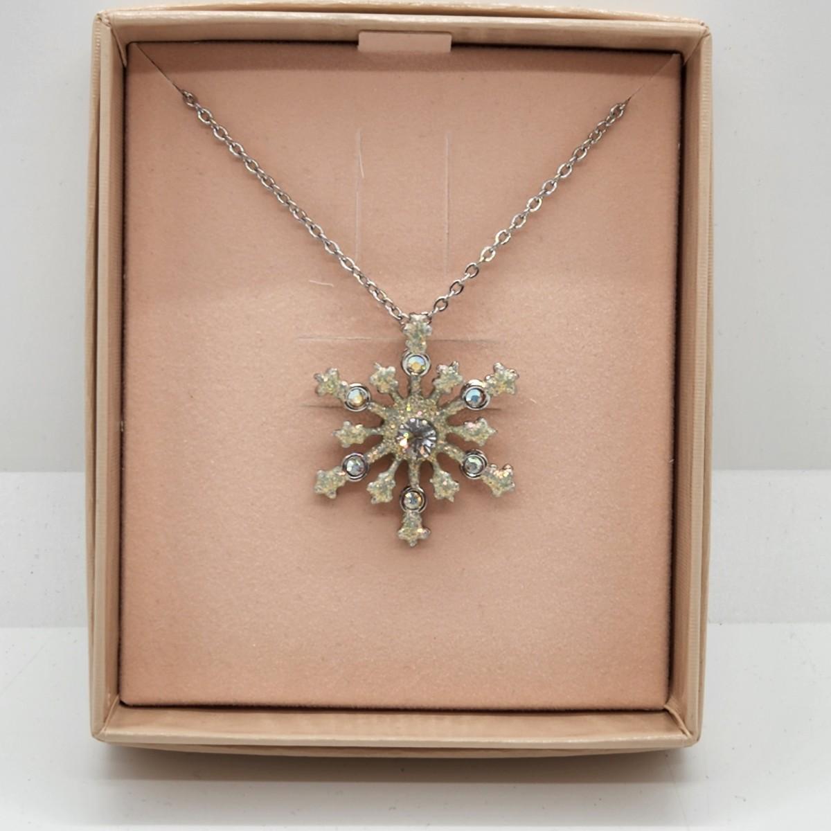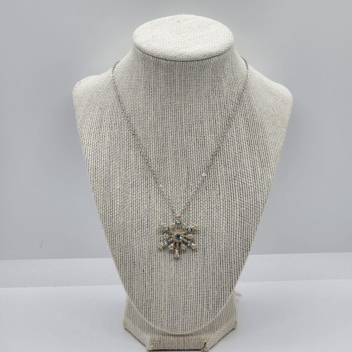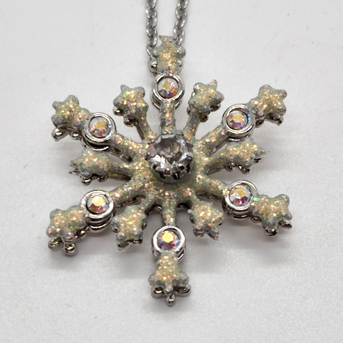 LOT 20RP: Vintage Kirks Folly " Flurries" Silvertone Snowflake Adjustable Pendant Necklace