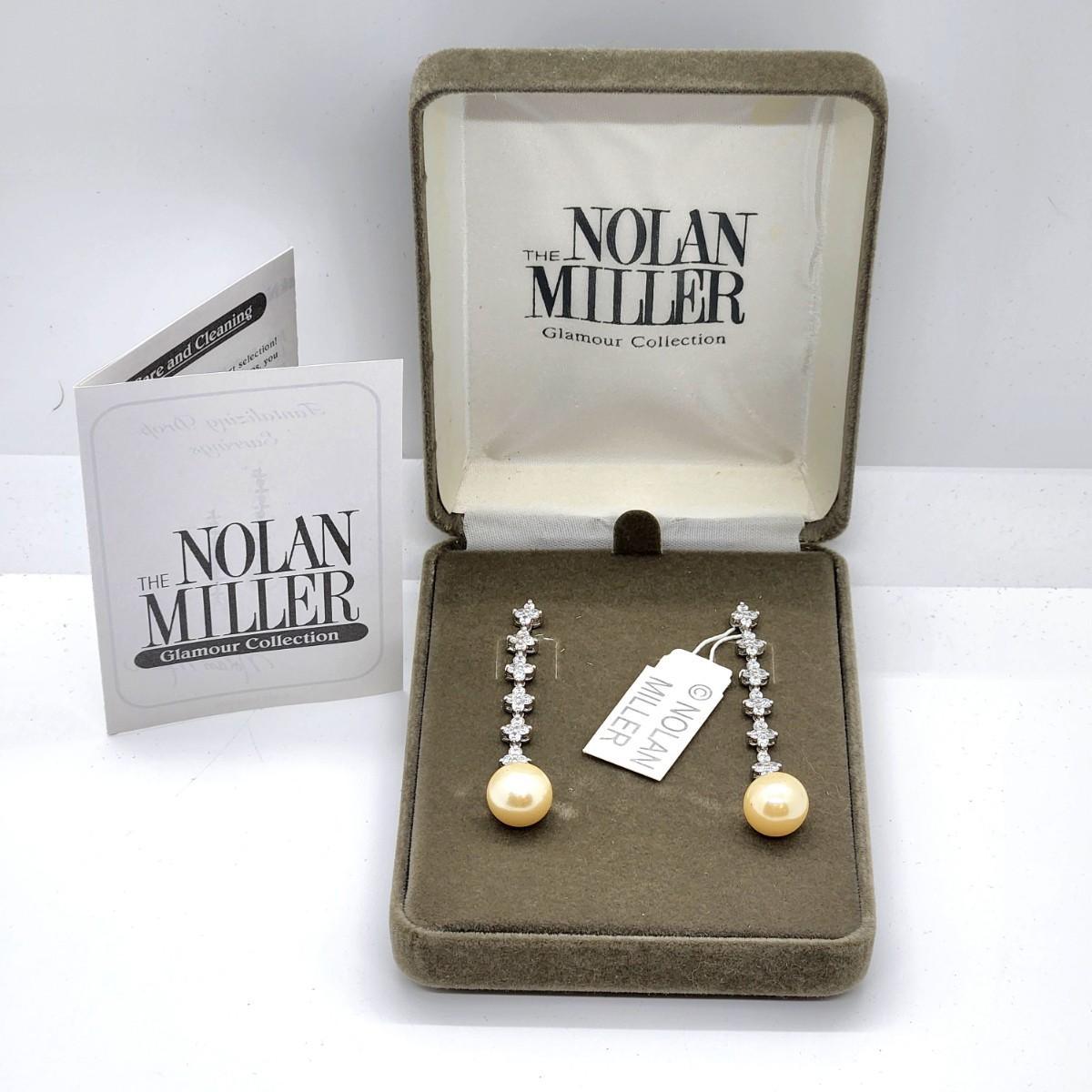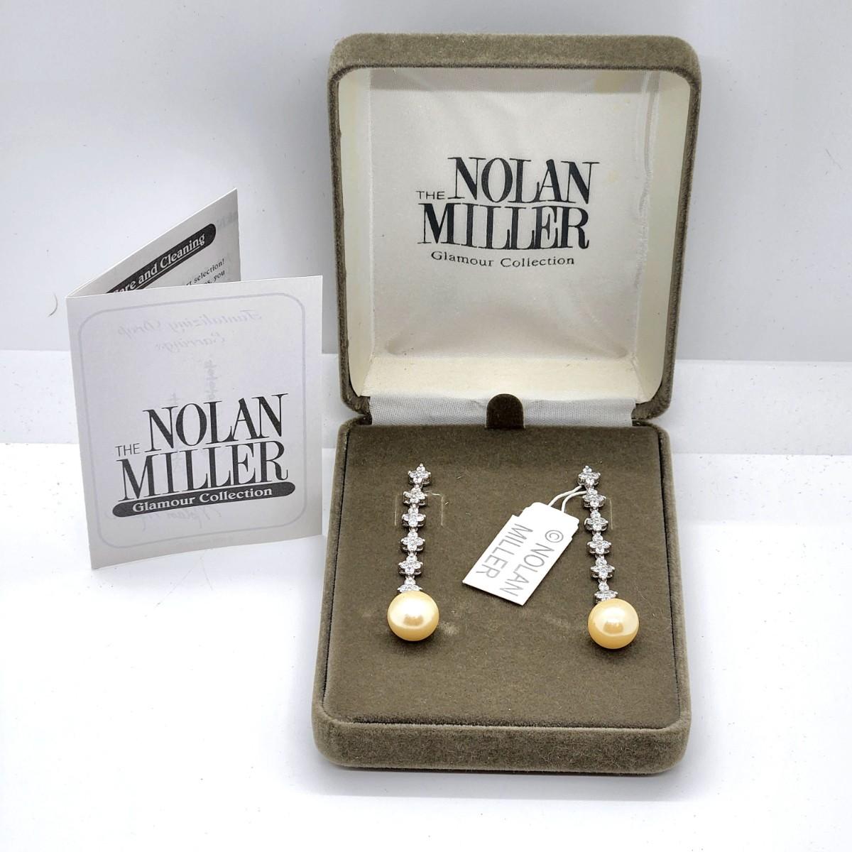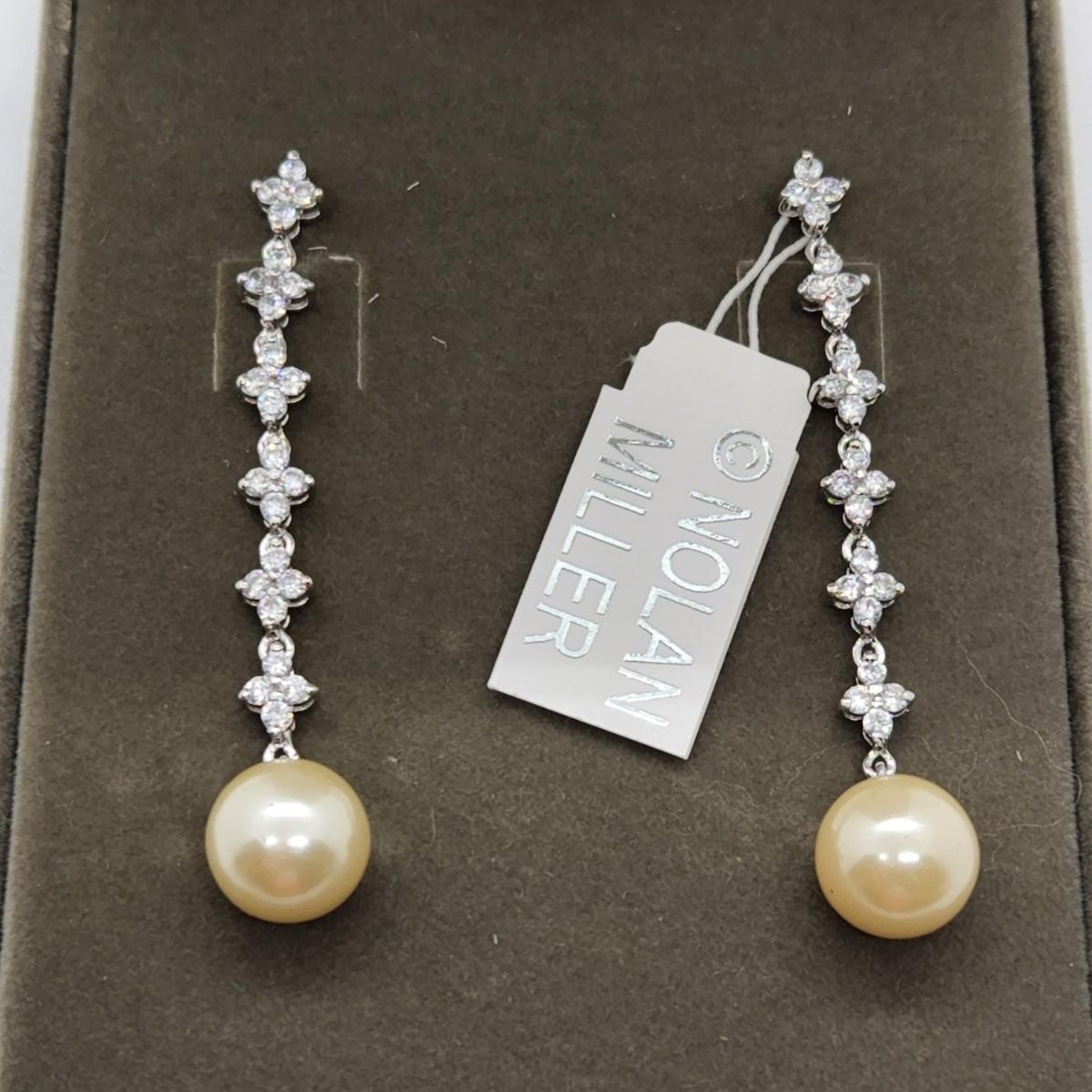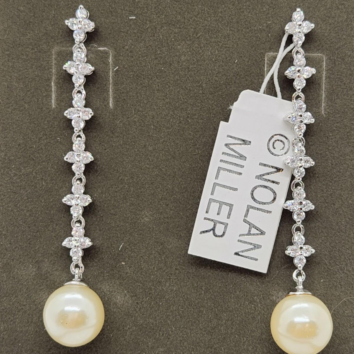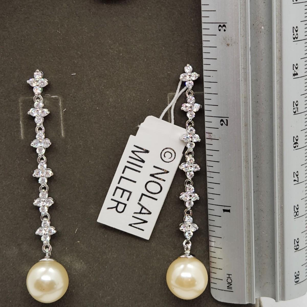 LOT 30RP: Vintage Nolan Miller Tantalizing Drop Crystal & Faux Pearl Earrings