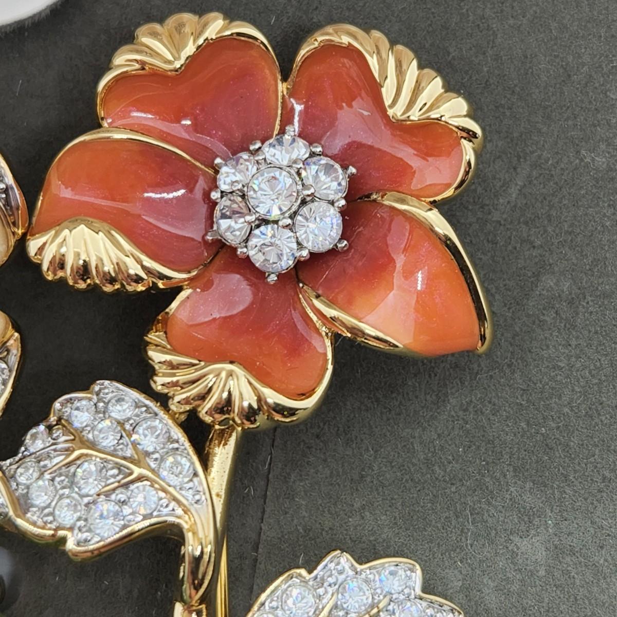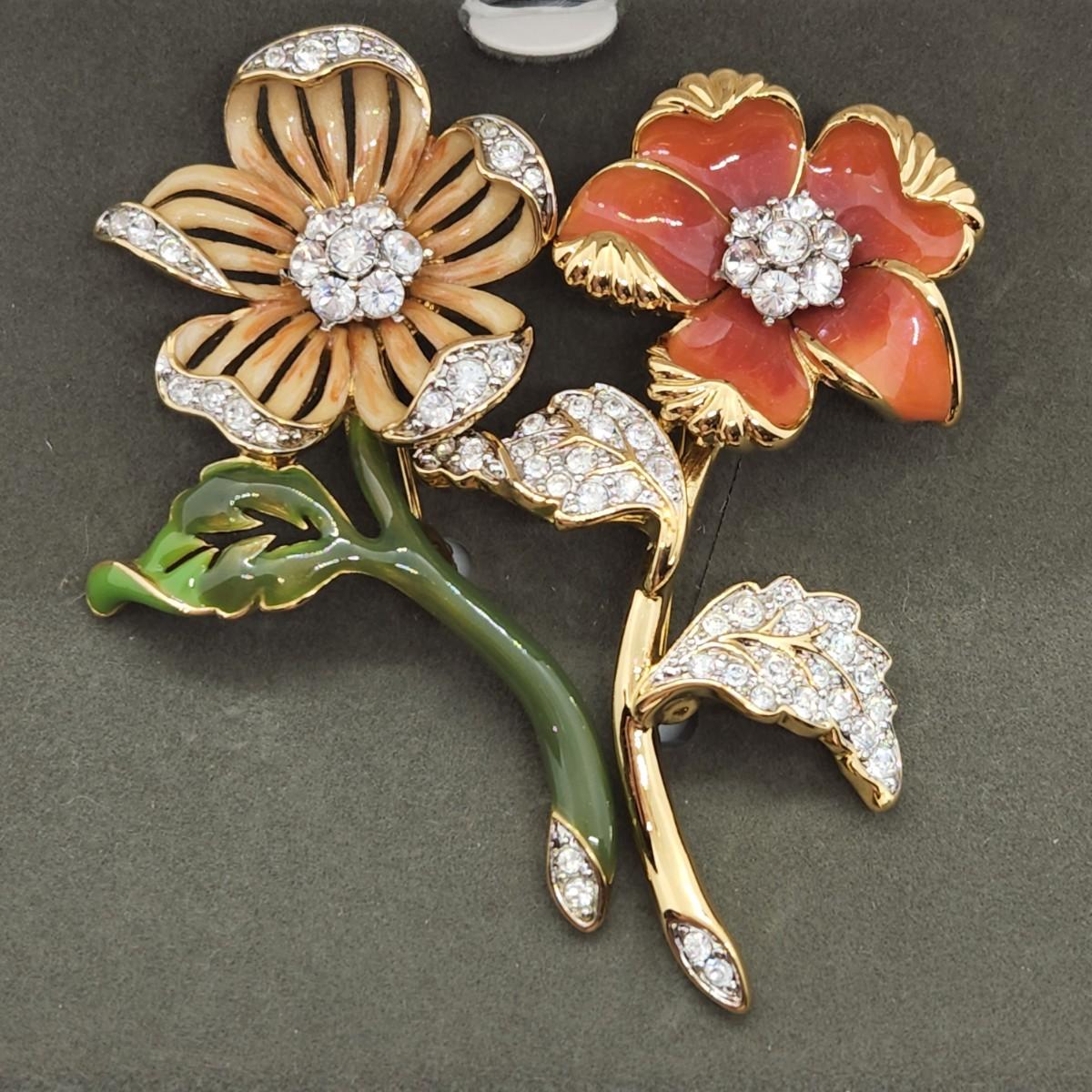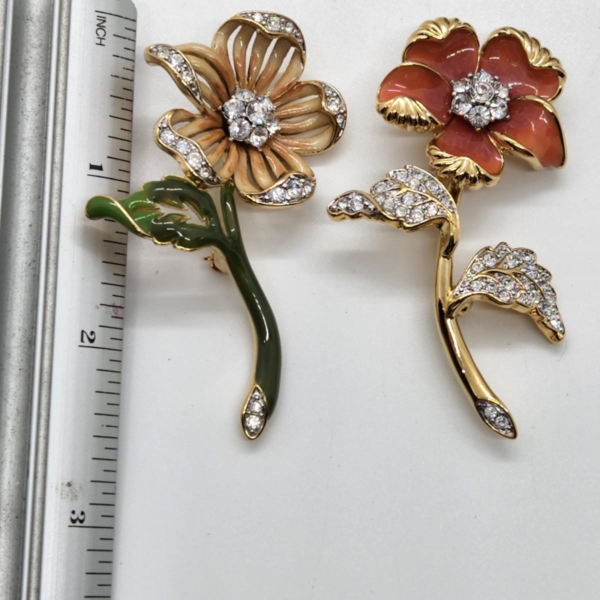 LOT 31RP: Set of Two Vintage Nolan Miller Enamel & Pavé Flower Brooches