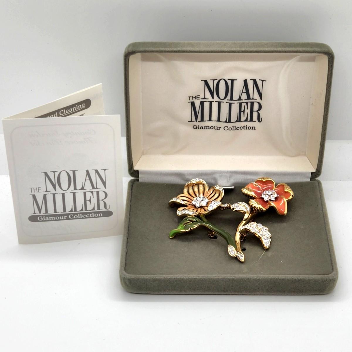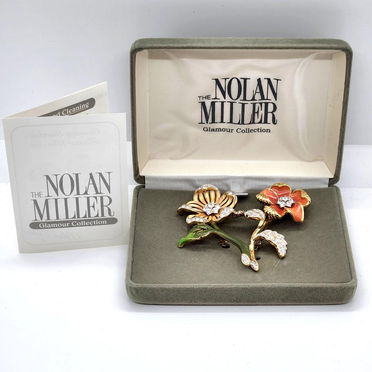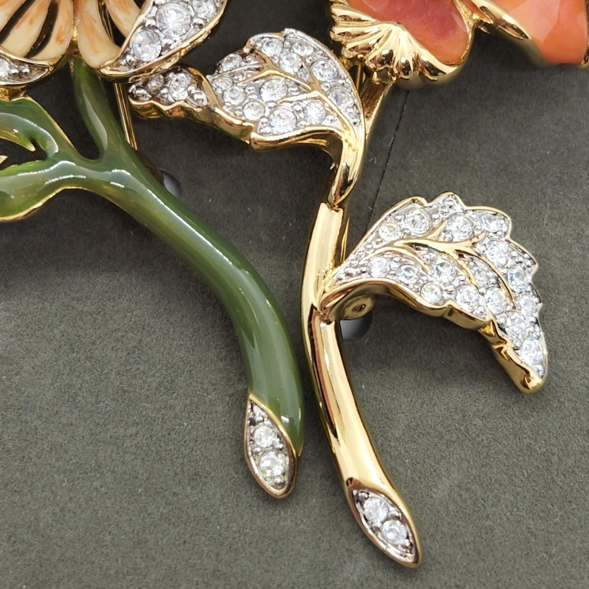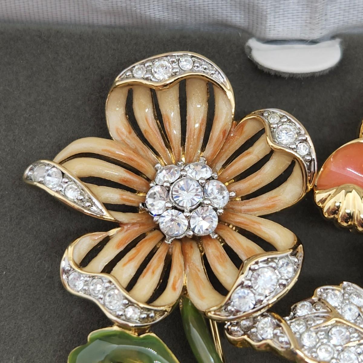 LOT 31RP: Set of Two Vintage Nolan Miller Enamel & Pavé Flower Brooches