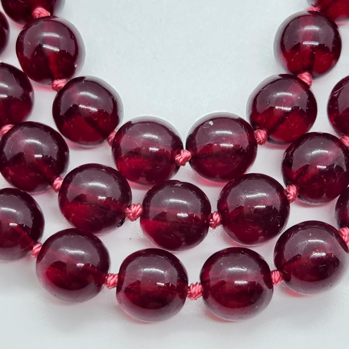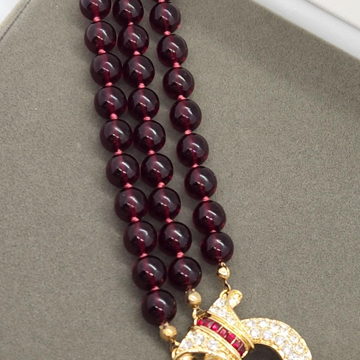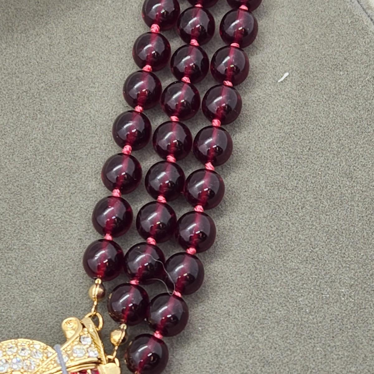LOT 33RP: Vintage Nolan Miller Three Strand Synthetic Garnet Beaded & Rhinestone 31" Necklace